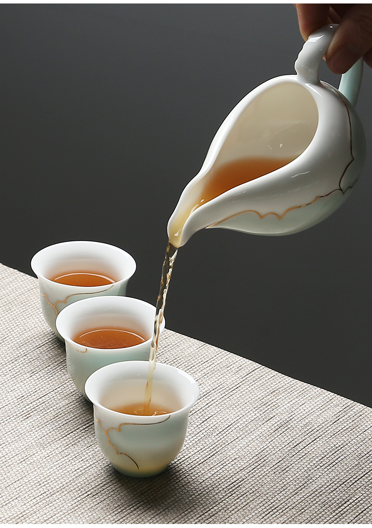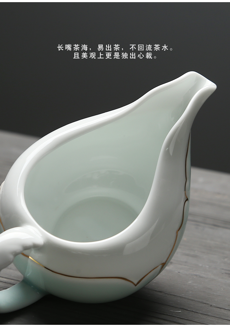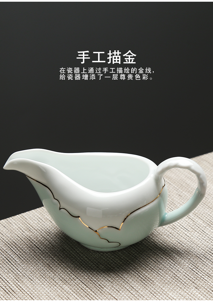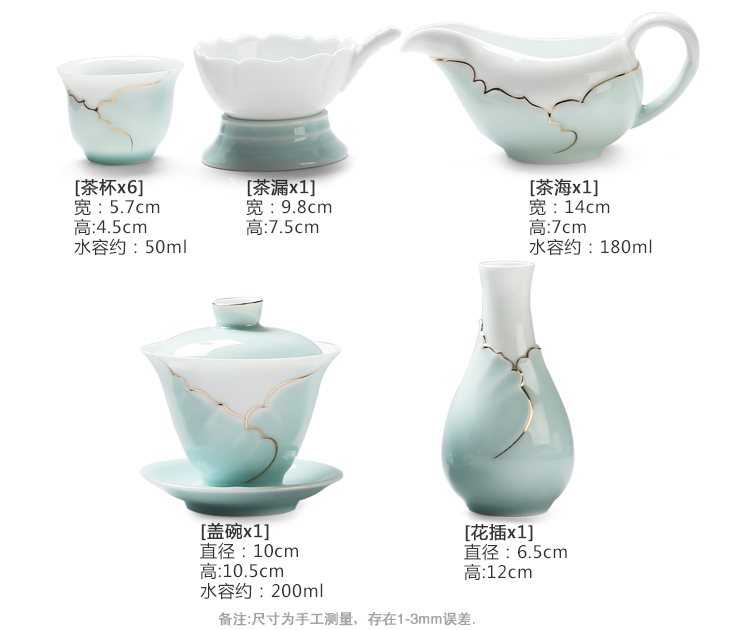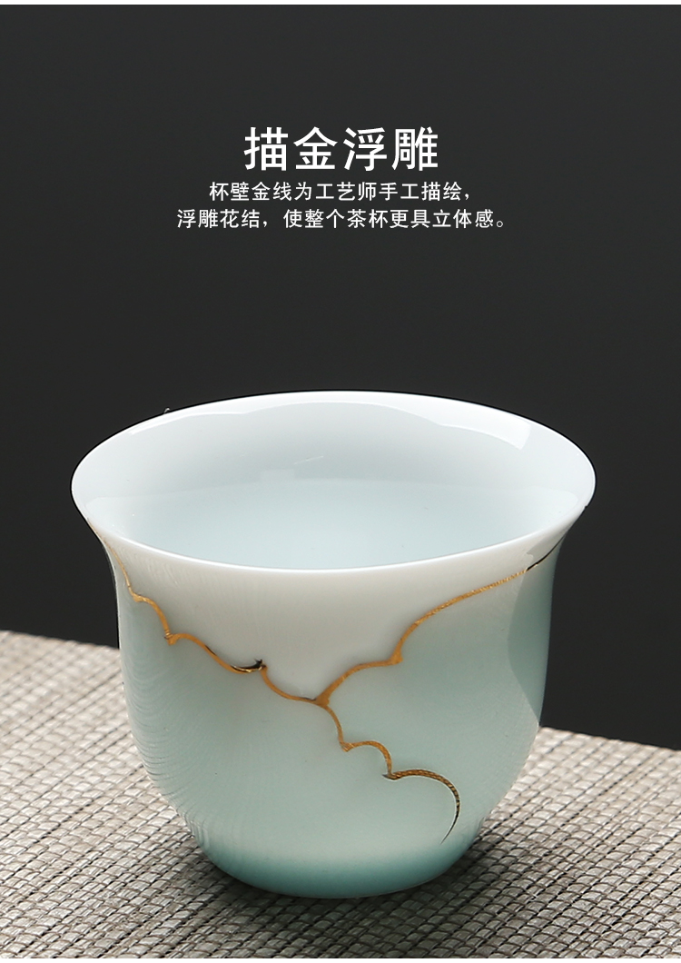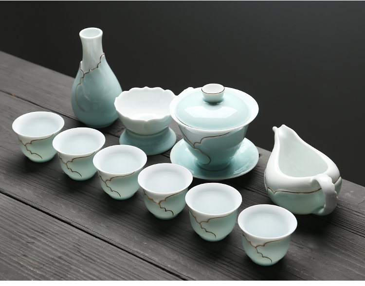苏氏陶瓷(SUSHI CERAMICS) J0016茶具套装忆荷手绘描金盖碗茶杯10头(单位:套) 青瓷
