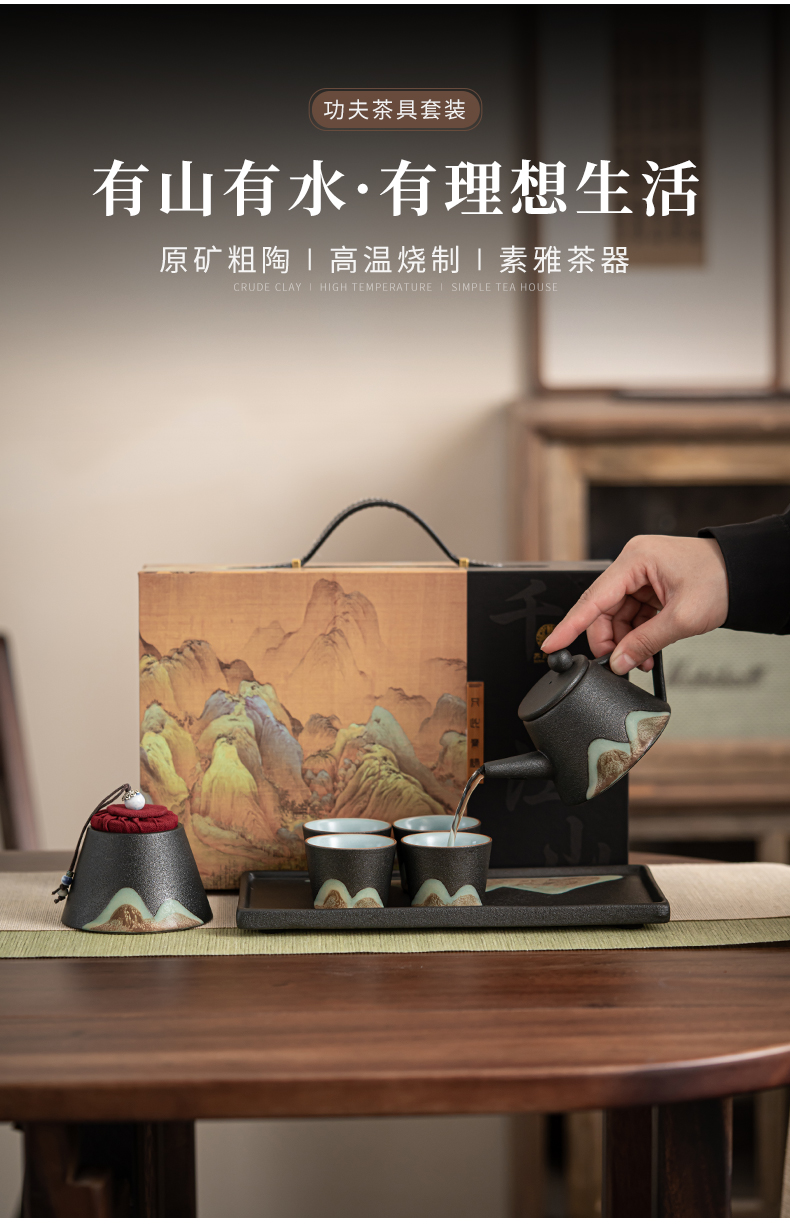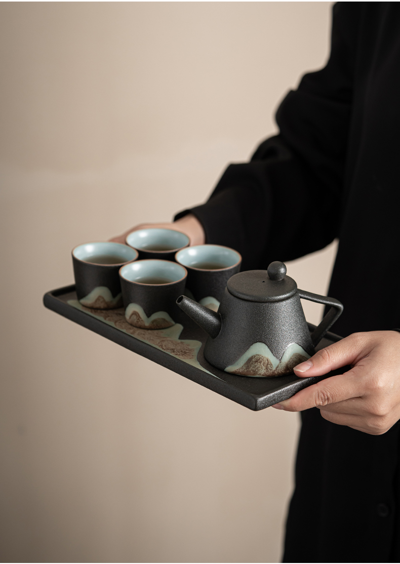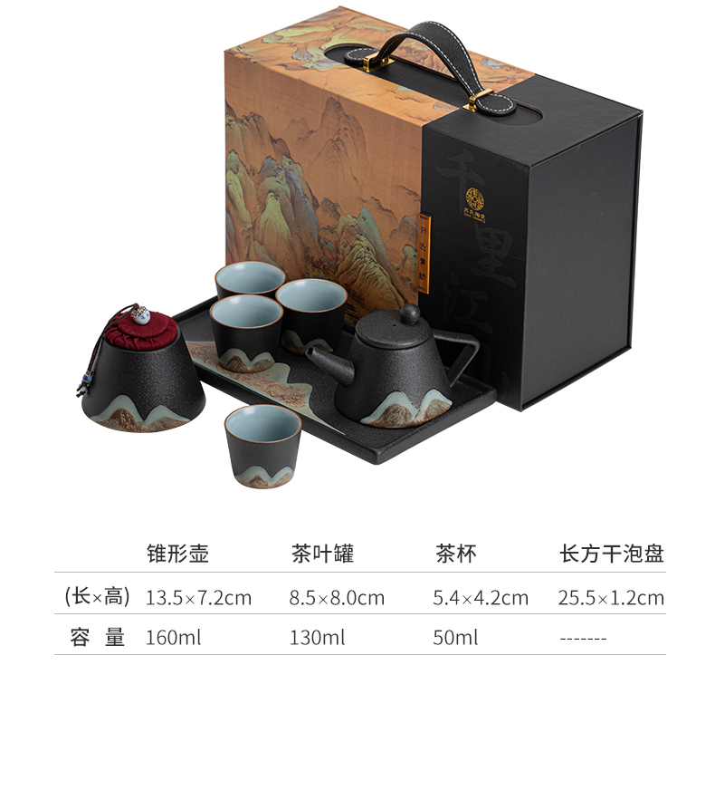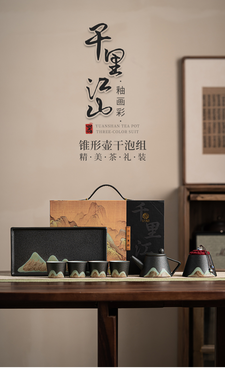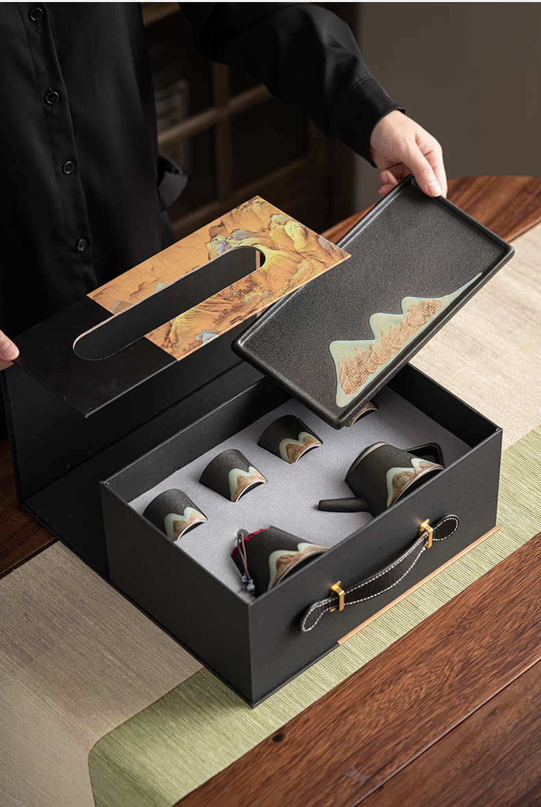 苏氏陶瓷( SUSHI CERAMICS )J0181整套茶具手绘彩画山形画7件礼盒装(单位:套) 曜石黑