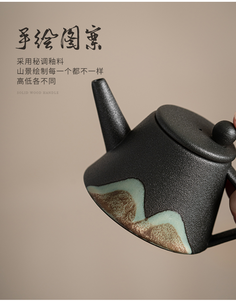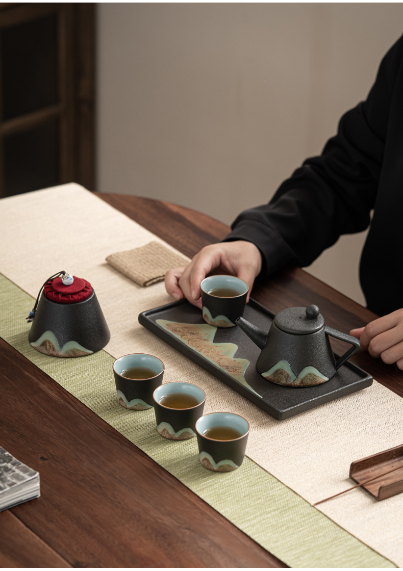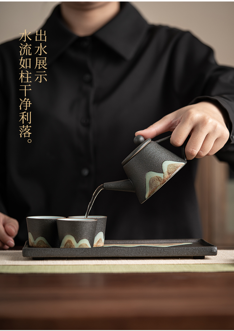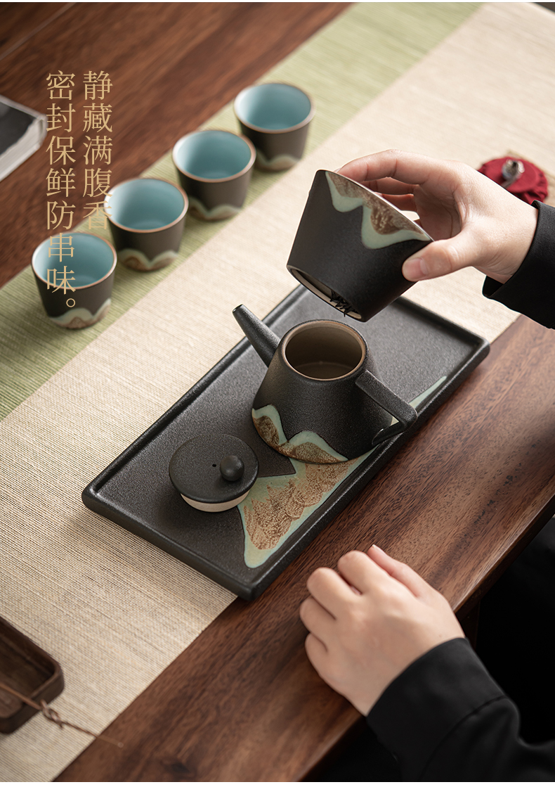 苏氏陶瓷( SUSHI CERAMICS )J0181整套茶具手绘彩画山形画7件礼盒装(单位:套) 曜石黑