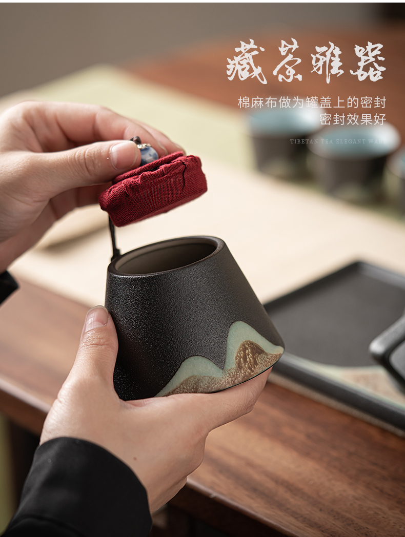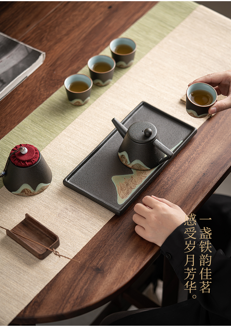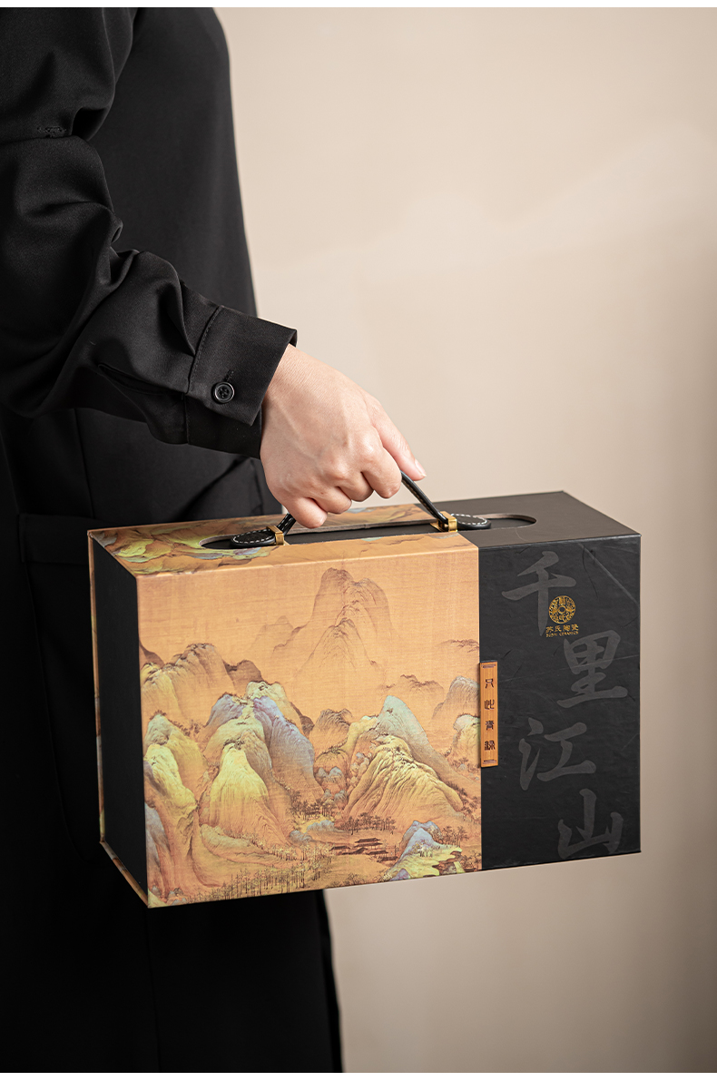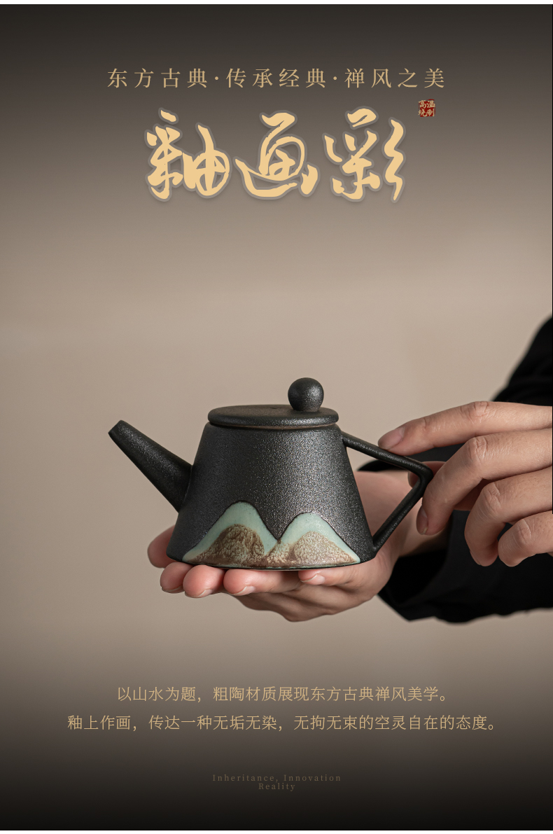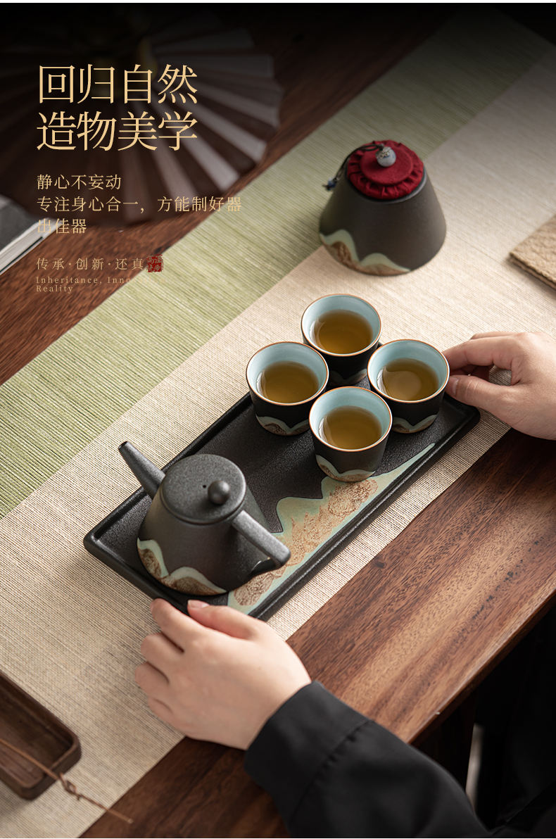 苏氏陶瓷( SUSHI CERAMICS )J0181整套茶具手绘彩画山形画7件礼盒装(单位:套) 曜石黑