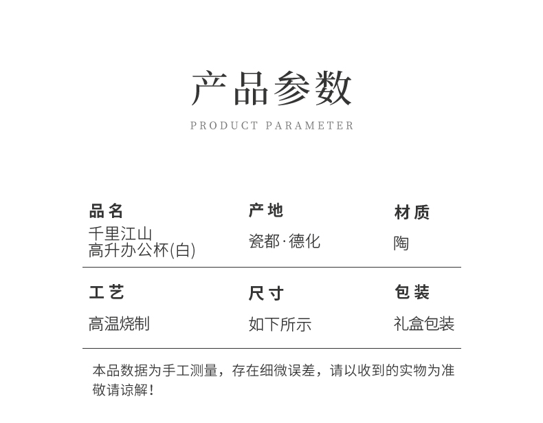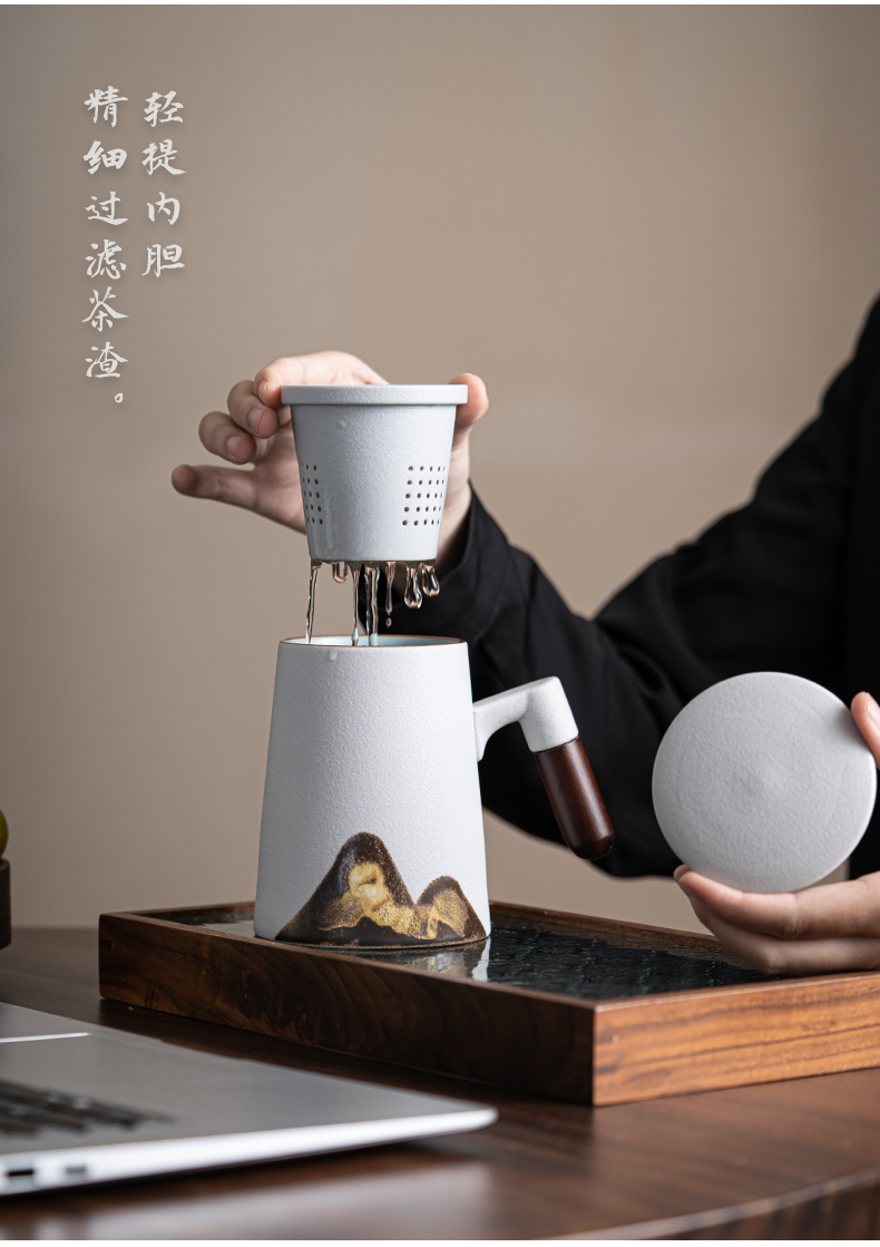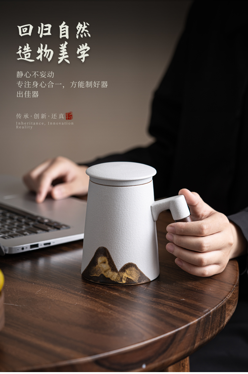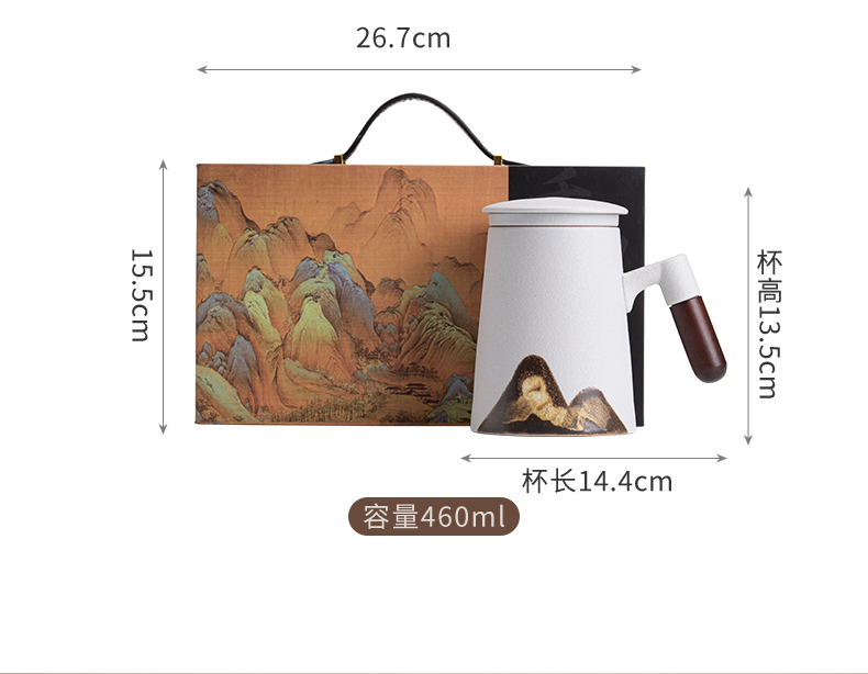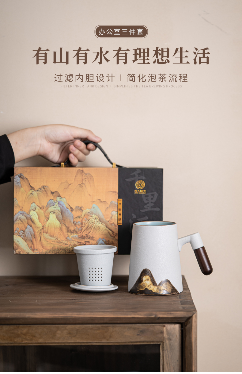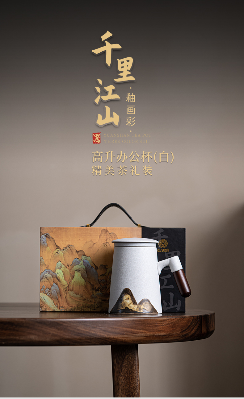 苏氏陶瓷(SUSHI CERAMICS)J0700办公杯手绘釉画彩千里江山带过滤高升杯(单位:个) 白色