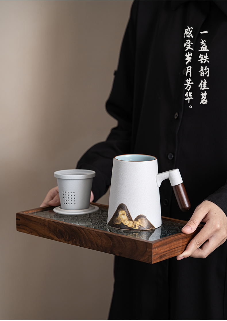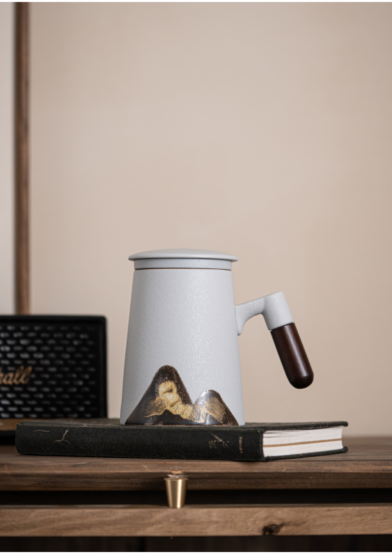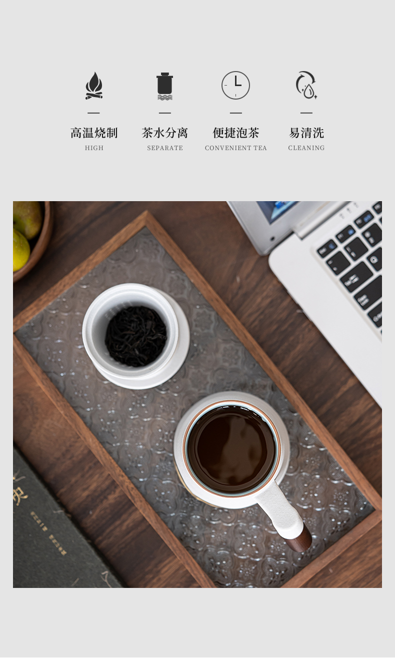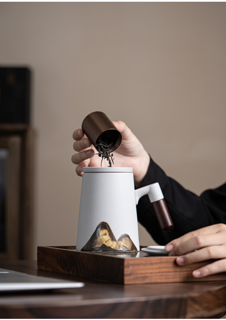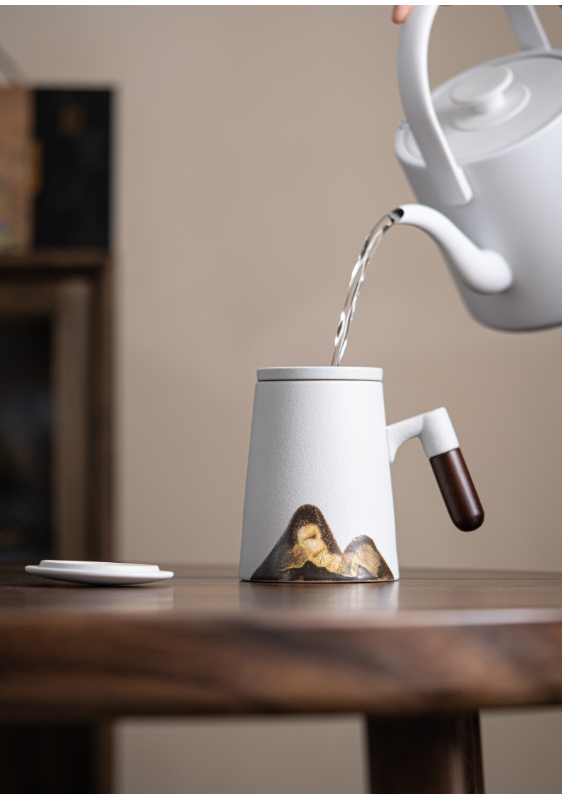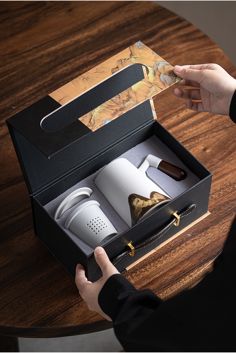 苏氏陶瓷(SUSHI CERAMICS)J0700办公杯手绘釉画彩千里江山带过滤高升杯(单位:个) 白色