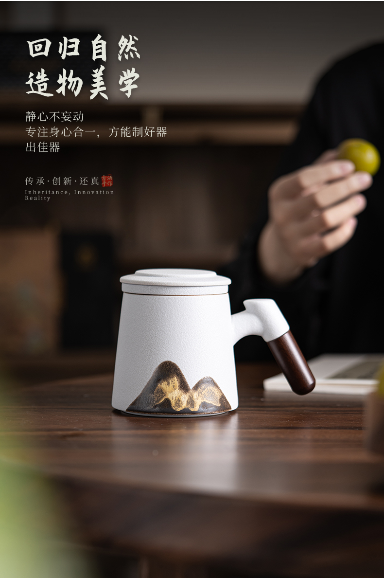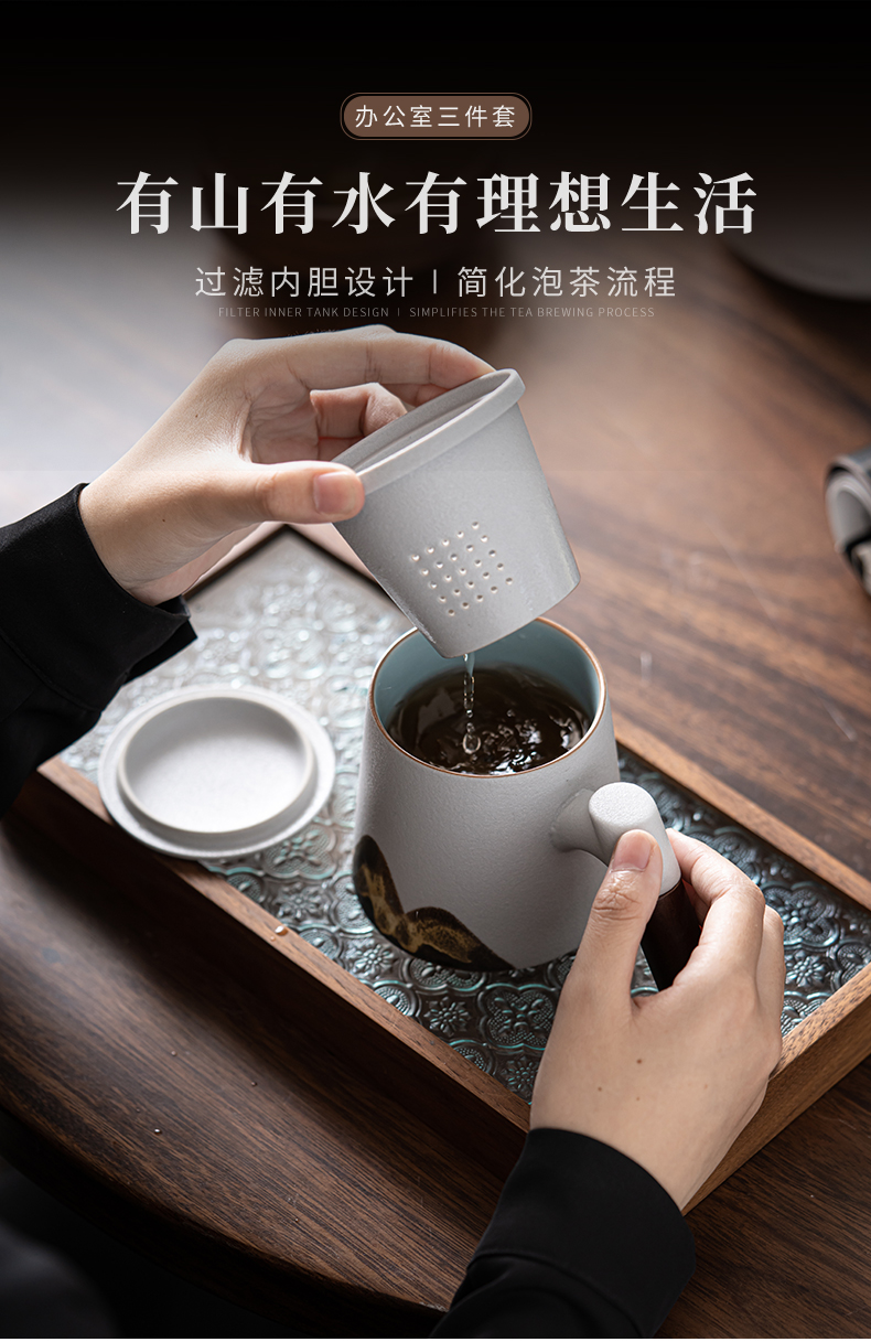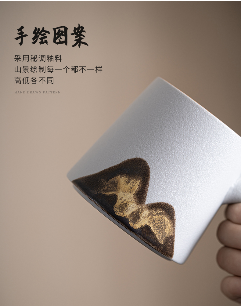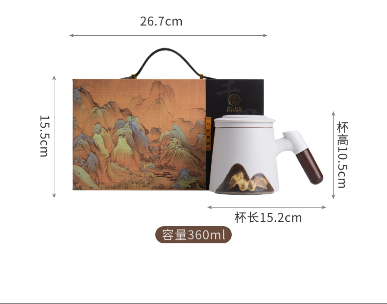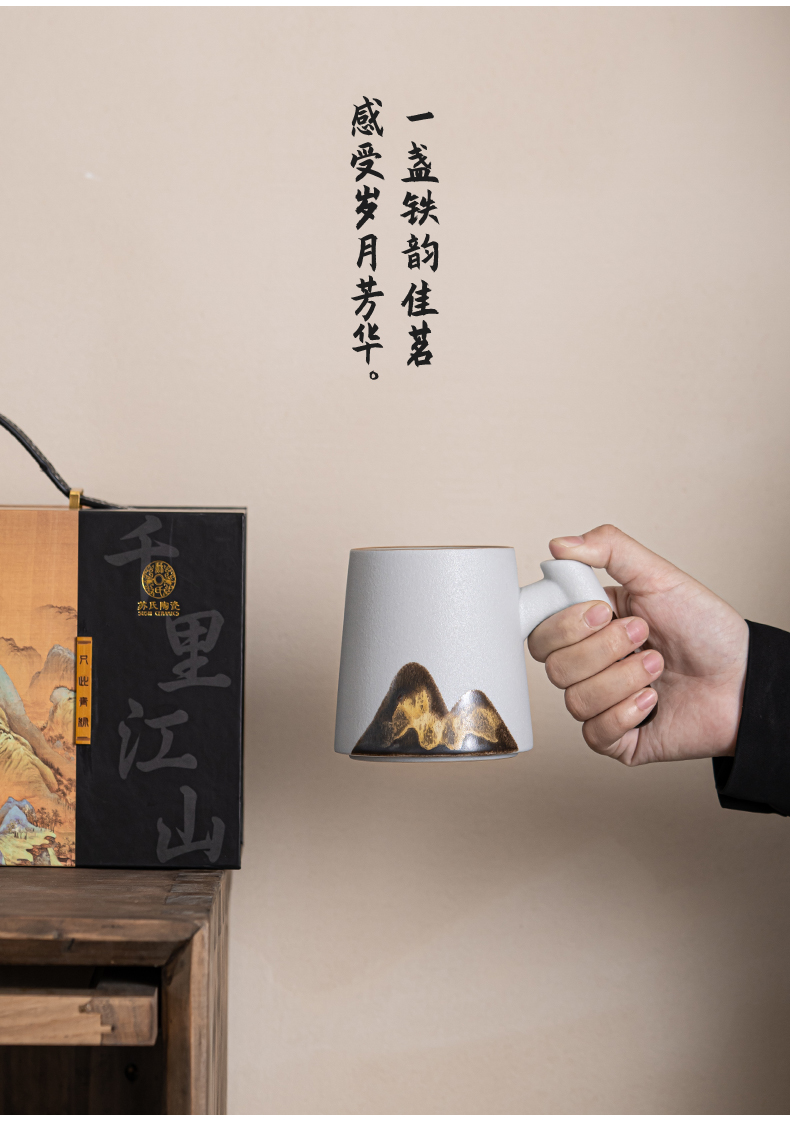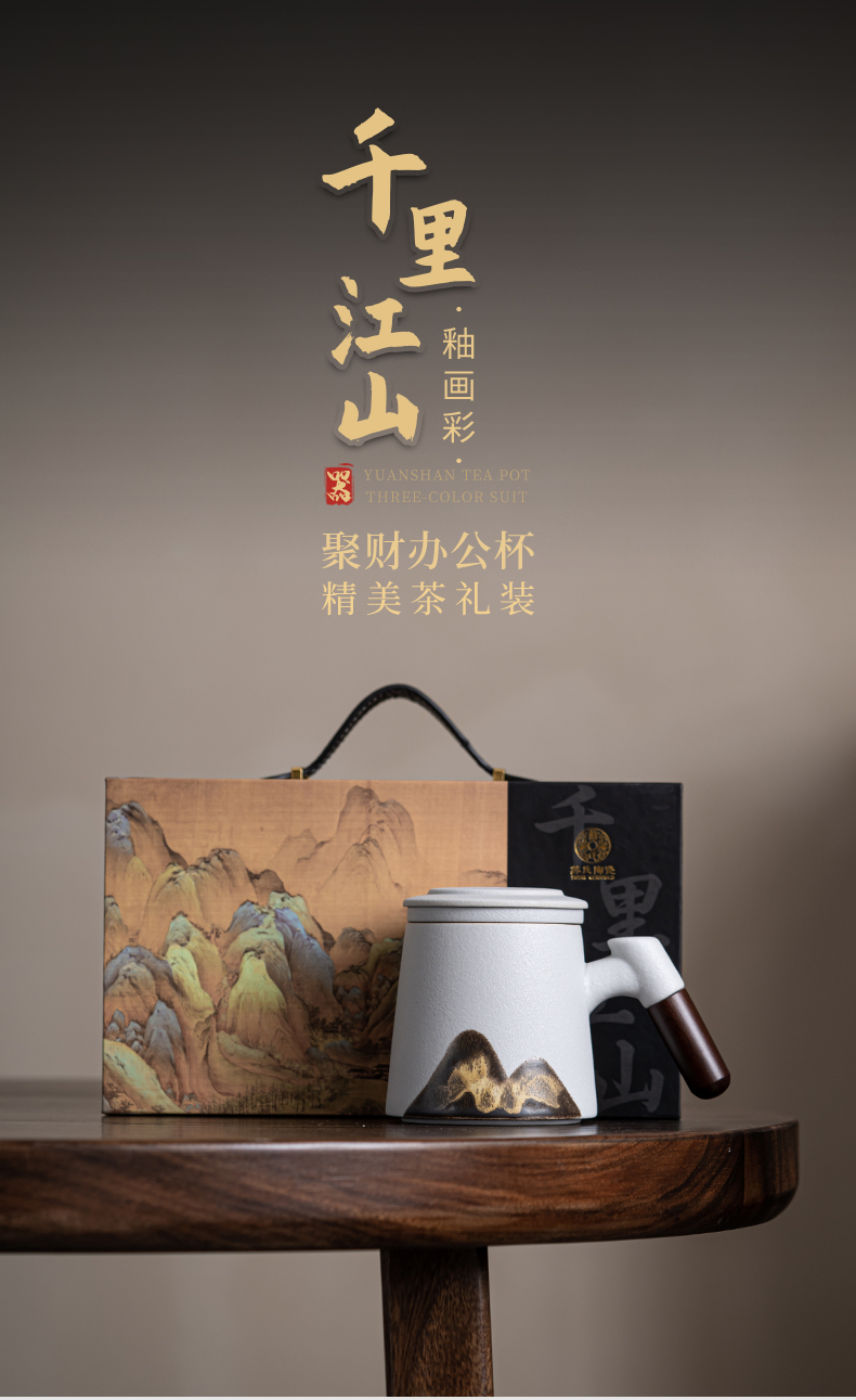 苏氏陶瓷(SUSHI CERAMICS)J0698办公杯手绘釉画彩千里江山带过滤聚财杯(单位:个) 白色