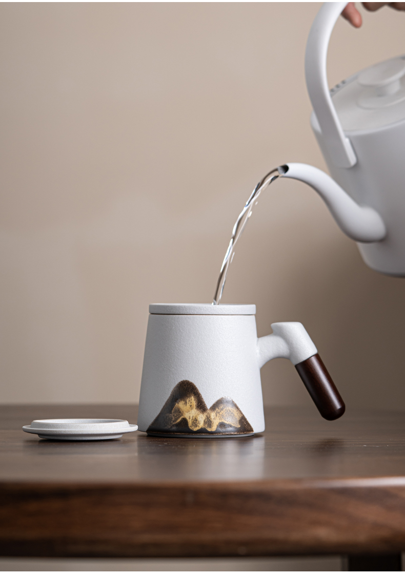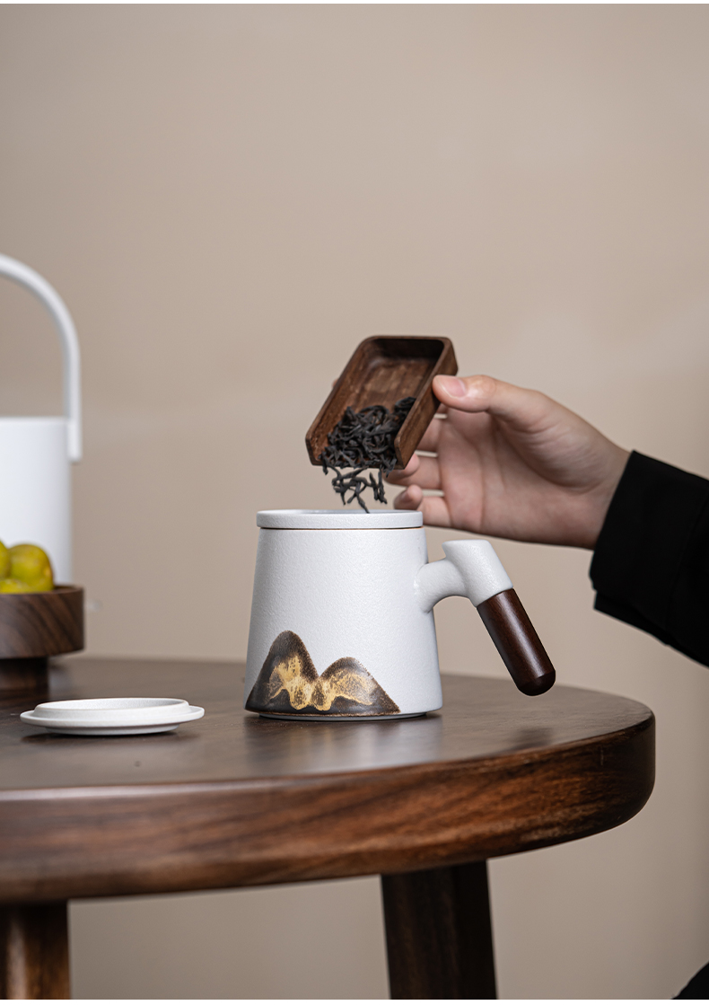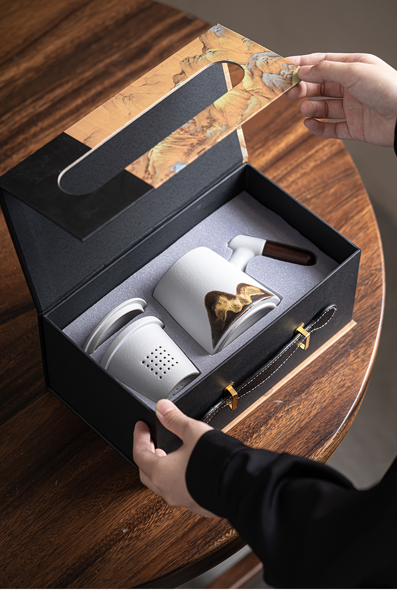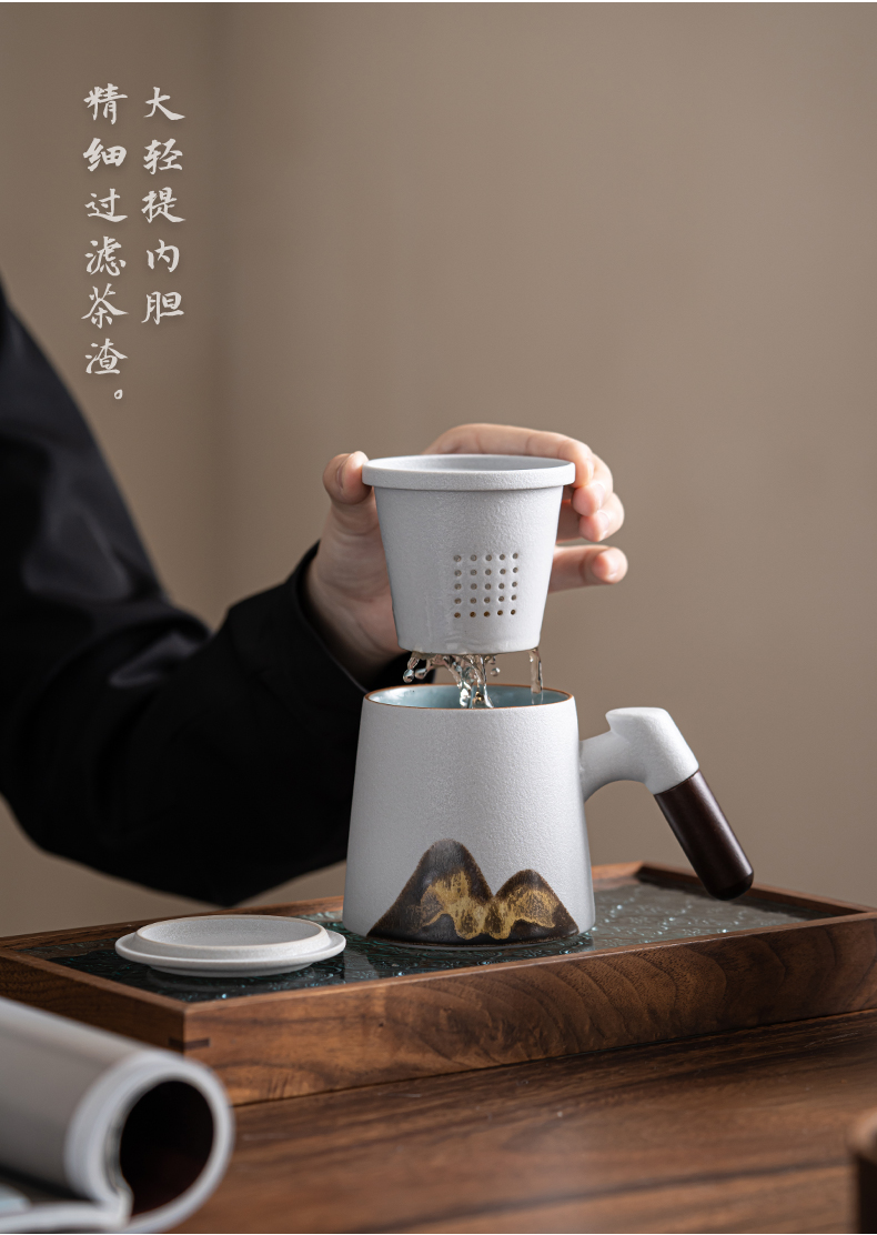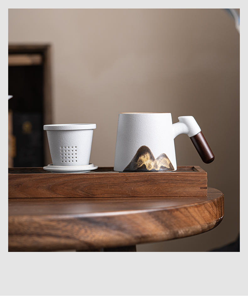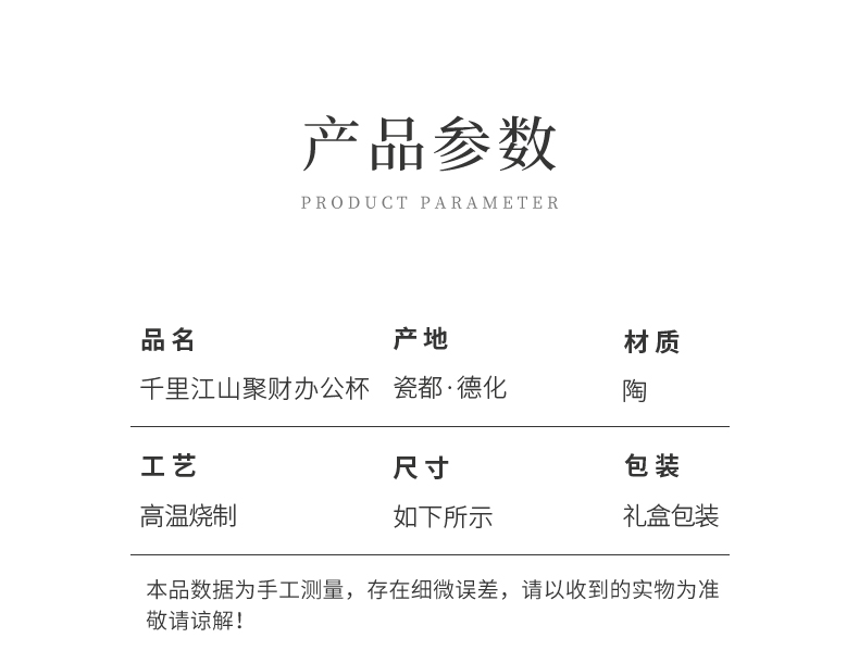 苏氏陶瓷(SUSHI CERAMICS)J0698办公杯手绘釉画彩千里江山带过滤聚财杯(单位:个) 白色