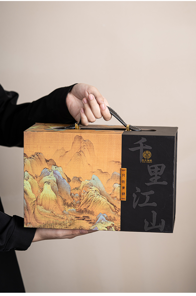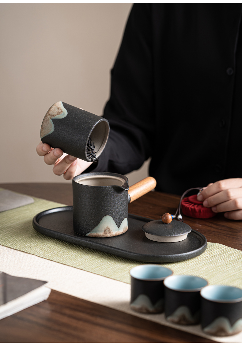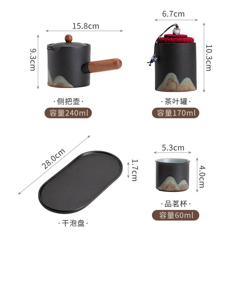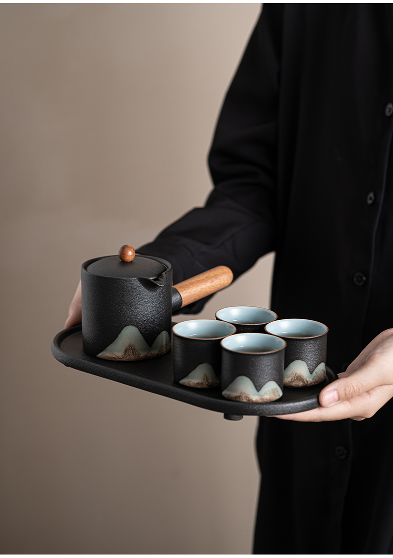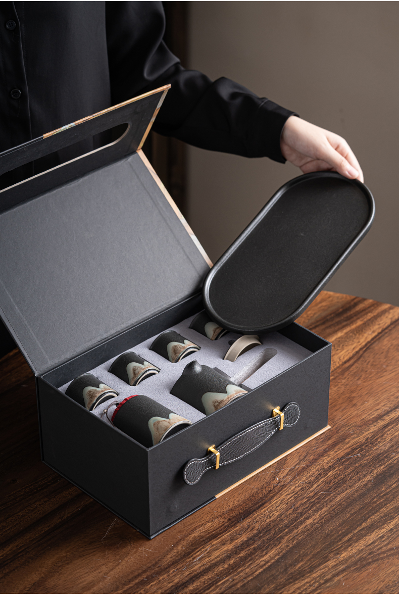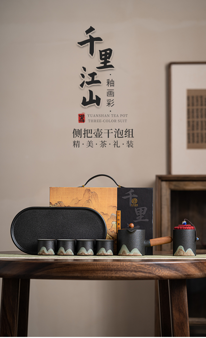苏氏陶瓷(SUSHI CERAMICS)J0695茶具套装釉画彩茶壶茶杯茶叶罐干泡盘7头(单位:套) 曜石黑