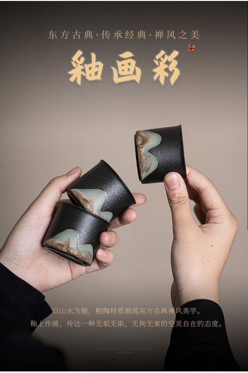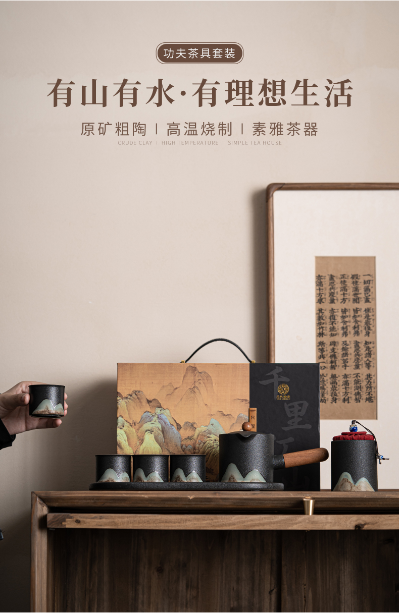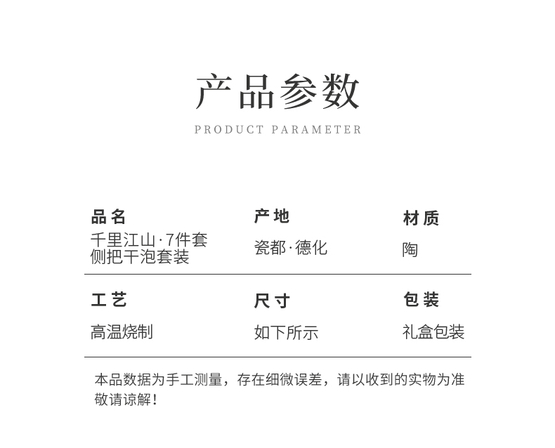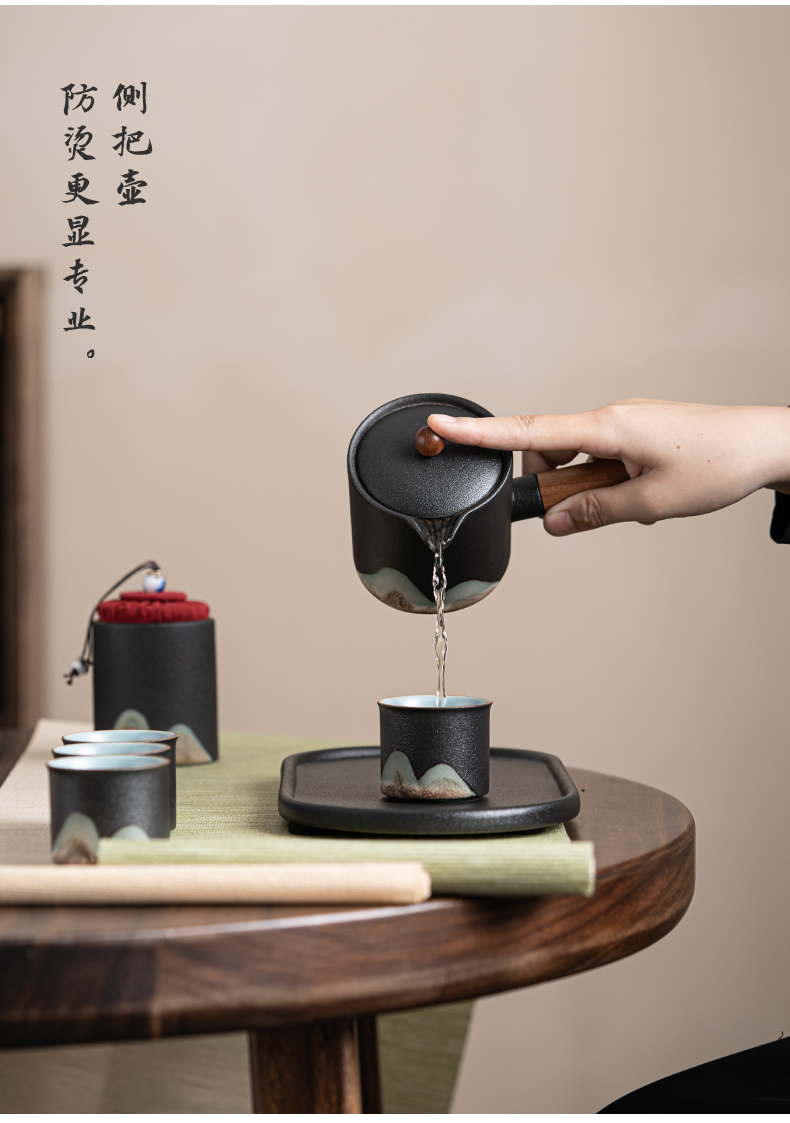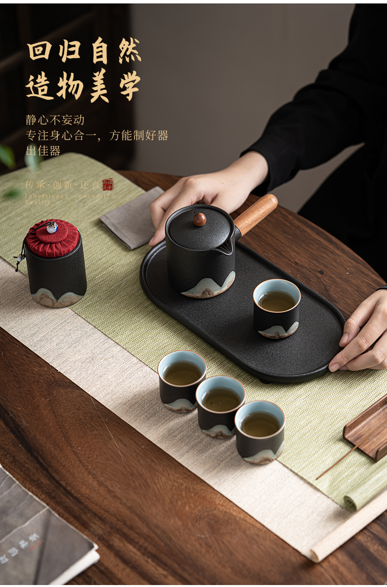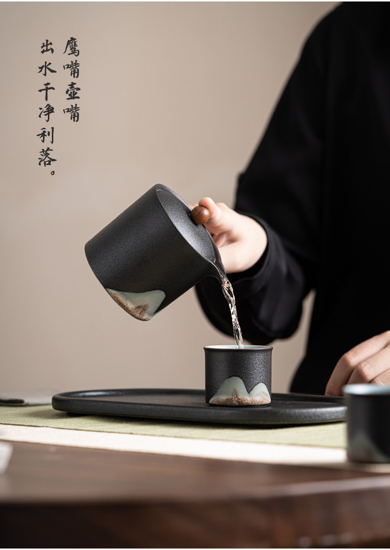 苏氏陶瓷(SUSHI CERAMICS)J0695茶具套装釉画彩茶壶茶杯茶叶罐干泡盘7头(单位:套) 曜石黑