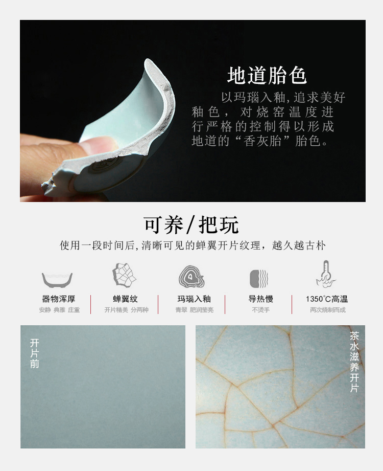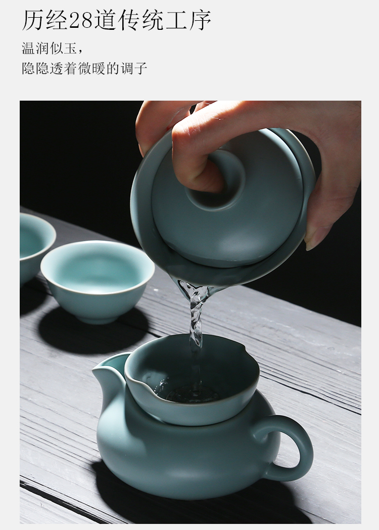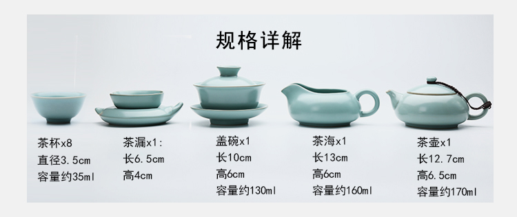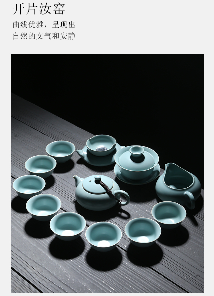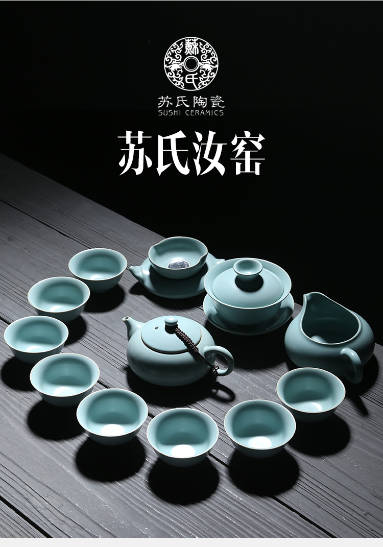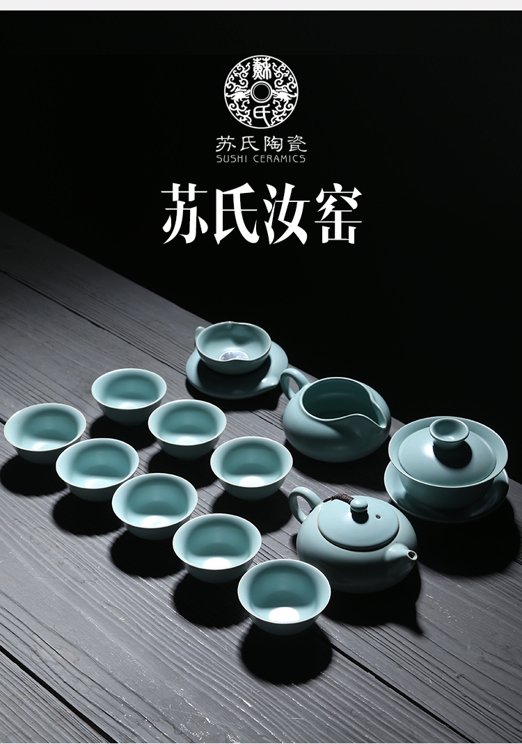 苏氏陶瓷(SUSHI CERAMICS)J0101茶具套装汝窑开片可养金线12头(单位:套) 蓝色