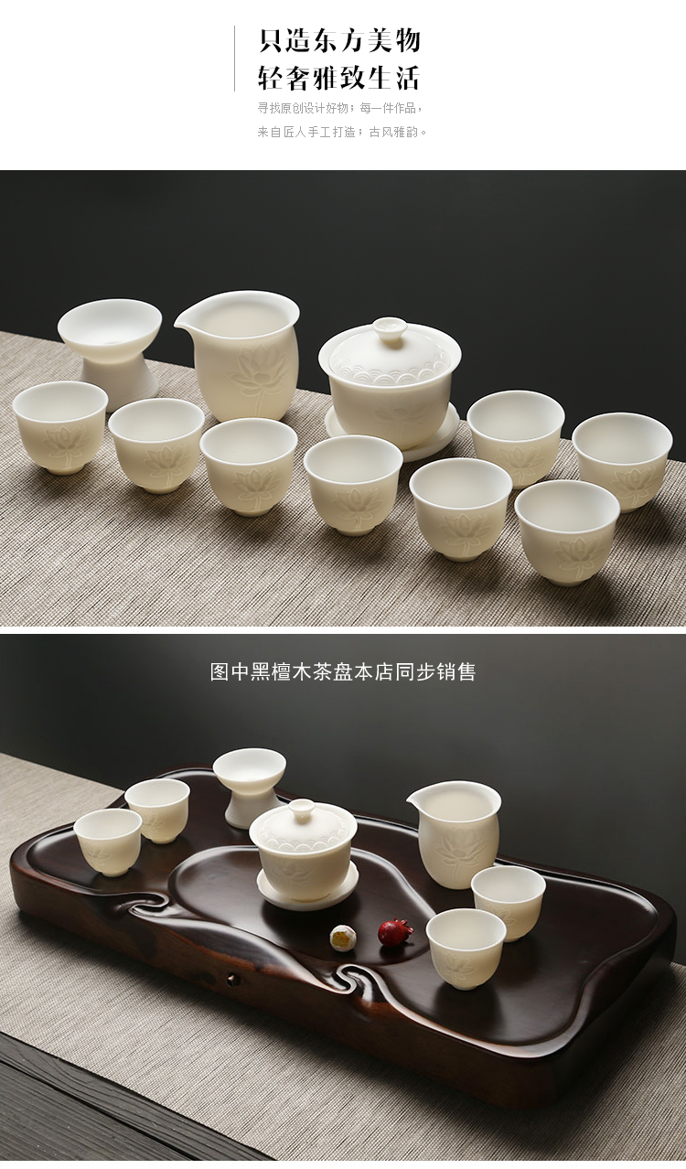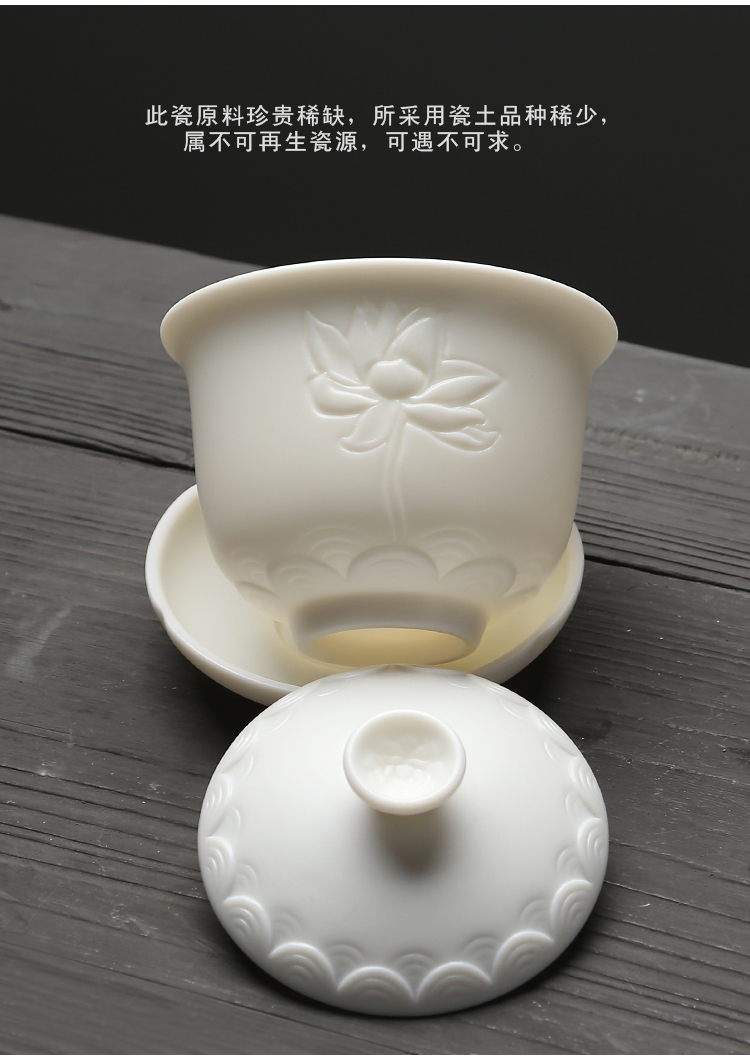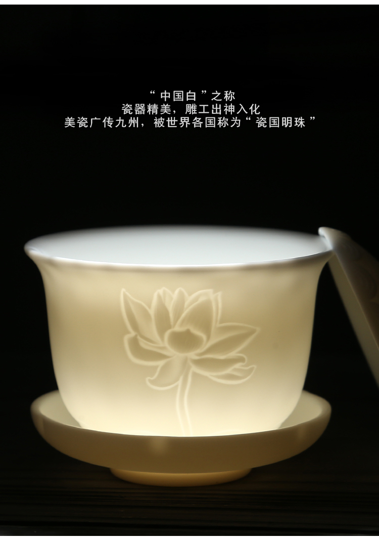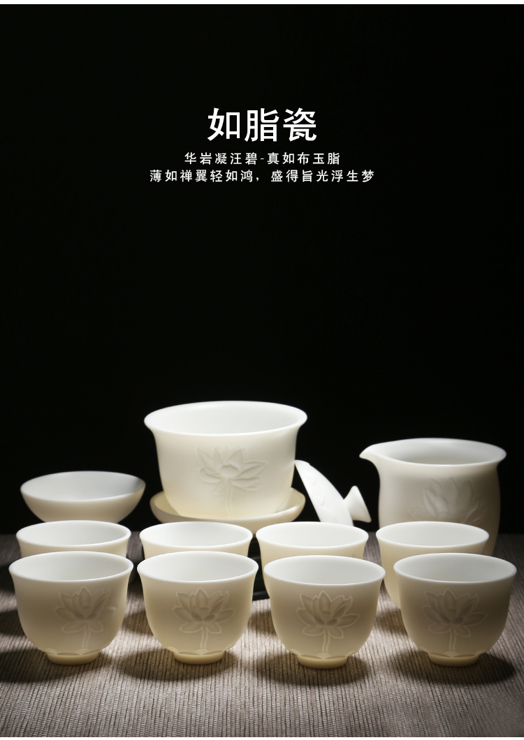 苏氏陶瓷(SUSHI CERAMICS)J0202-1茶具套装白瓷哑光莲花盖碗茶杯11头(单位:套) 白色