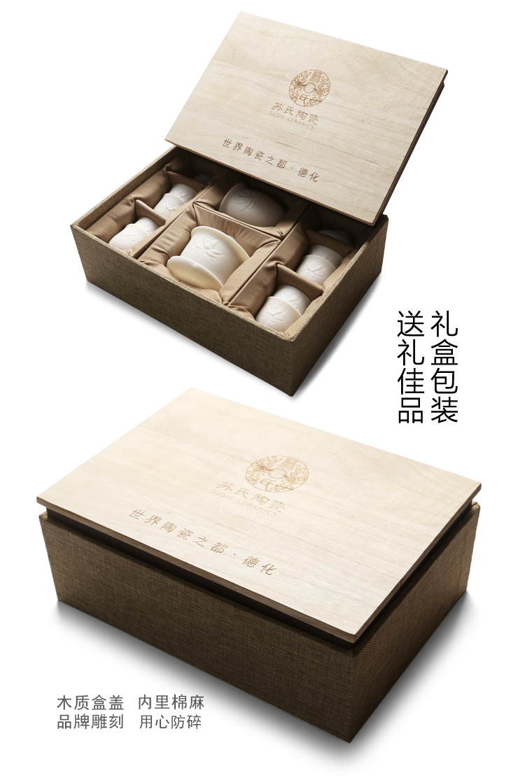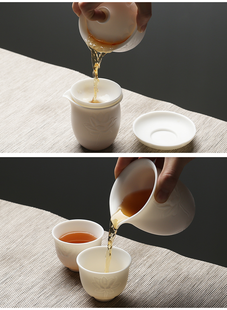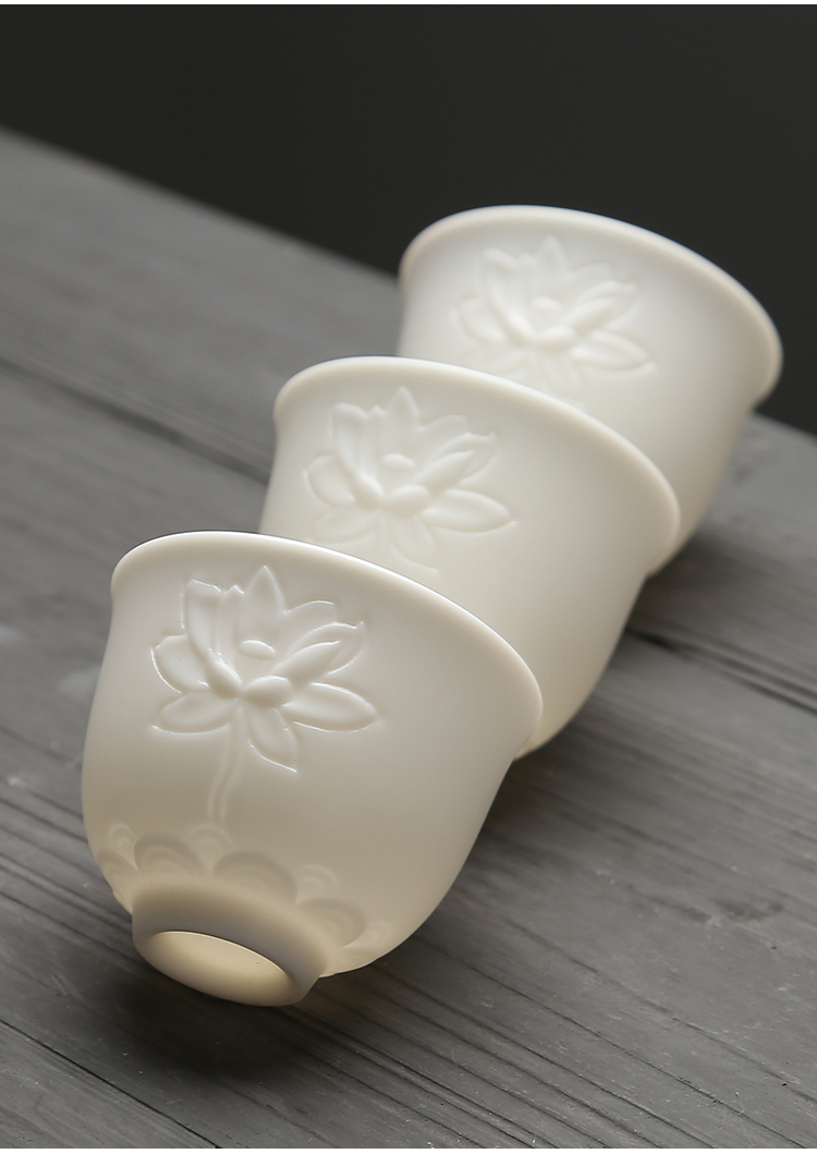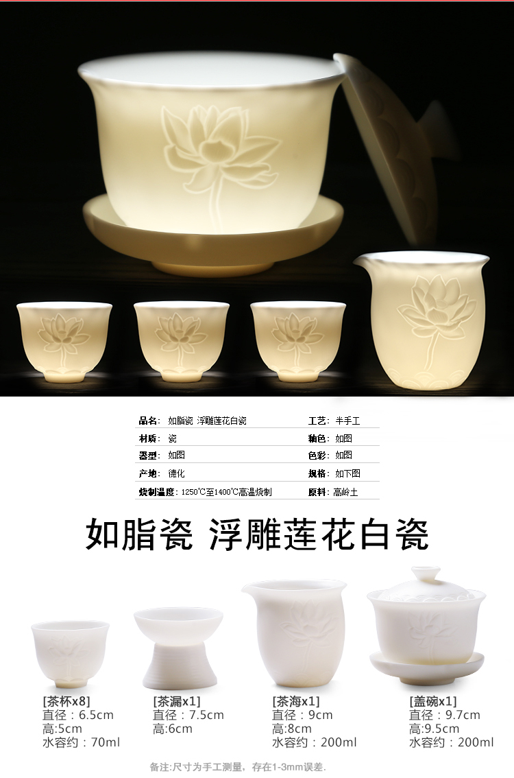 苏氏陶瓷(SUSHI CERAMICS)J0202-1茶具套装白瓷哑光莲花盖碗茶杯11头(单位:套) 白色