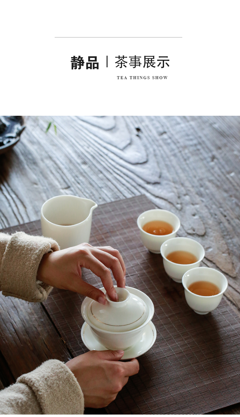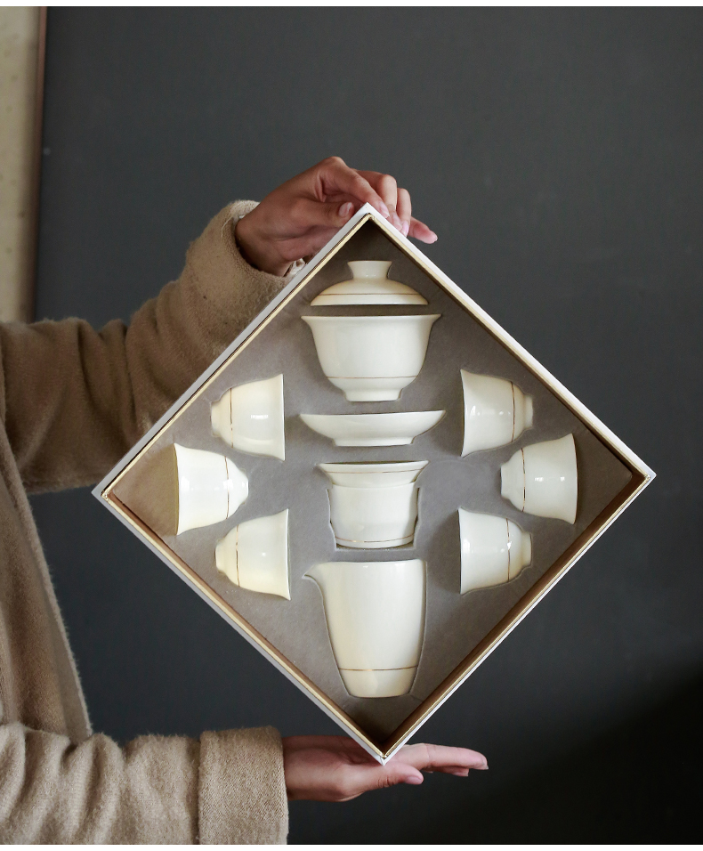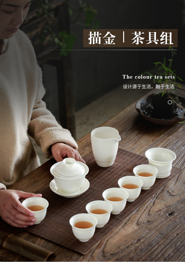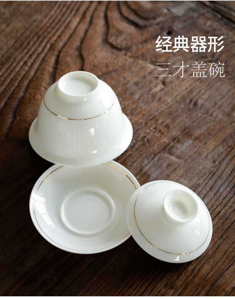 苏氏陶瓷(SUSHI CERAMICS)J0260茶具套装描金三才盖碗茶杯9头(单位:套) 白色