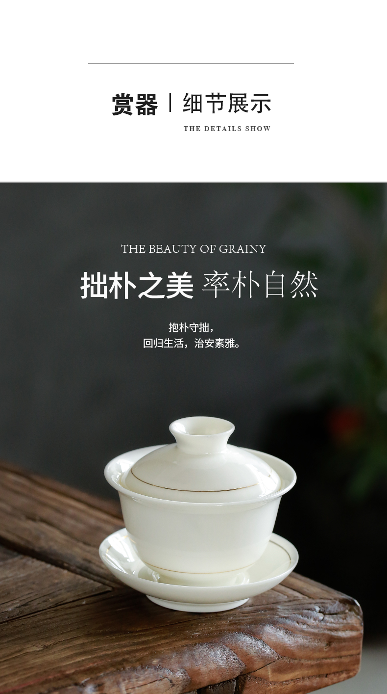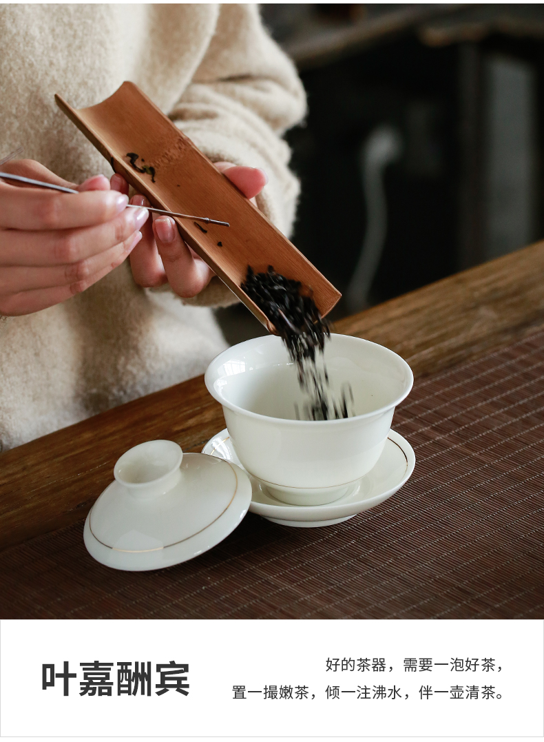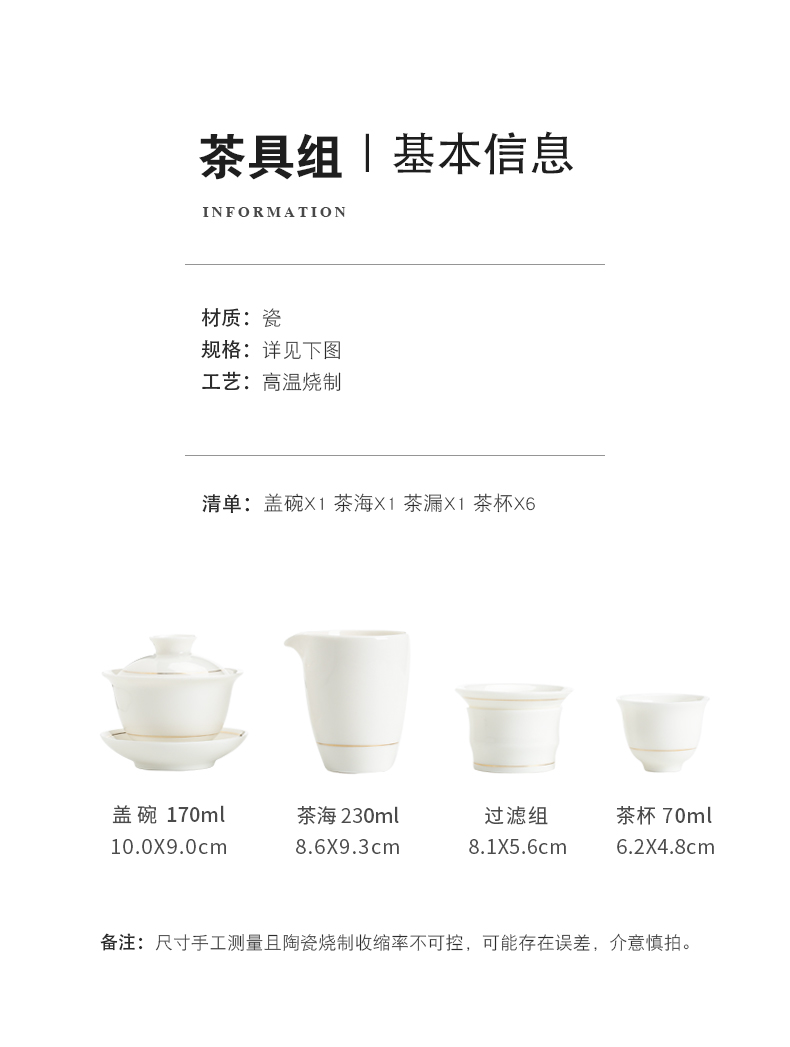 苏氏陶瓷(SUSHI CERAMICS)J0260茶具套装描金三才盖碗茶杯9头(单位:套) 白色