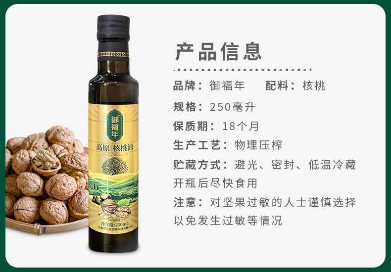 御福年高原核桃油250ml(单位:瓶) 黄色