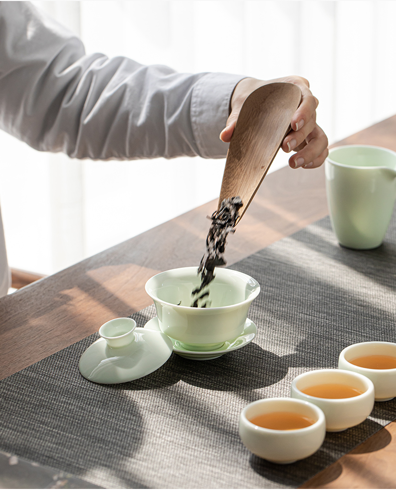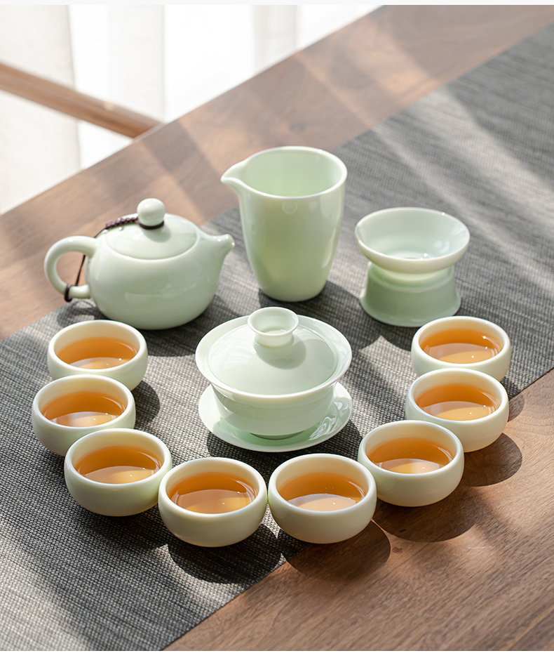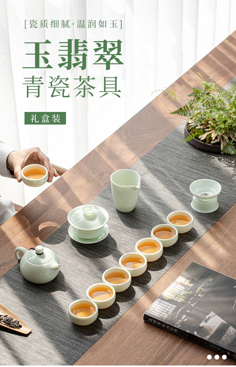 苏氏陶瓷(SUSHI CERAMICS)J0433茶具套装翡翠玉瓷茶壶茶杯12头礼盒装(单位:套) 松石绿