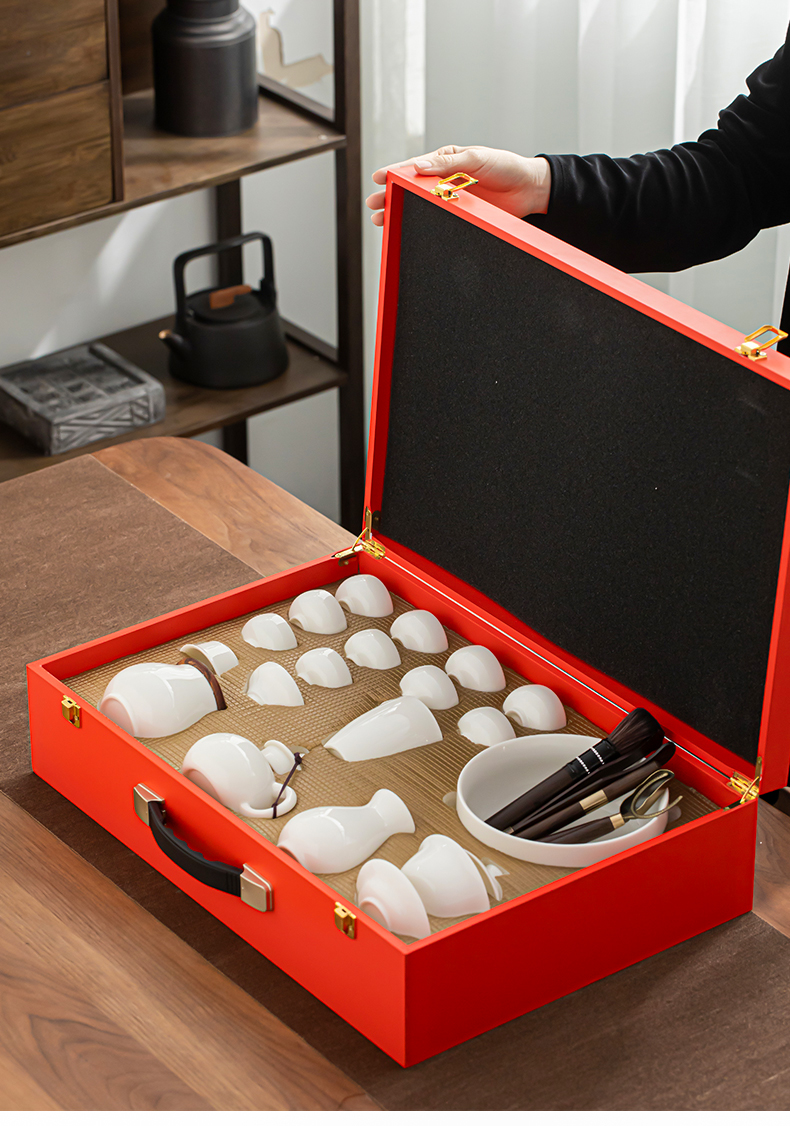 苏氏陶瓷(SUSHI CERAMICS)J0438茶具套装白瓷大套组礼盒装(单位:套) 白色