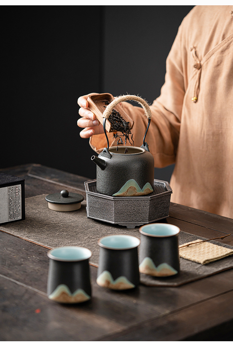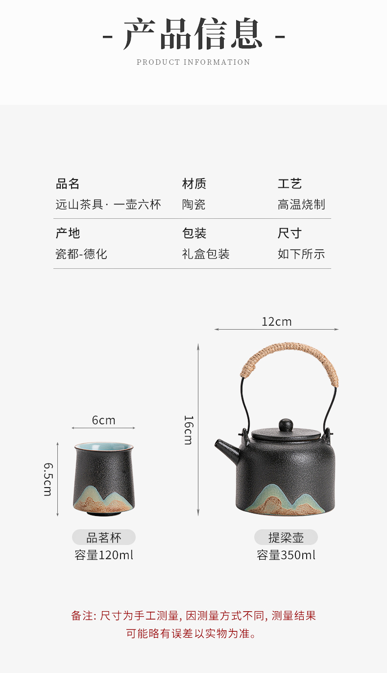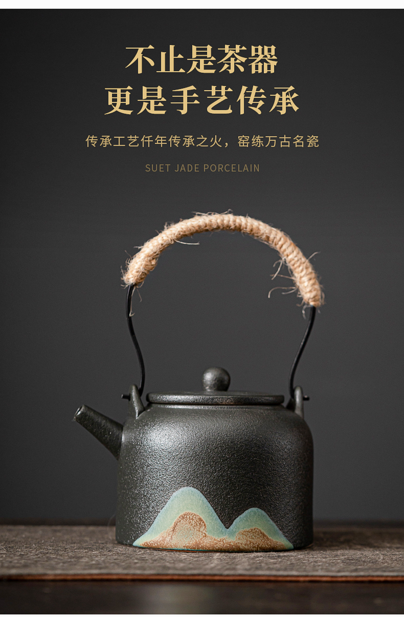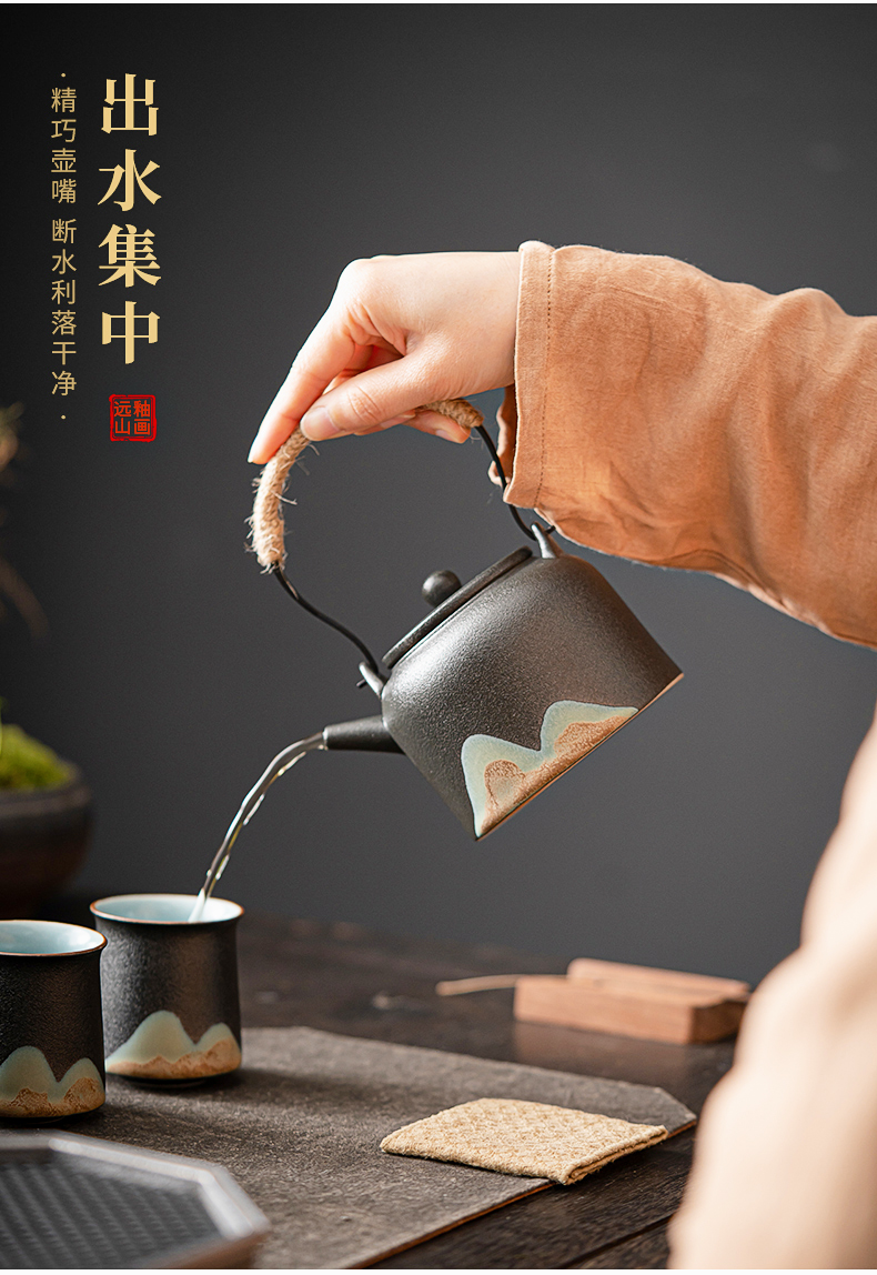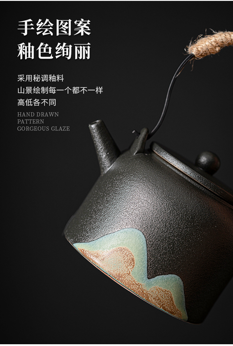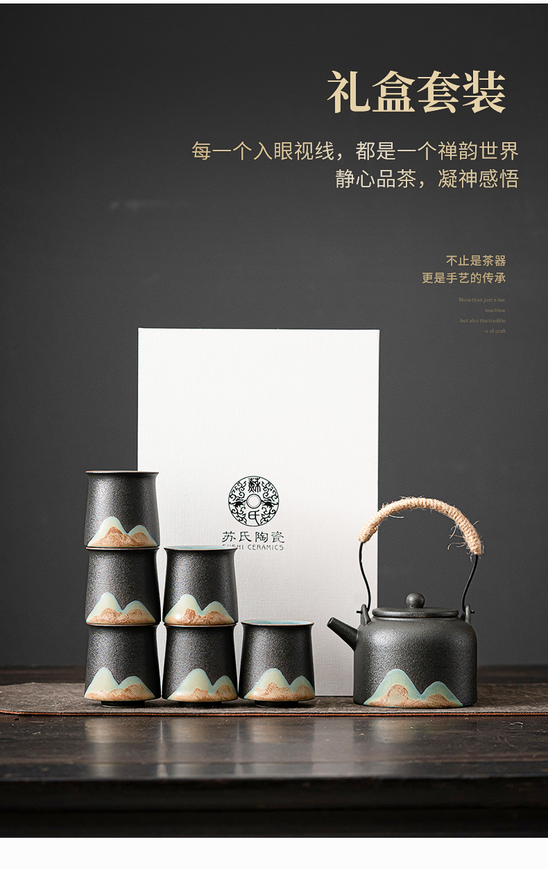 苏氏陶瓷(SUSHI CERAMICS)J0564茶具套装手绘山水画提梁壶6茶杯礼盒装(单位:套) 黑色