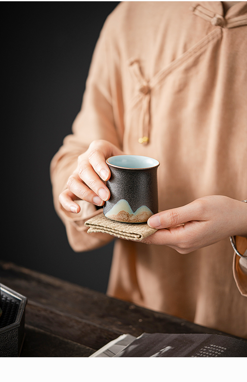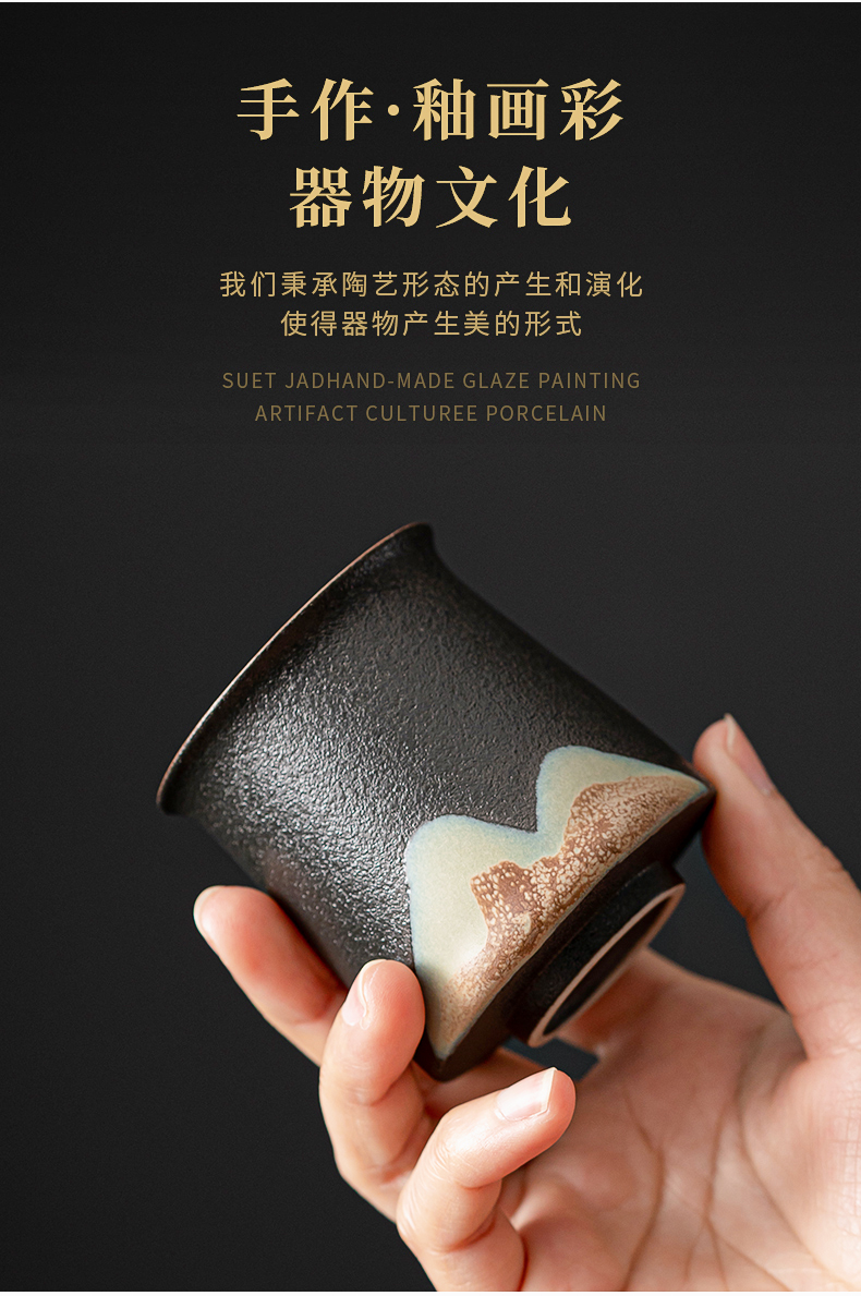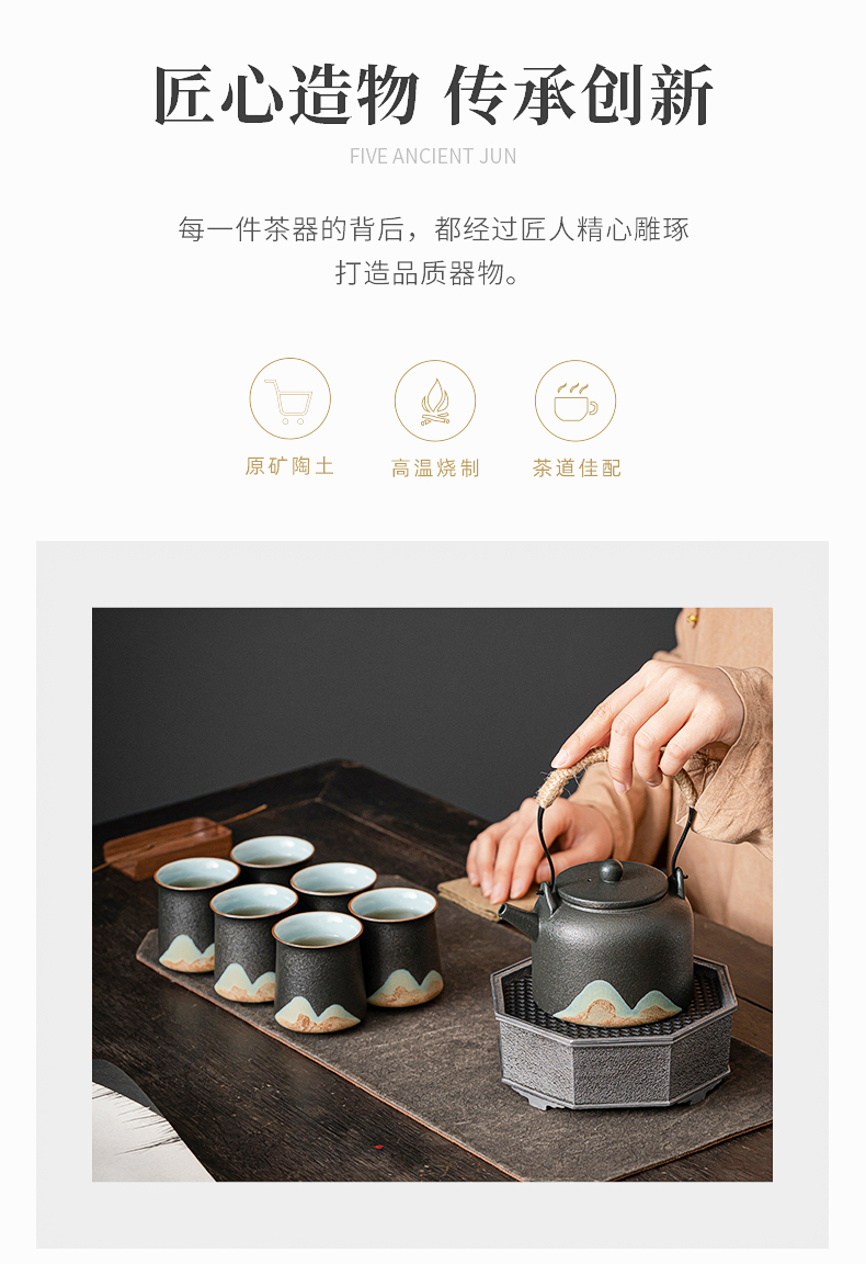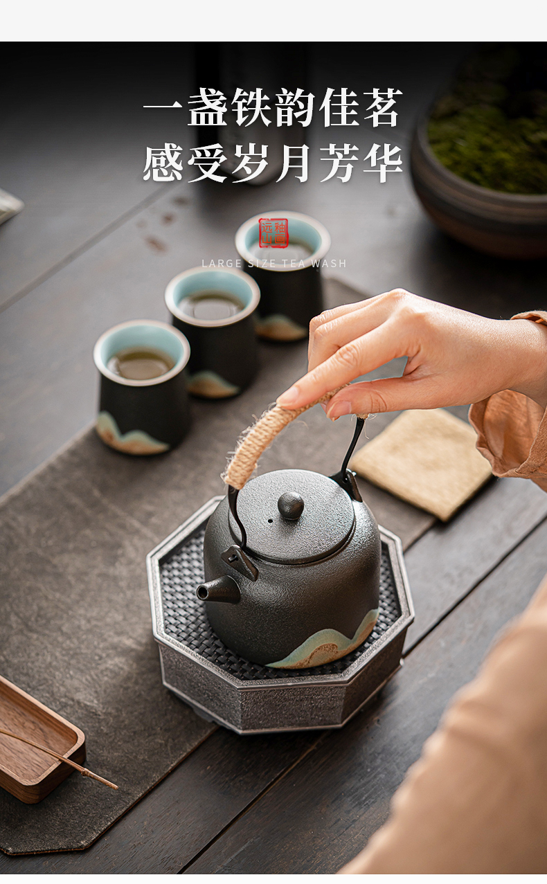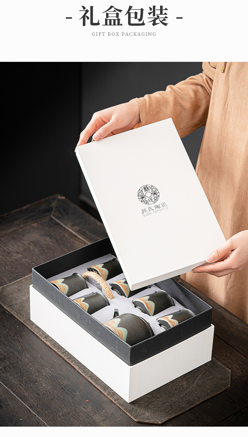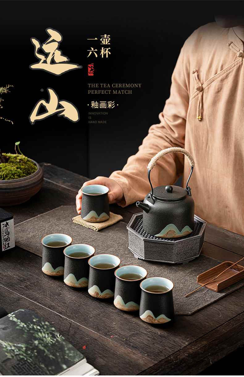 苏氏陶瓷(SUSHI CERAMICS)J0564茶具套装手绘山水画提梁壶6茶杯礼盒装(单位:套) 黑色
