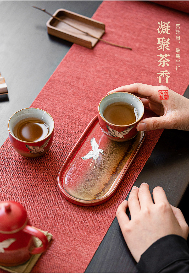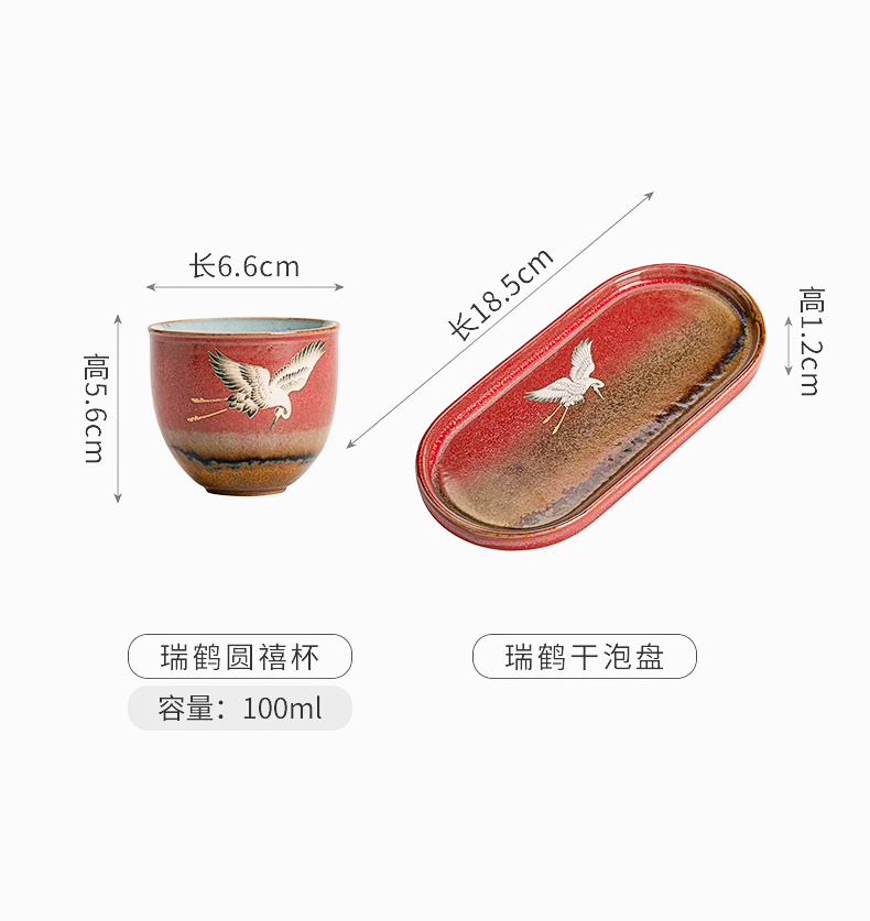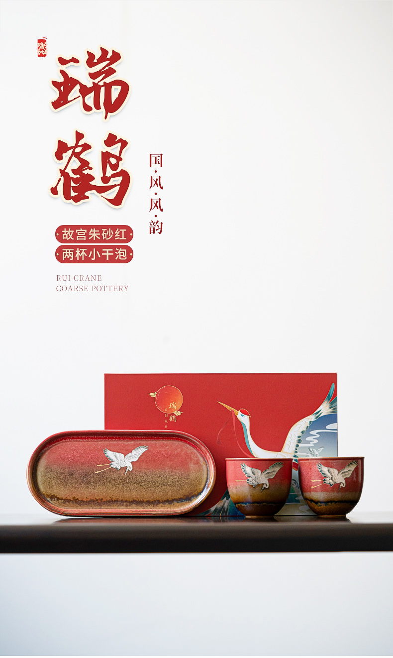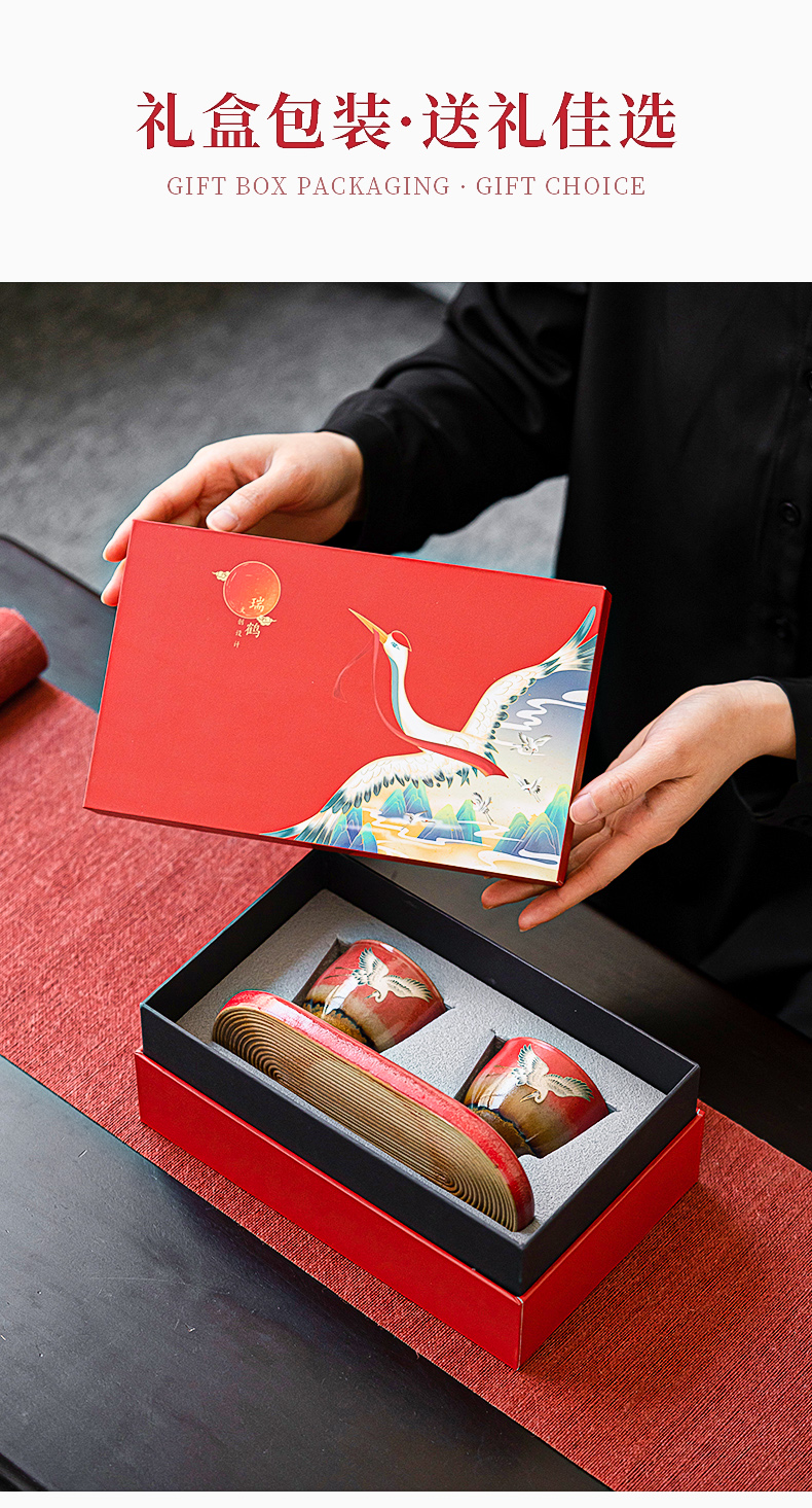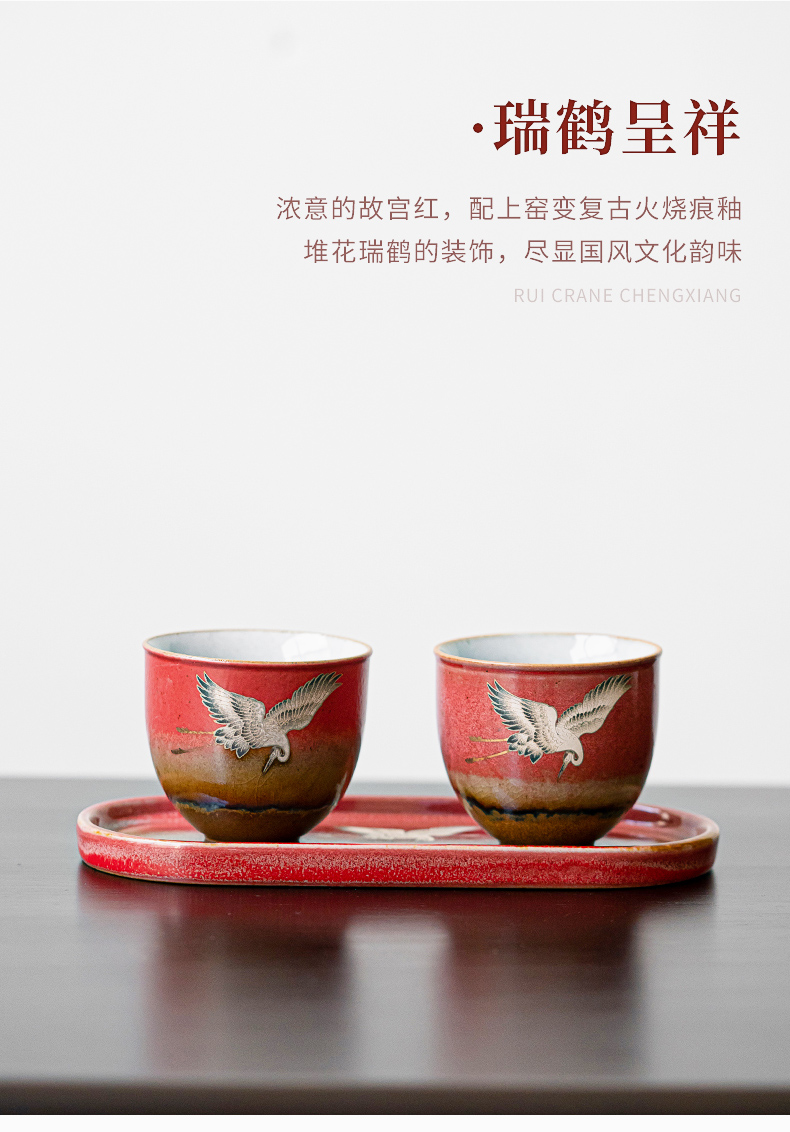 苏氏陶瓷(SUSHI CERAMICS)J0598托盘2茶杯窑变宫墙红瑞鹤呈祥礼盒装(单位:套) 红色