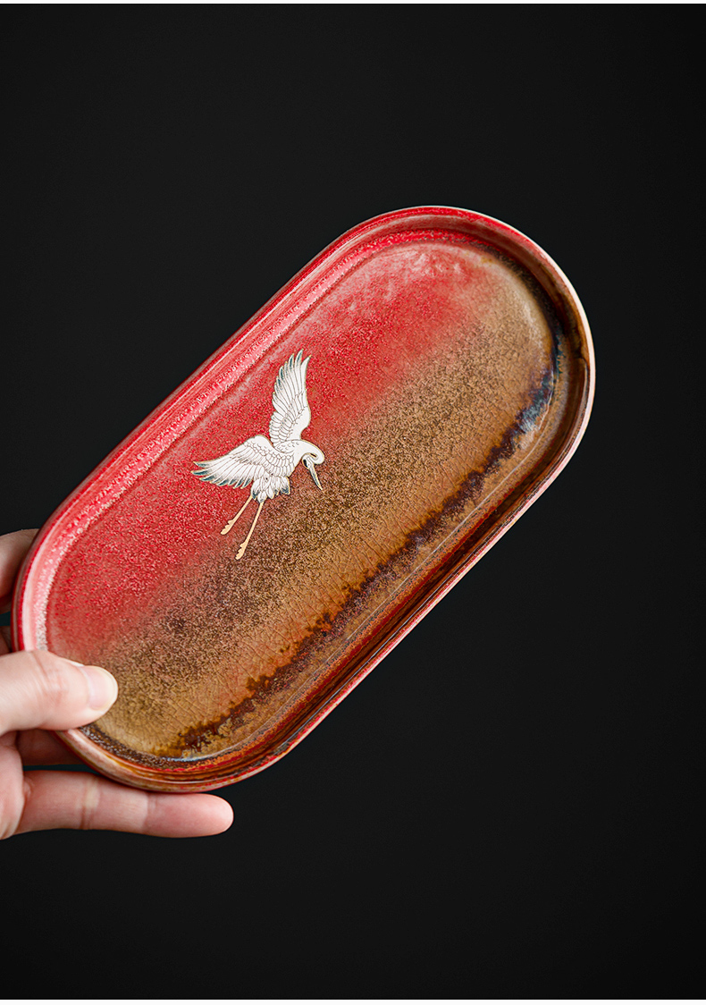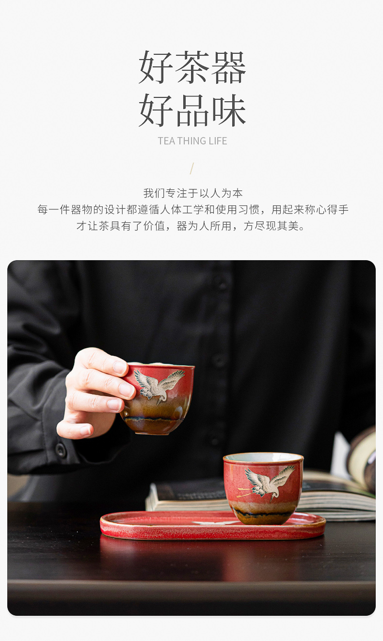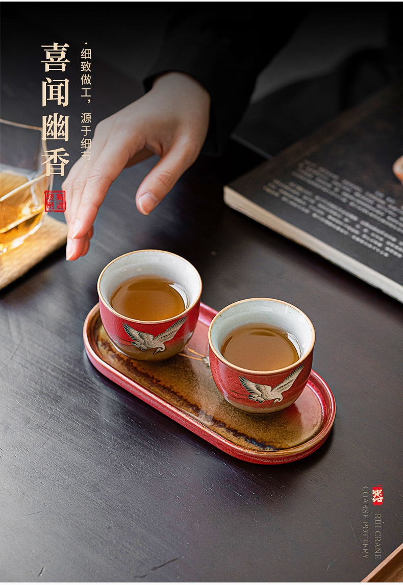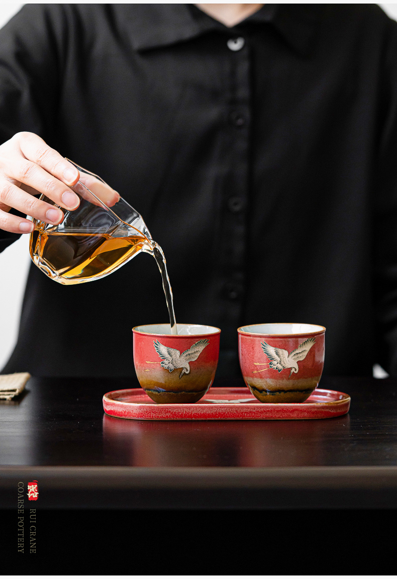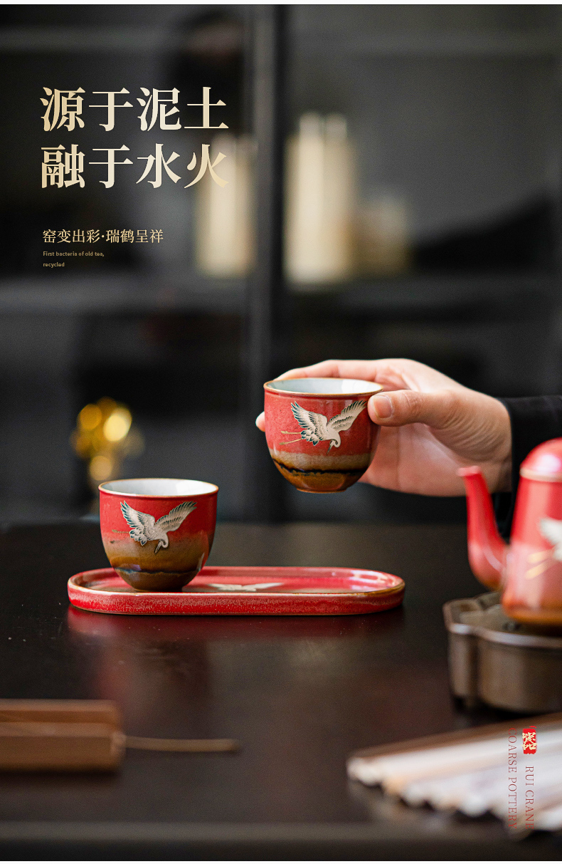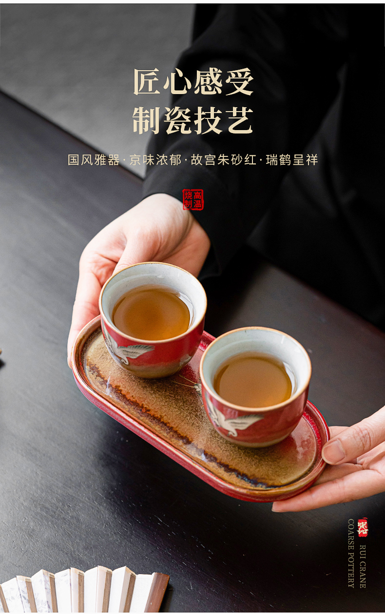 苏氏陶瓷(SUSHI CERAMICS)J0598托盘2茶杯窑变宫墙红瑞鹤呈祥礼盒装(单位:套) 红色