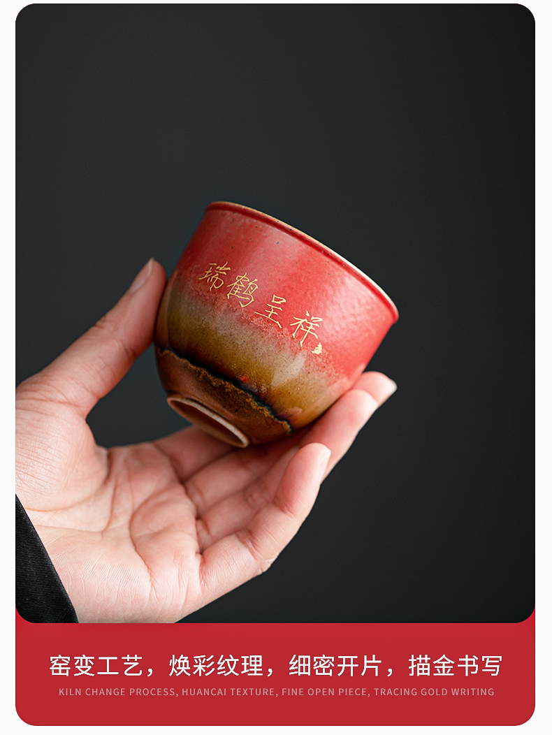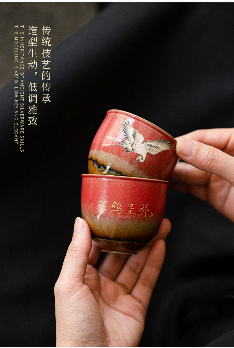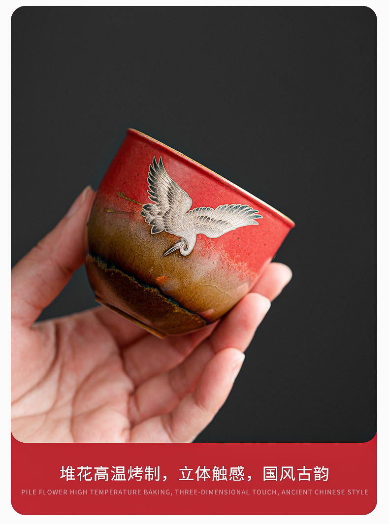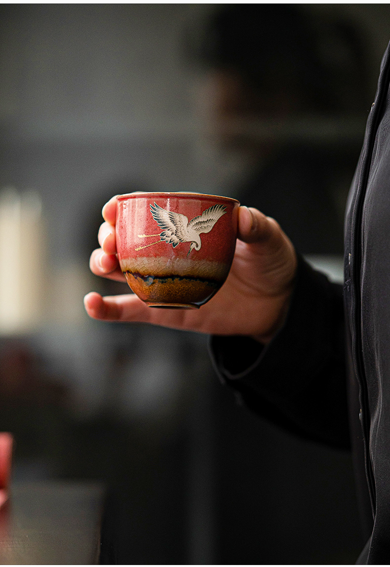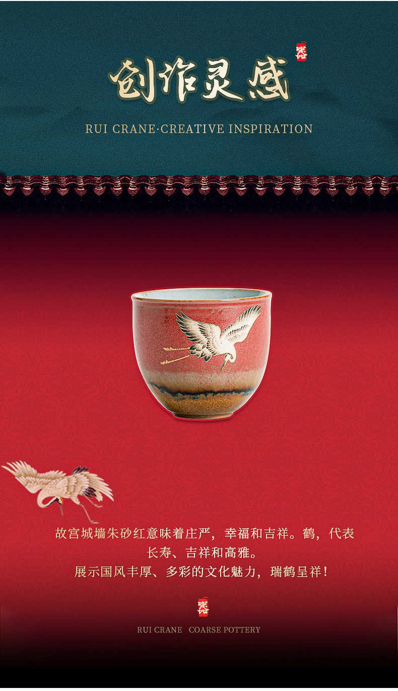 苏氏陶瓷(SUSHI CERAMICS)J0598托盘2茶杯窑变宫墙红瑞鹤呈祥礼盒装(单位:套) 红色