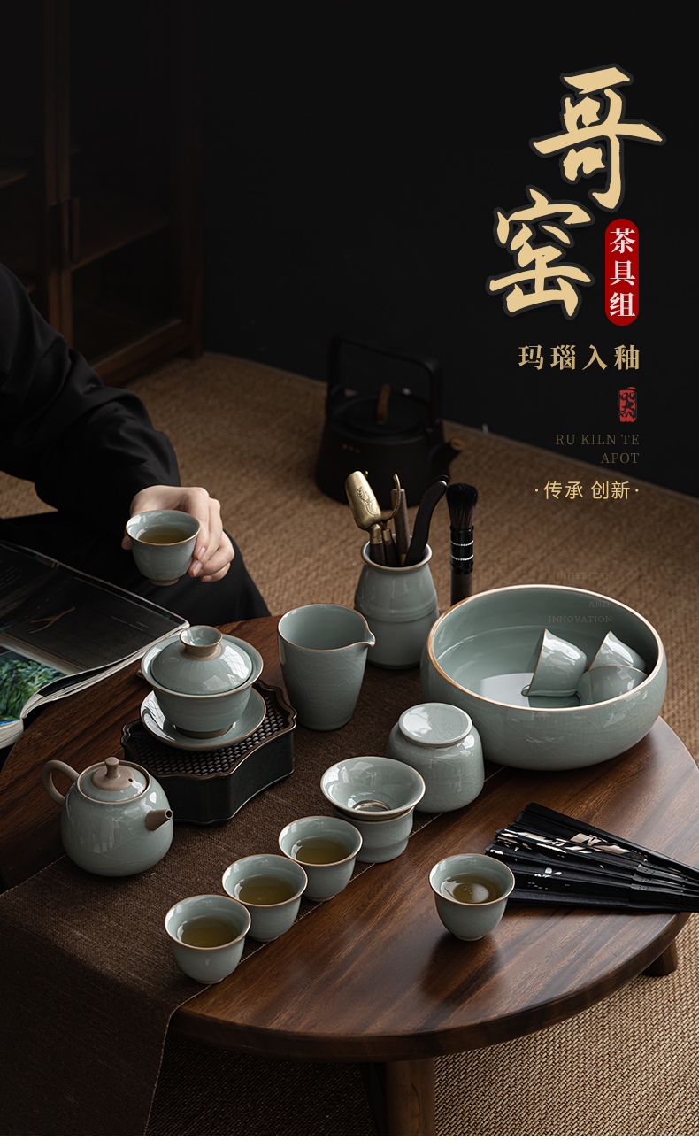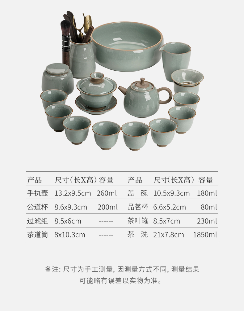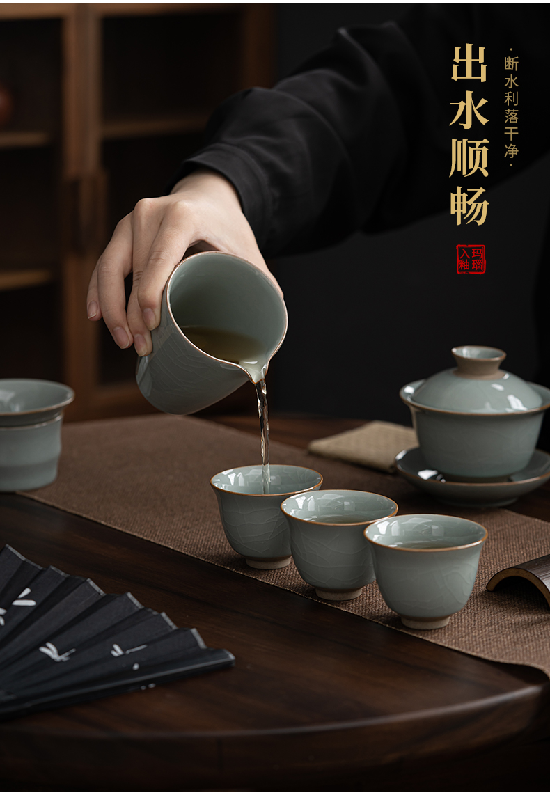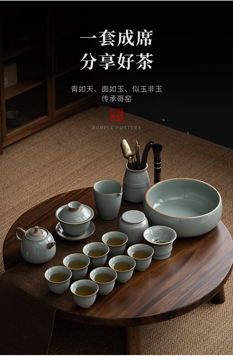 苏氏陶瓷(SUSHI CERAMICS)J0629茶具套装哥窑大套组礼盒装(单位:套) 灰色