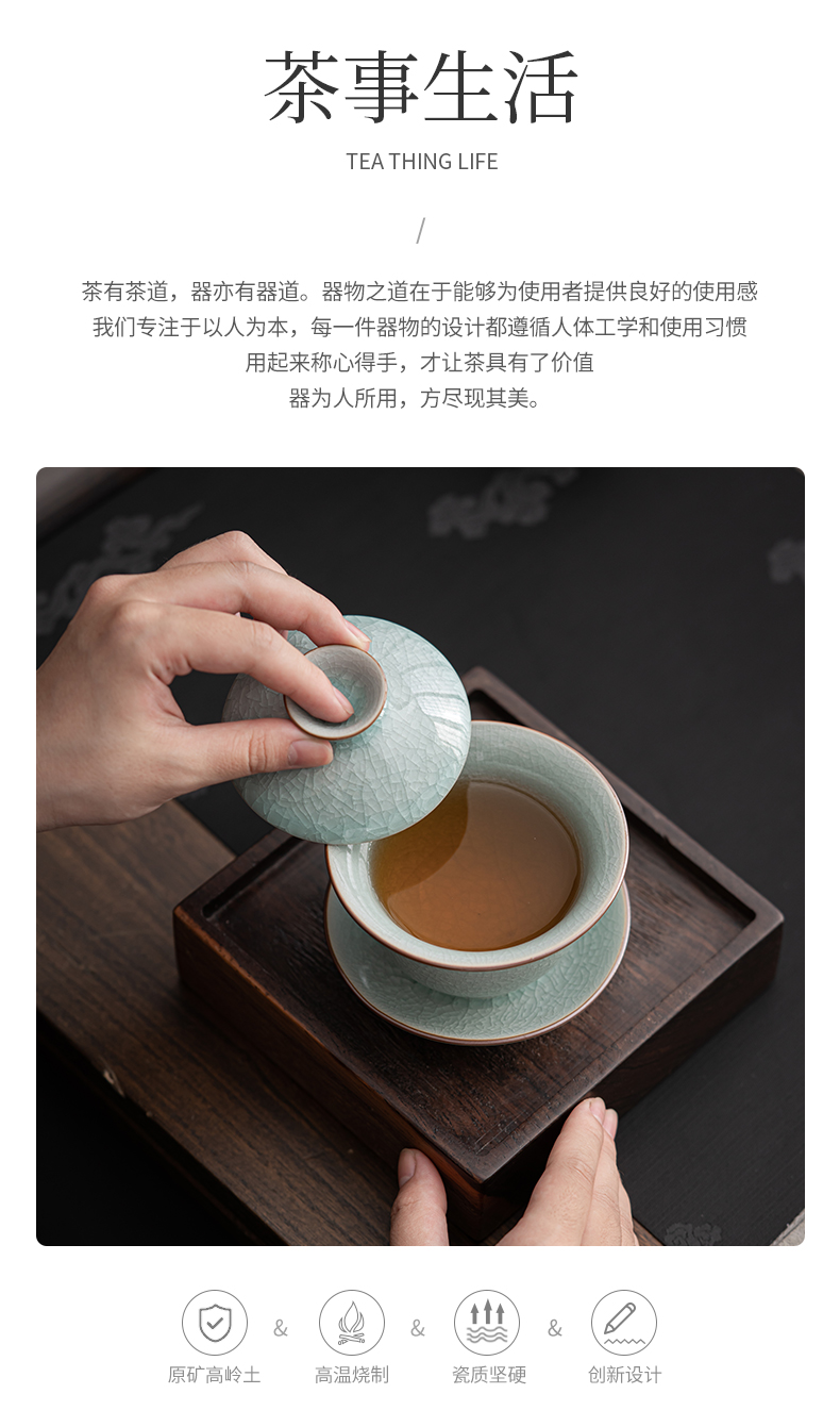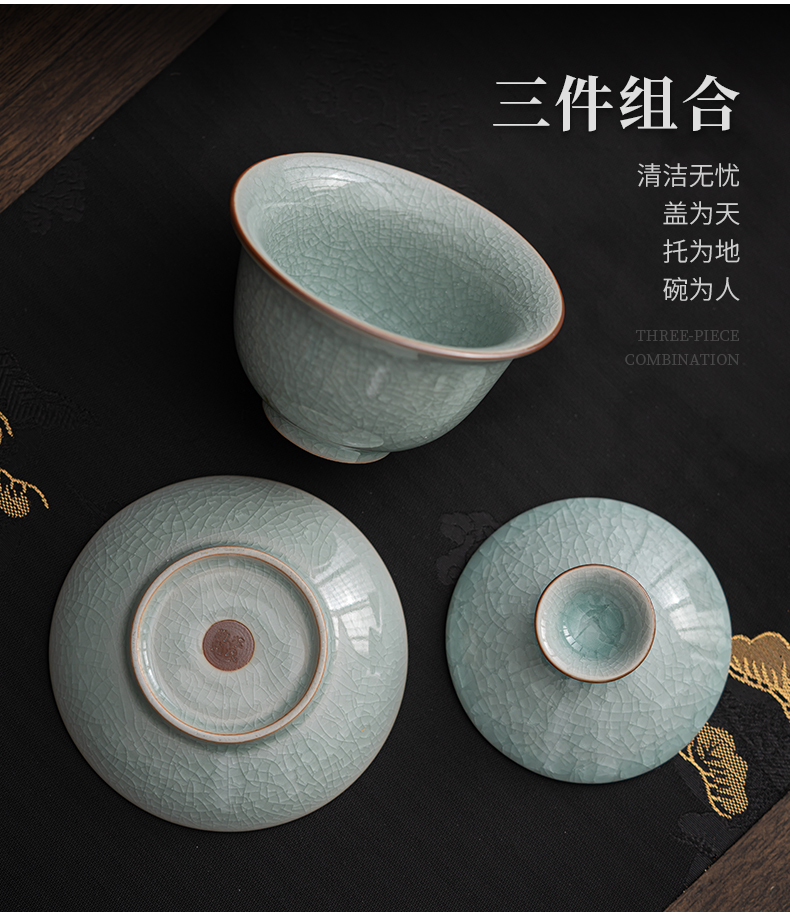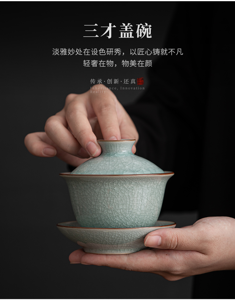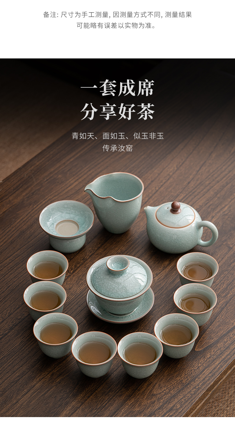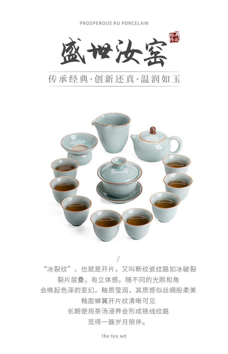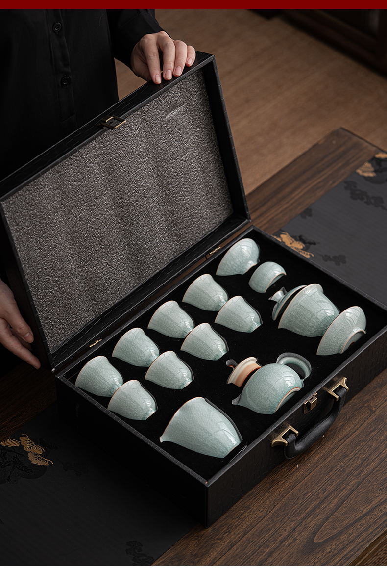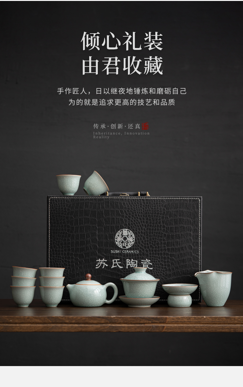 苏氏陶瓷(SUSHI CERAMICS)J0672茶具套装汝窑冰花釉盖碗茶杯12头礼盒装(单位:套) 蓝