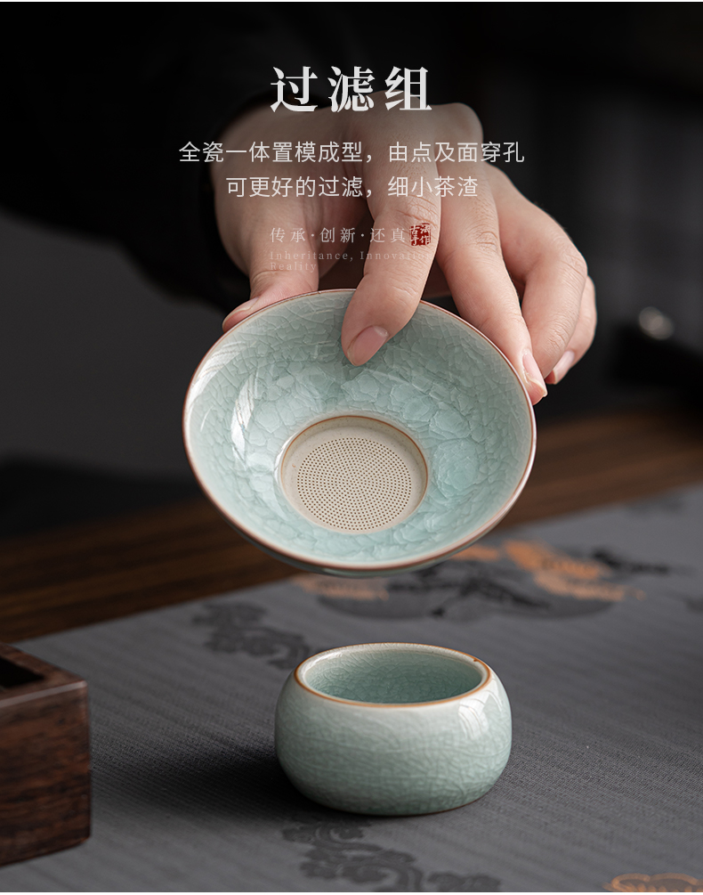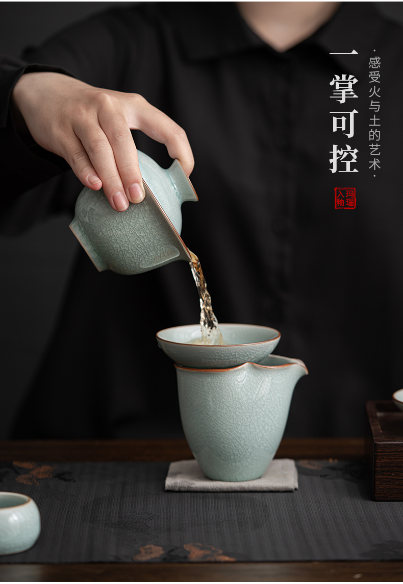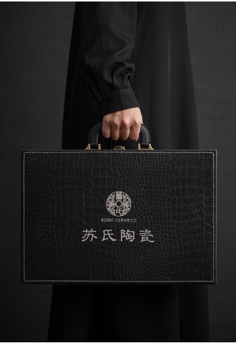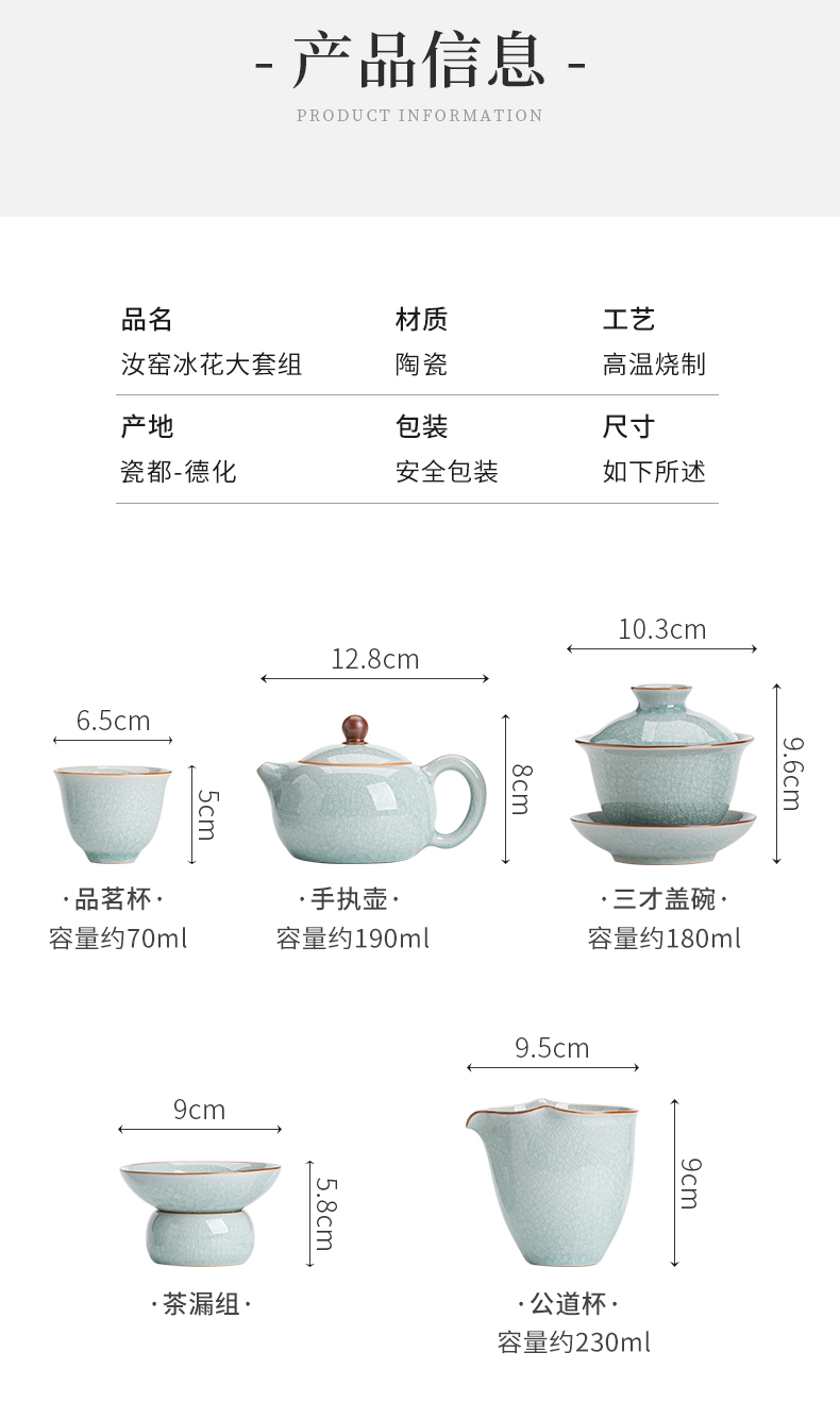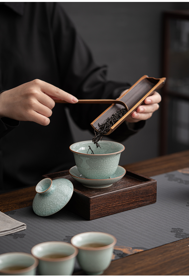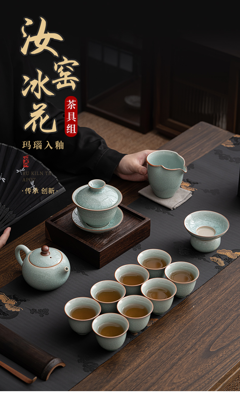 苏氏陶瓷(SUSHI CERAMICS)J0672茶具套装汝窑冰花釉盖碗茶杯12头礼盒装(单位:套) 蓝