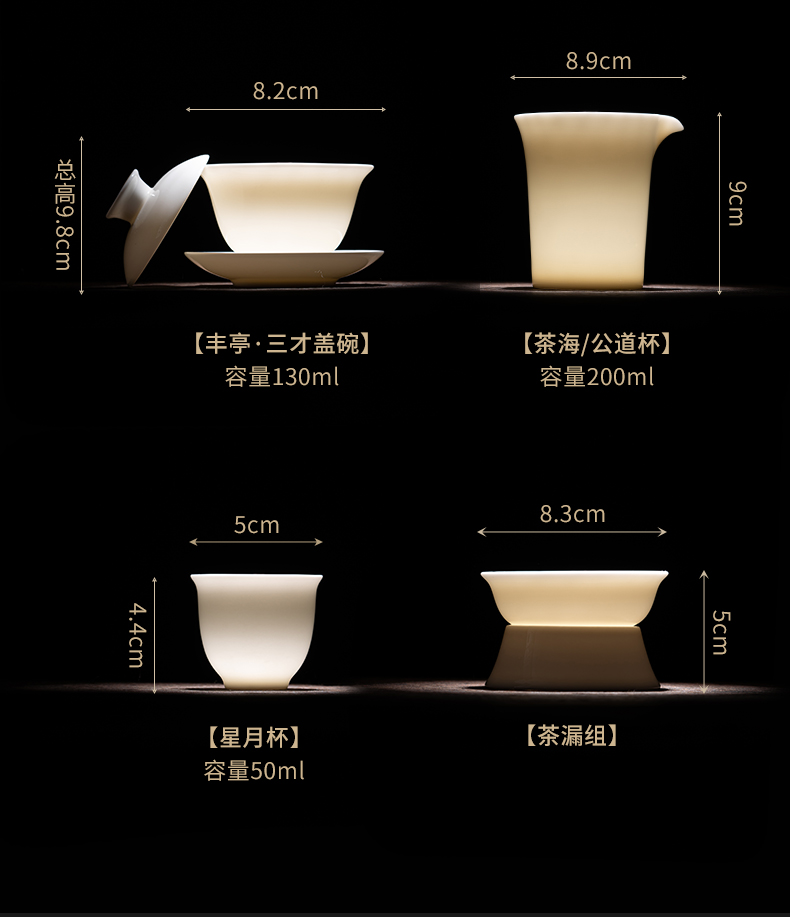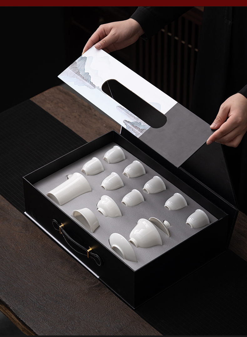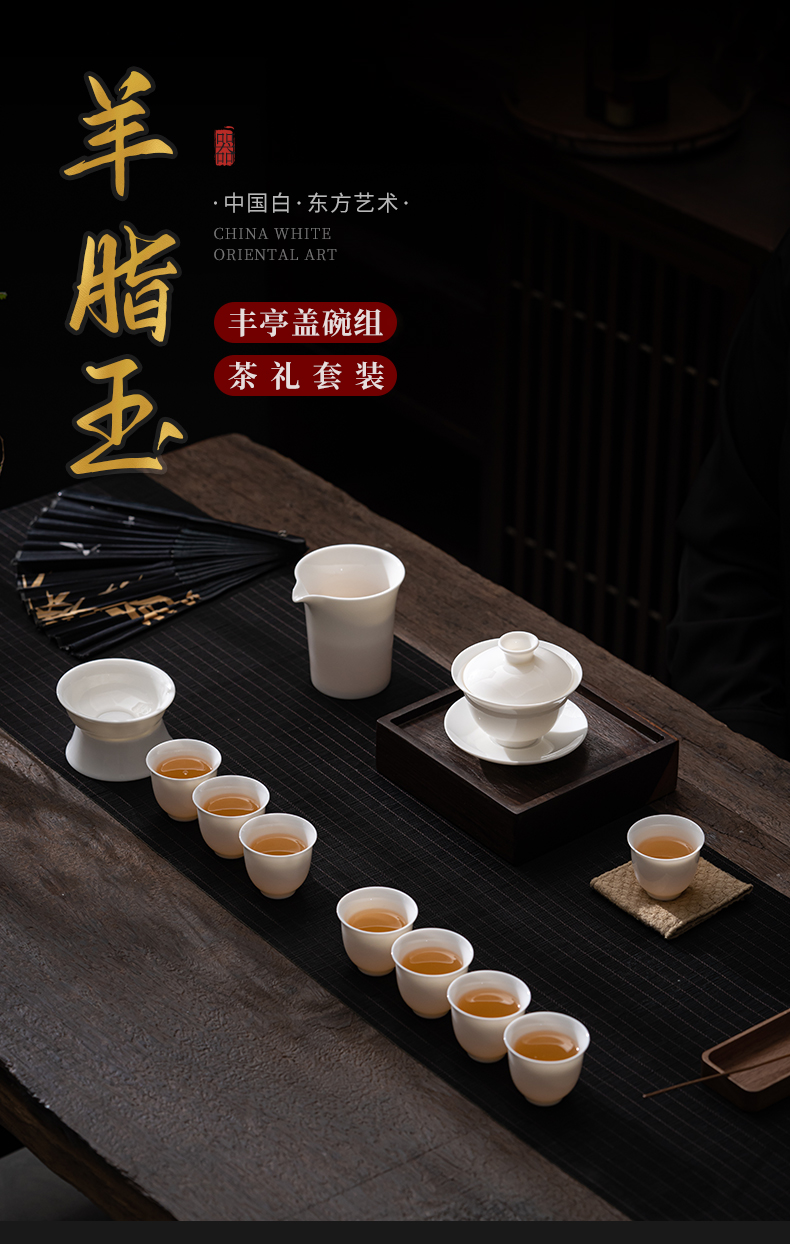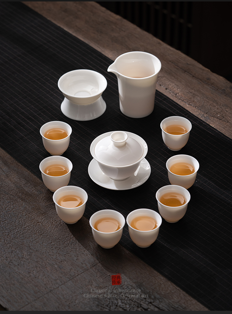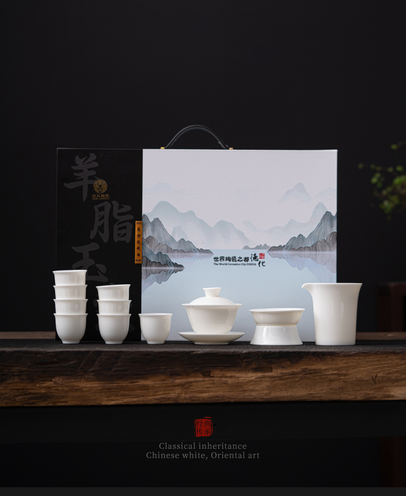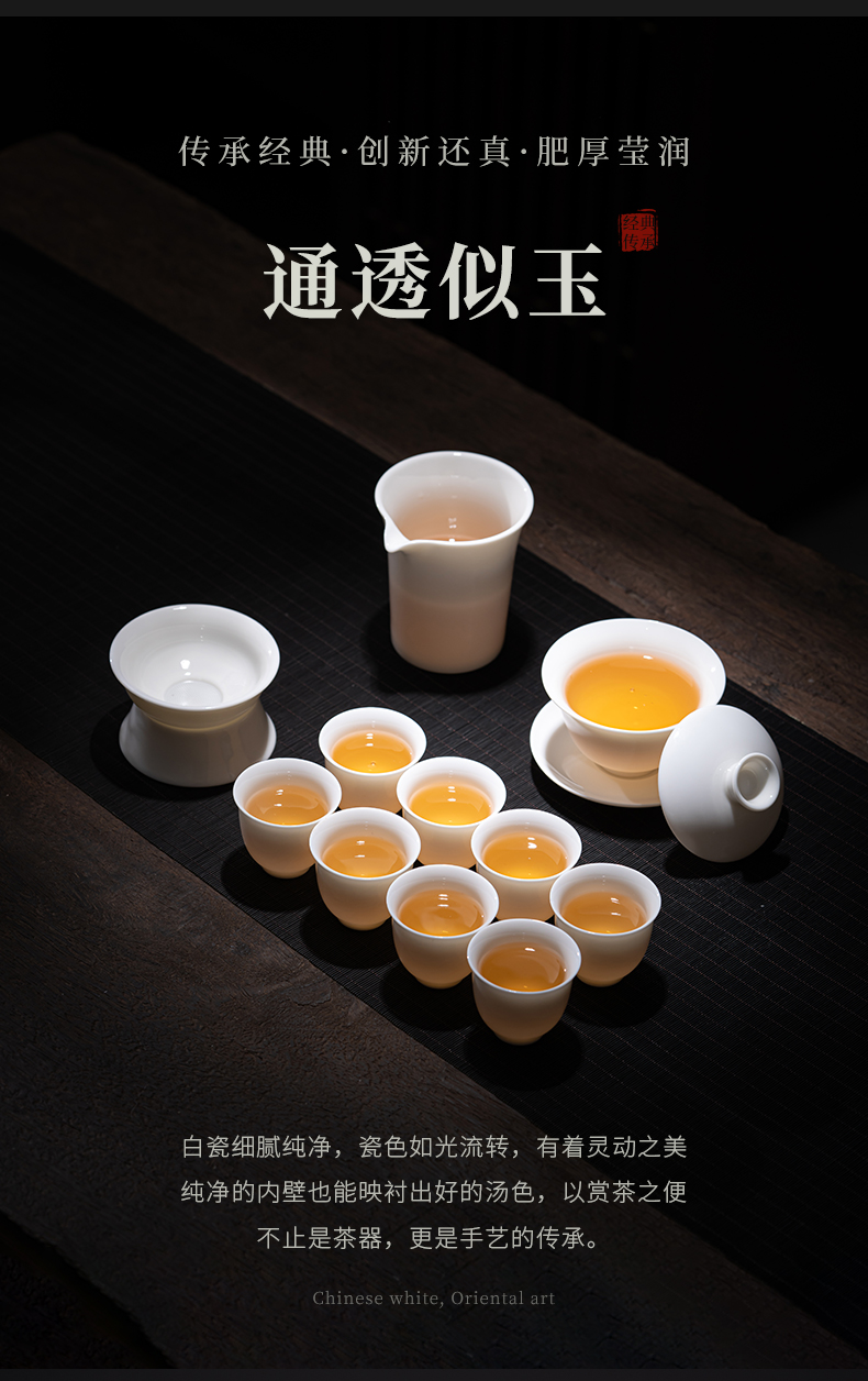 苏氏陶瓷(SUSHI CERAMICS)J0879茶具套装羊脂玉瓷丰亭11头礼盒装(单位:套) 白色