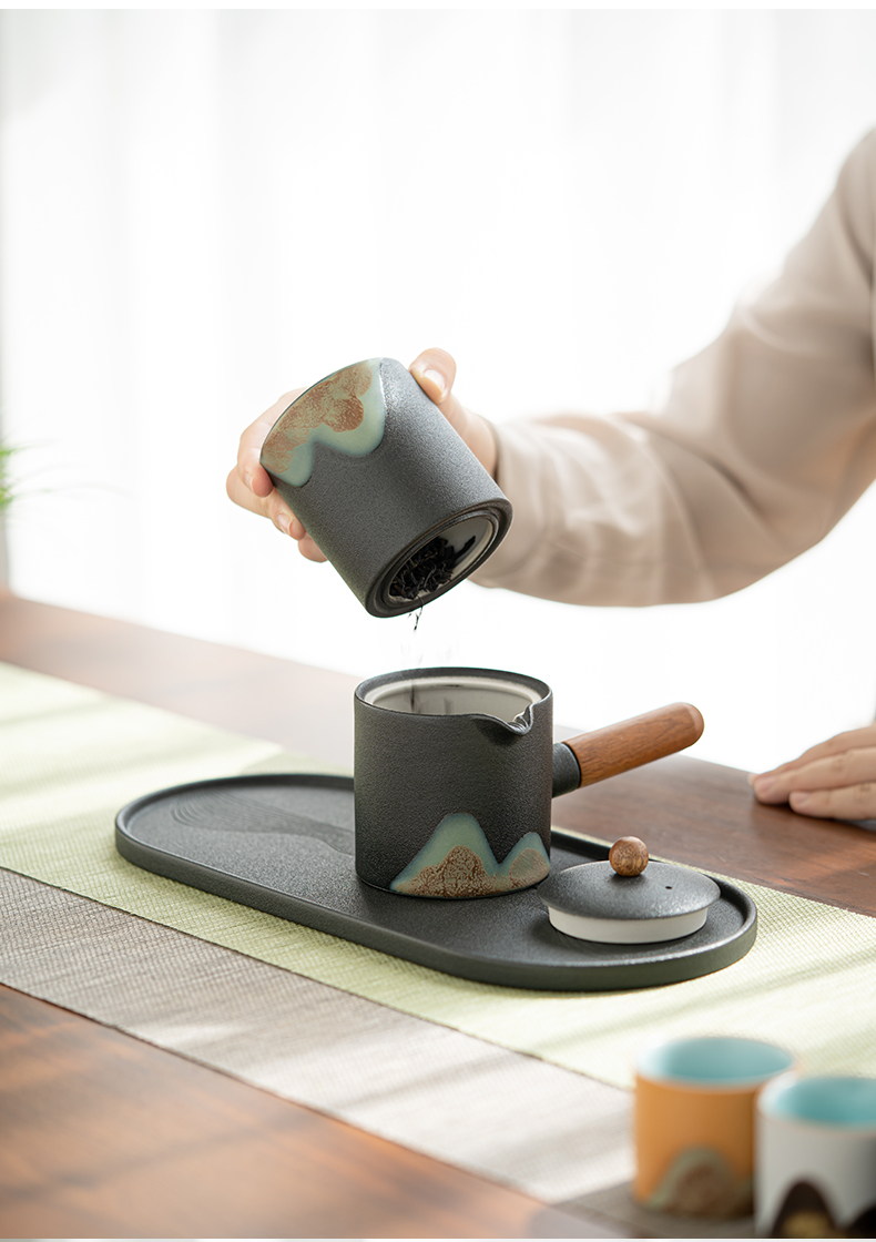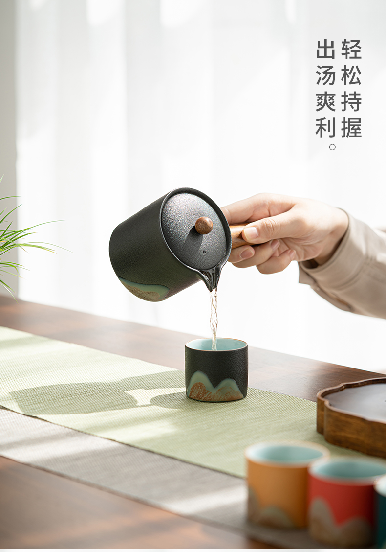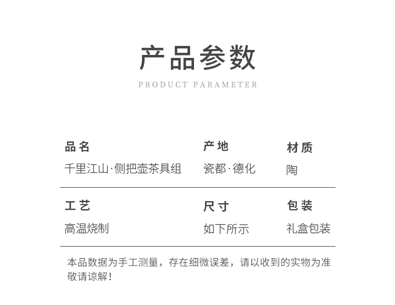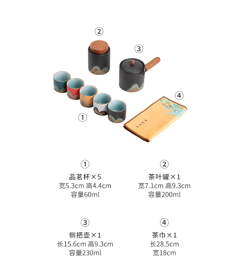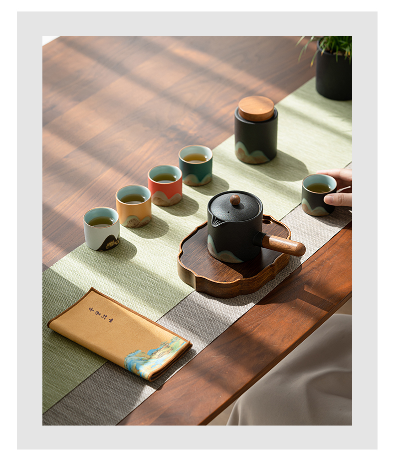 苏氏陶瓷(SUSHI CERAMICS)J0924釉画彩千里江山侧把壶五色杯礼盒装(单位:套) 混色