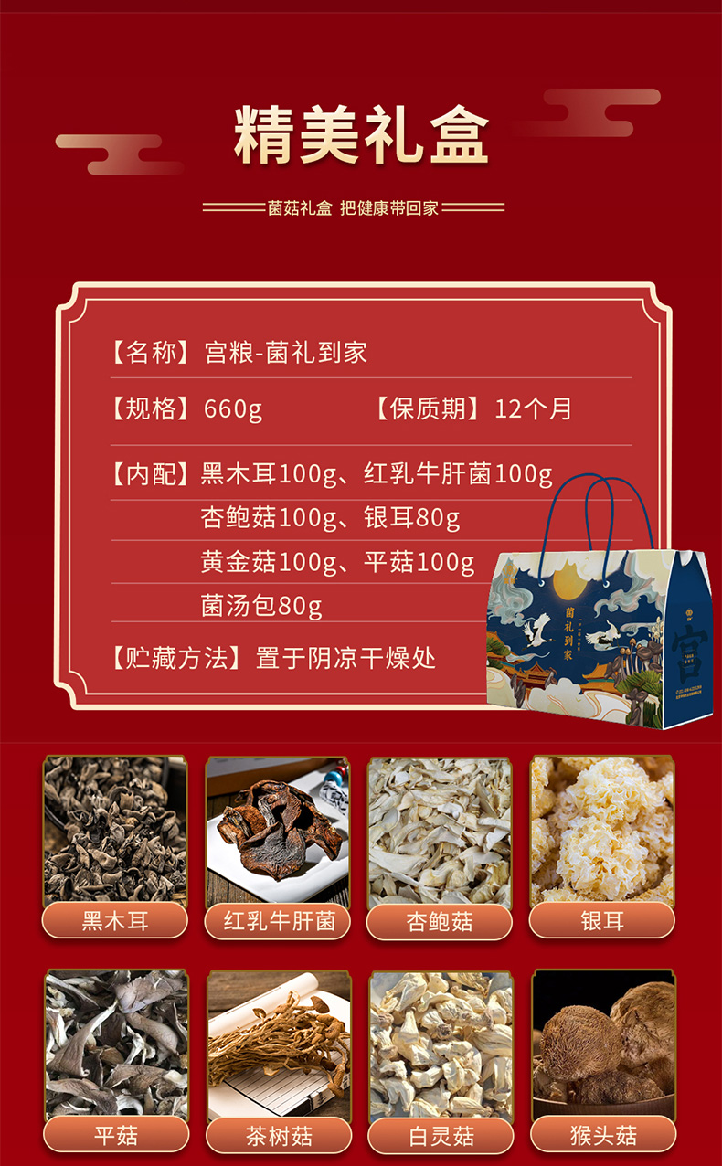 宫粮 南北干货礼盒山珍干菌食用菌菇菌送礼组合大礼包 菌礼到家660g 灰蓝色