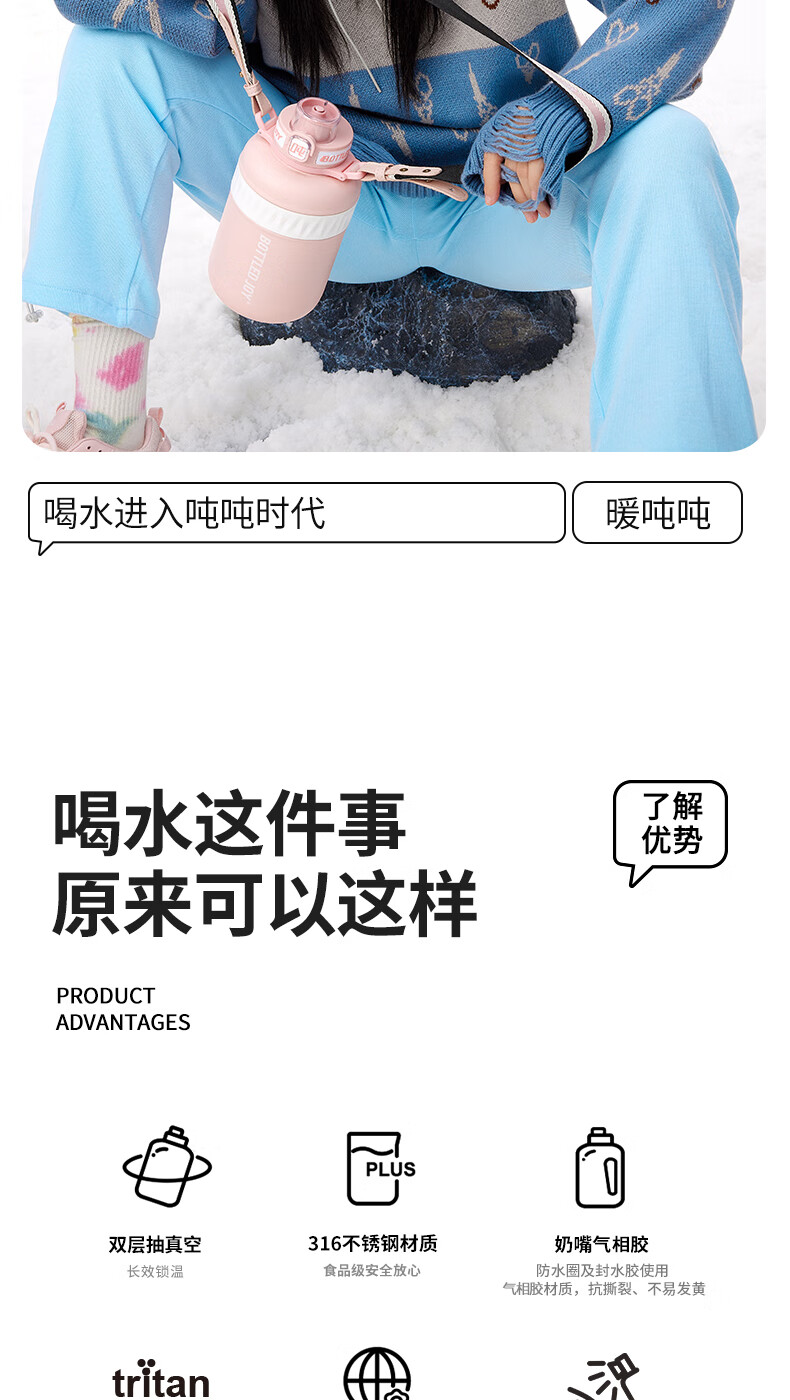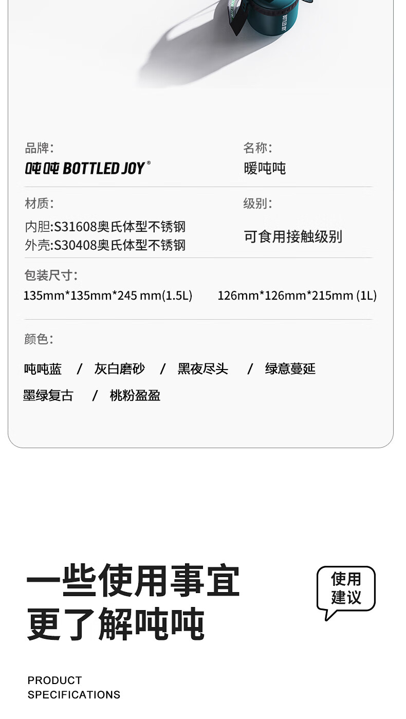 BOTTLED JOY暖吨吨SUS316 保温杯 1000ml 不锈钢316/D15(单位:个) 黑夜尽头