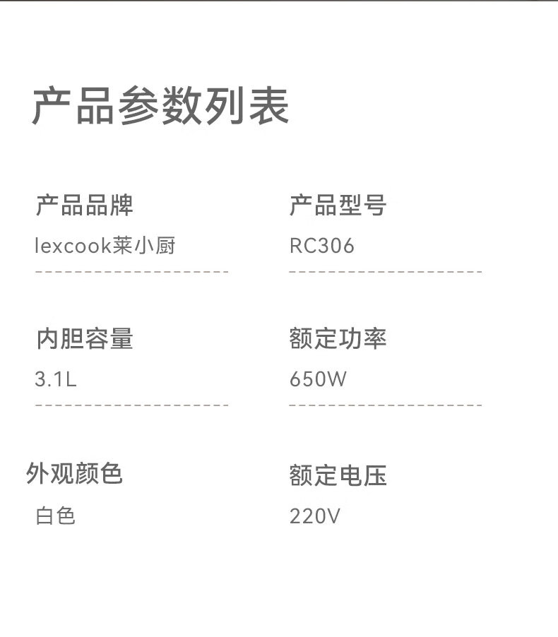 莱小厨(Lexcook)电饭煲RC306(单位:台) 白色