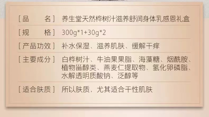 养生堂天然桦树汁滋养舒润身体乳 300g 黄色(单位:瓶) 香槟黄