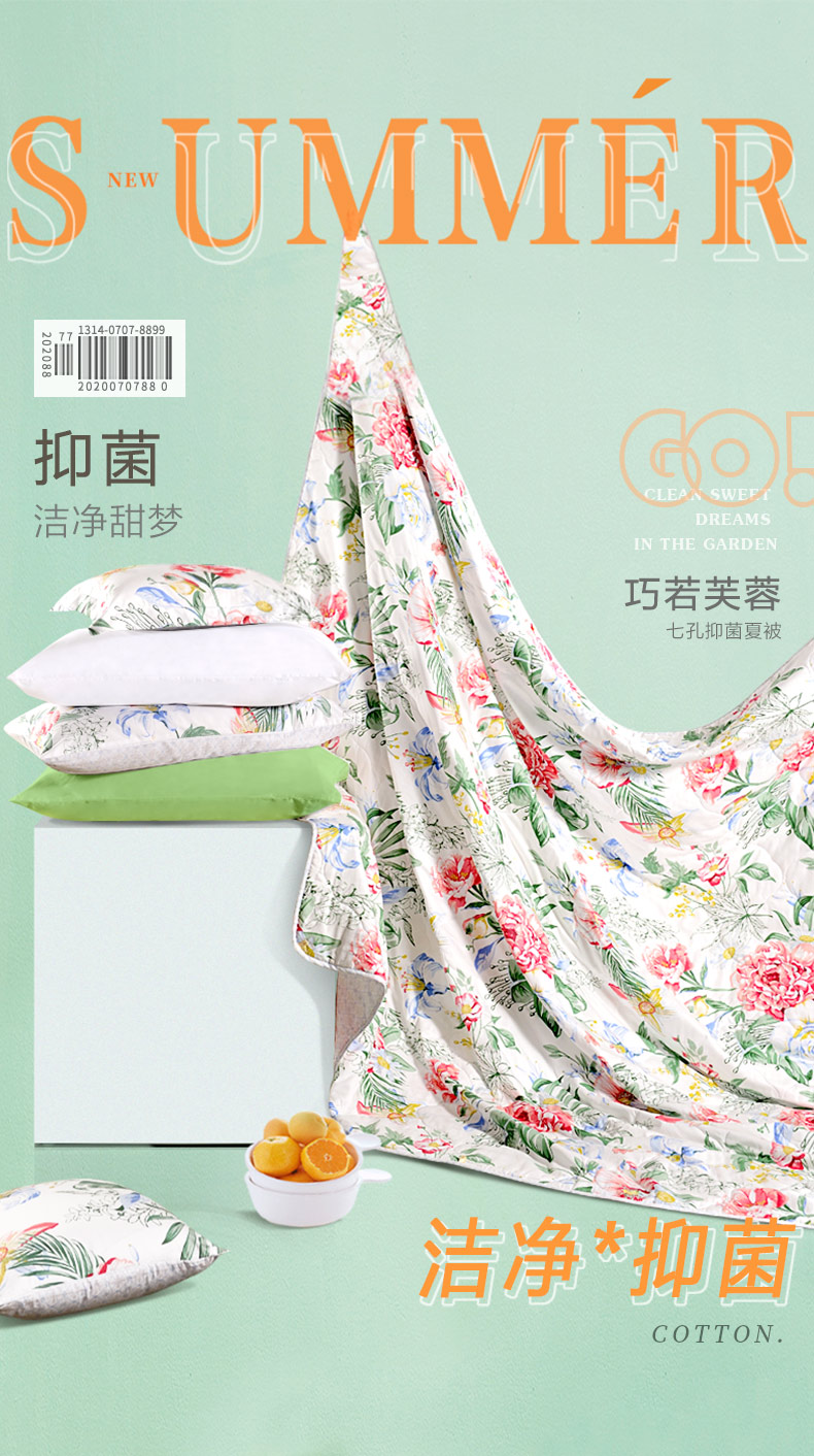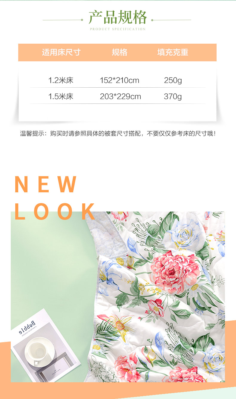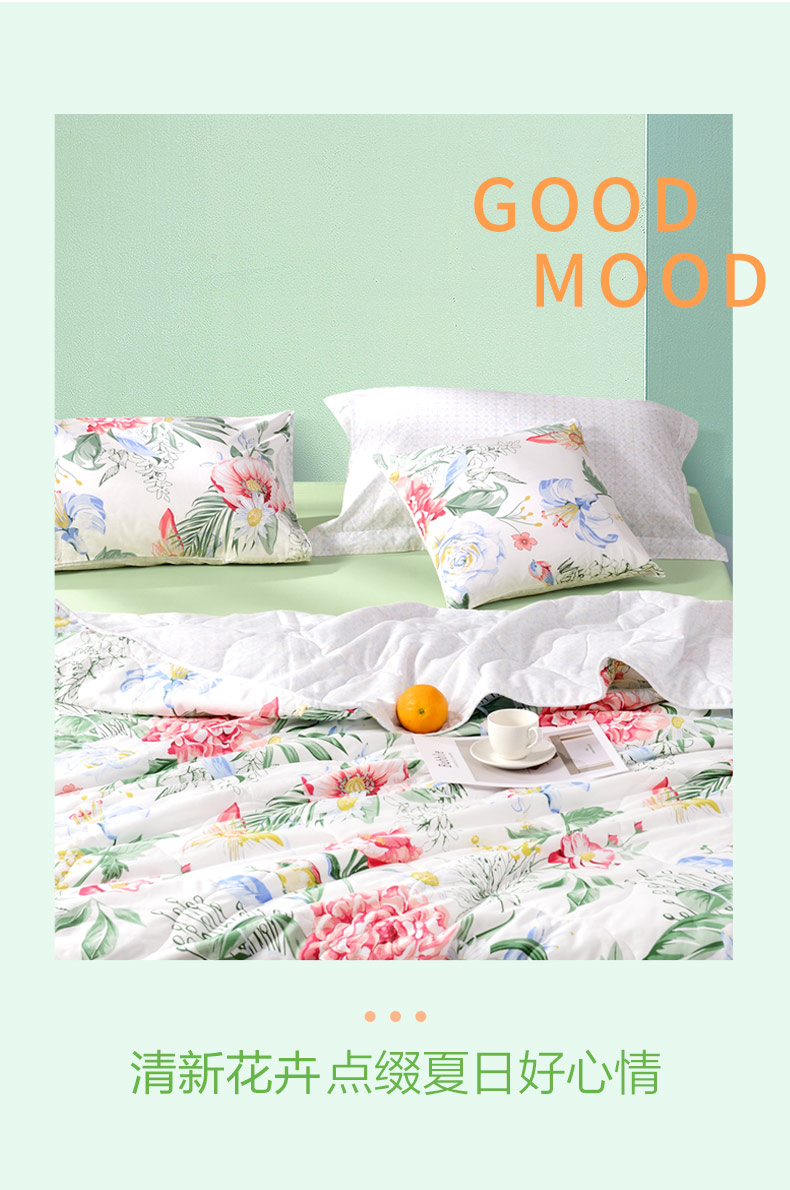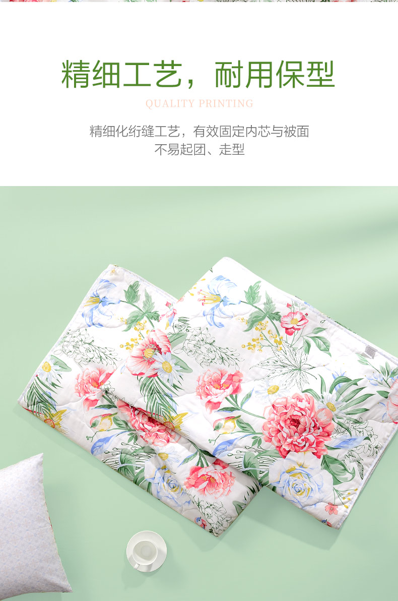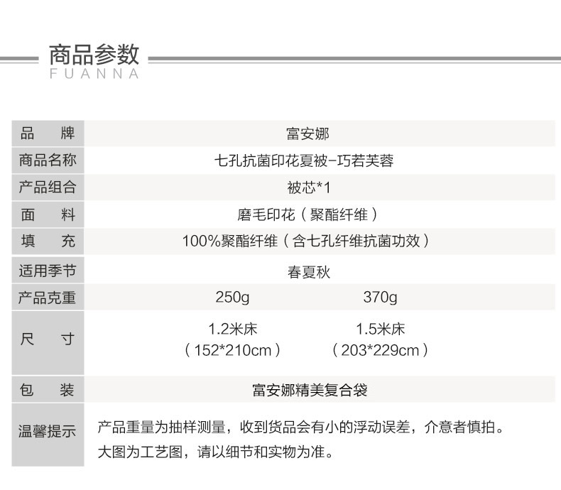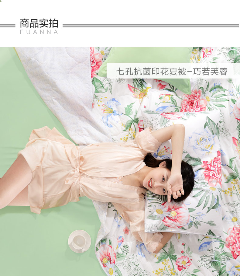 富安娜(FUANNA)清七孔抗菌印花夏被-巧若芙蓉203*229cm(370g)(单位:床) 花色