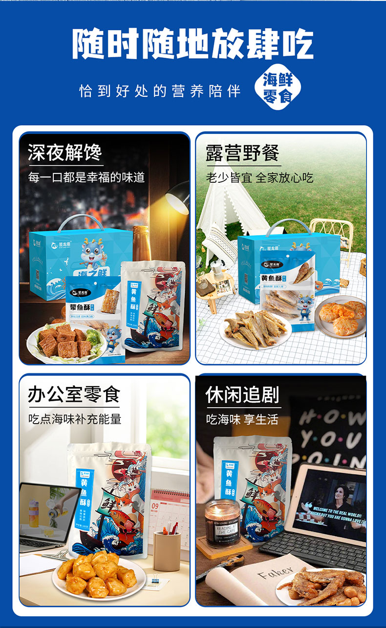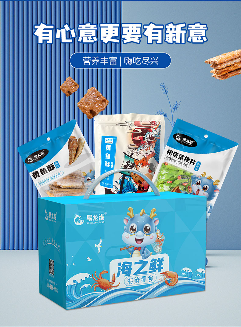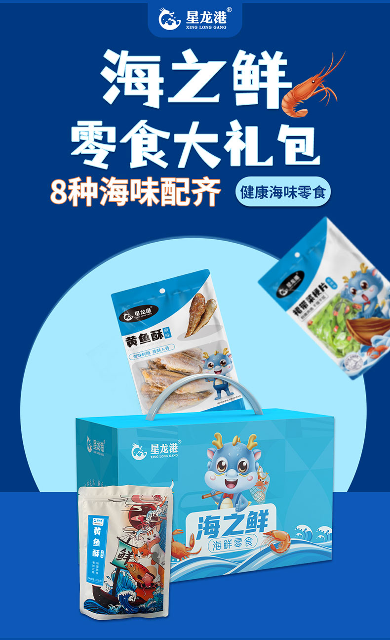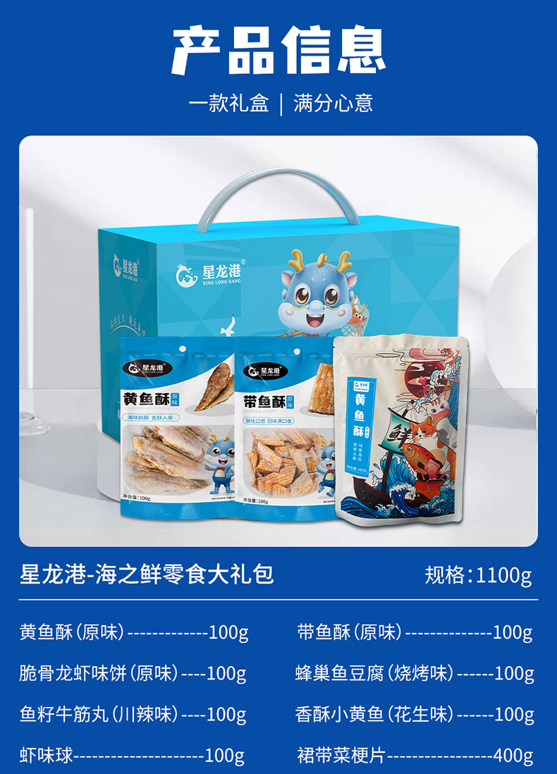 星龙港 海鲜零食大礼包 即食海鲜零食 零食礼包礼品 海之鲜零食大礼包 1.1kg 水蓝色