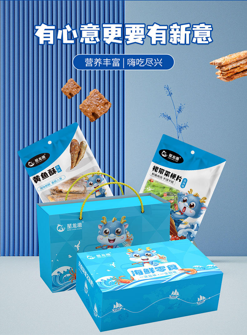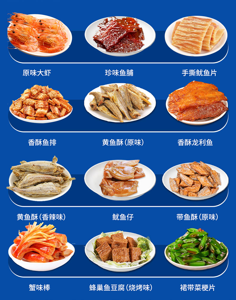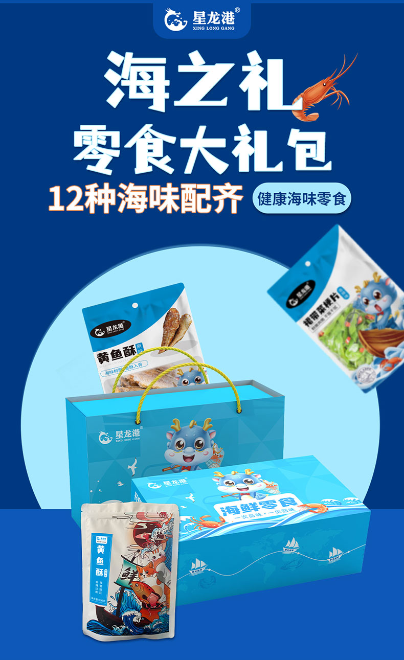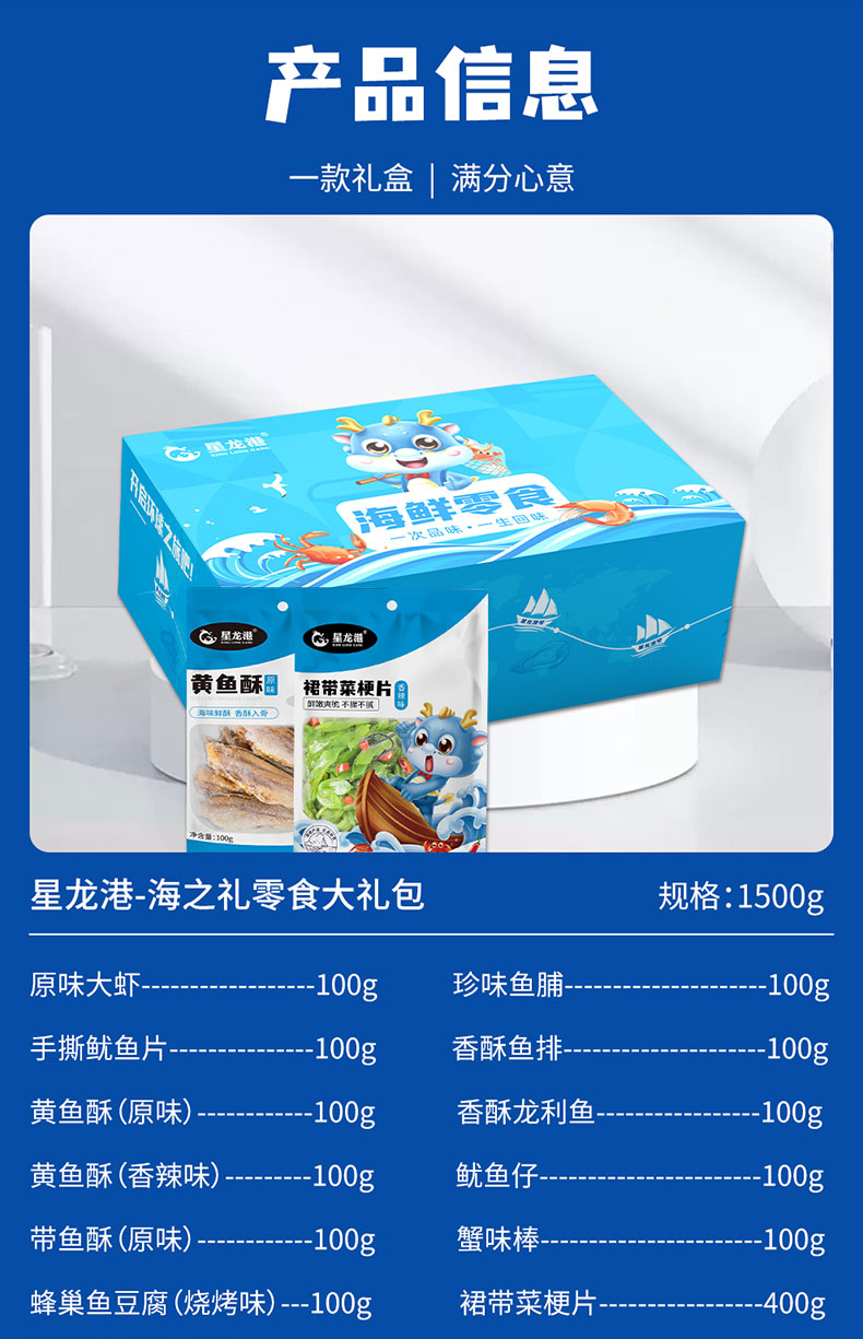 星龙港 海鲜零食大礼包 即食海鲜零食 零食礼包礼品 海之礼零食大礼包 1.5kg 水蓝色