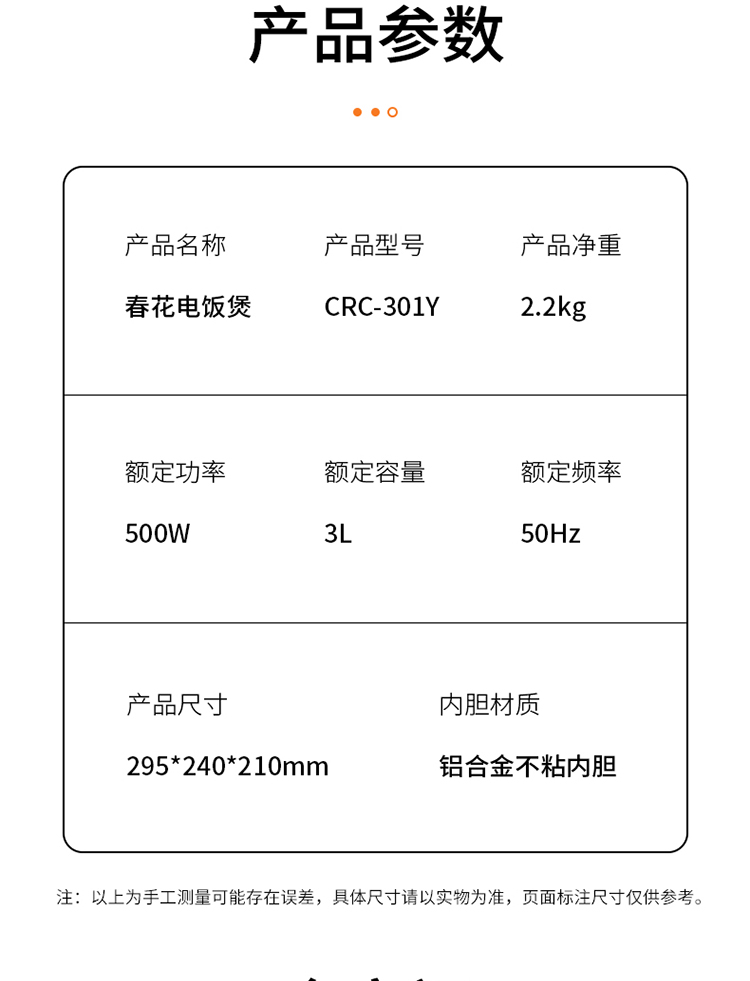 春花 CRC-301Y 3L大容量电饭煲(单位:台) 米色