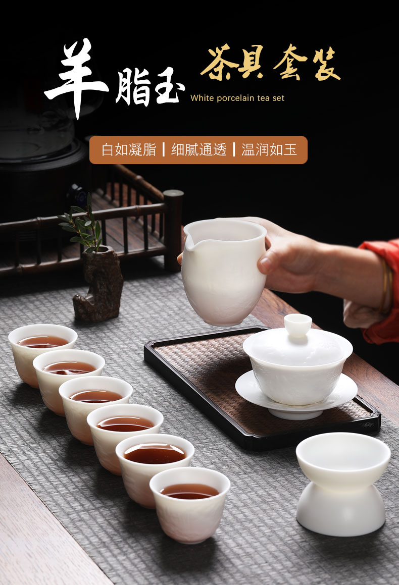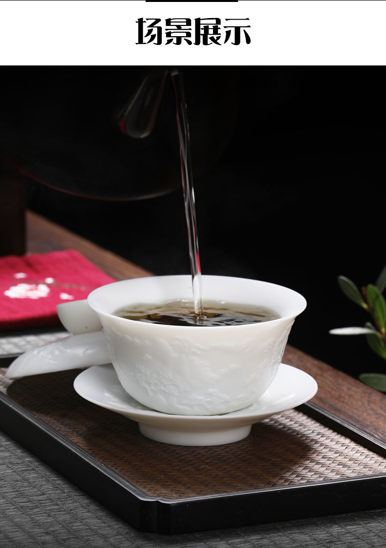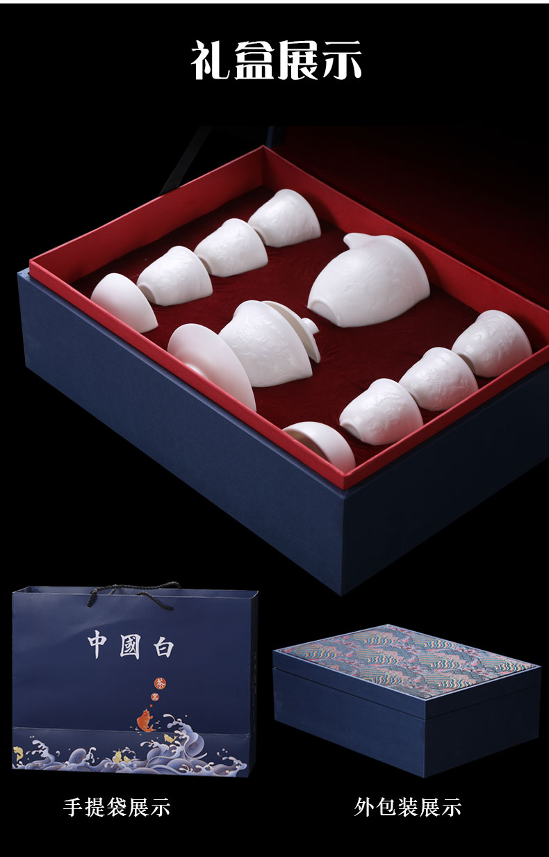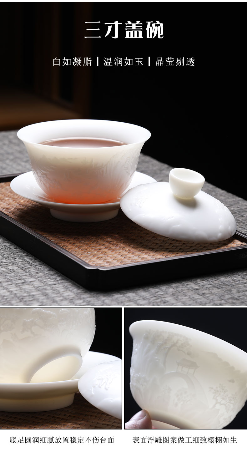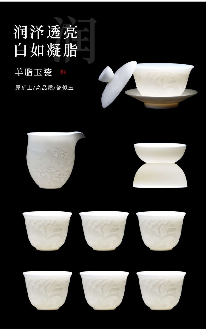 MULTIPOTENT元青 YQ-CZE-ZTCJ-201905-01茶具套装中国白锦绣山河盖碗6杯 白色