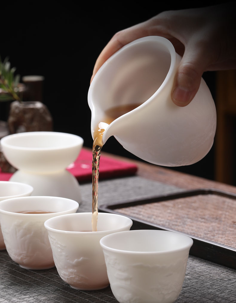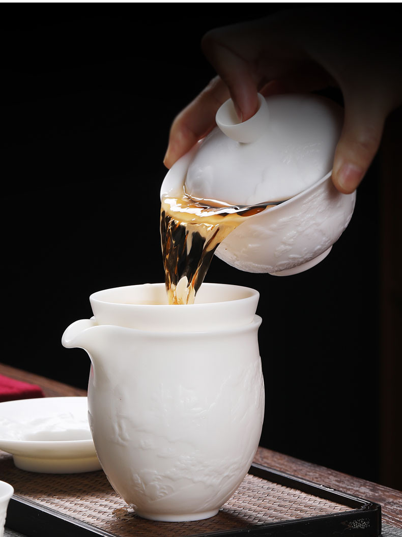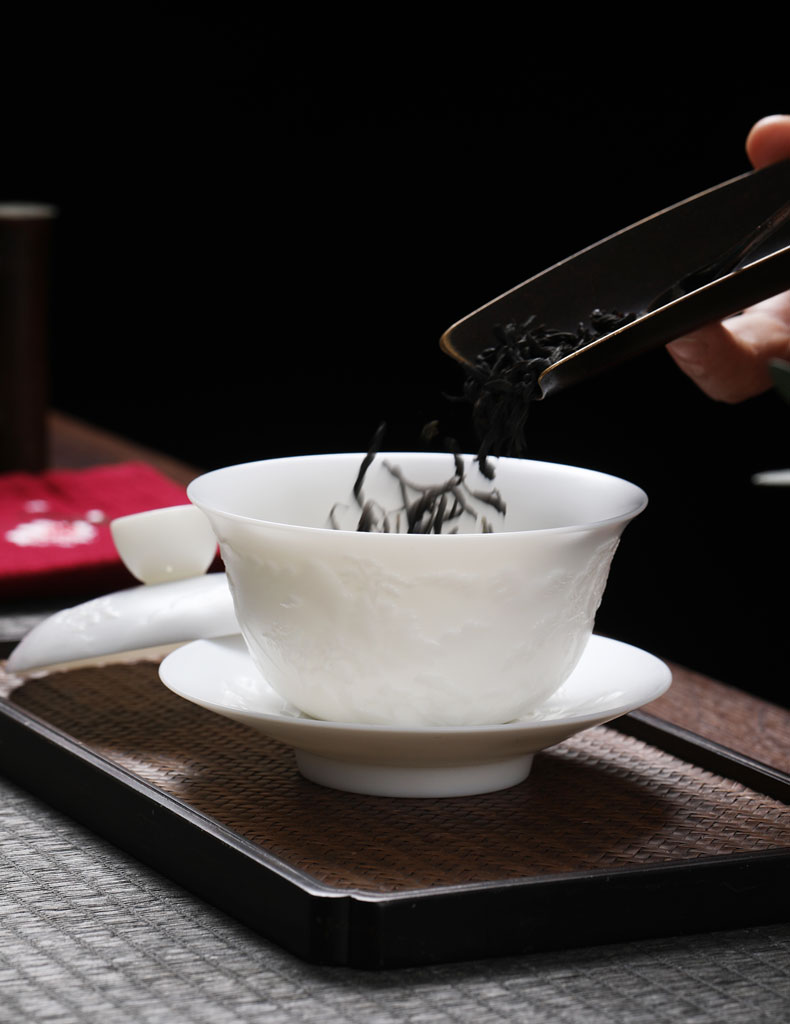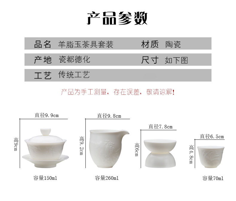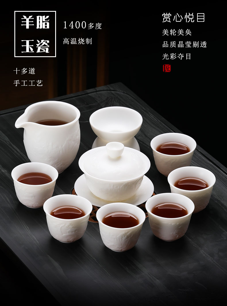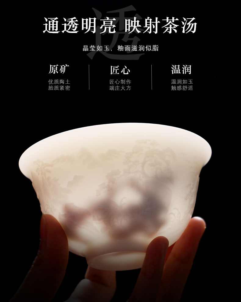 MULTIPOTENT元青 YQ-CZE-ZTCJ-201905-01茶具套装中国白锦绣山河盖碗6杯 白色