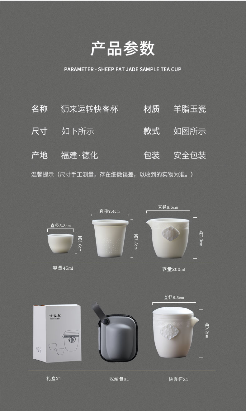 MULTIPOTENT元青YQ-FLX-CB-202109-08旅行茶具德化白瓷快客杯便携/套 白色