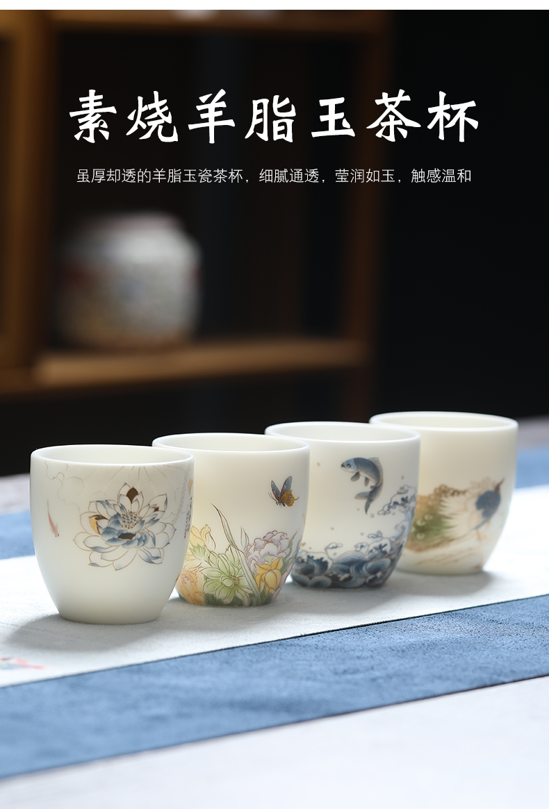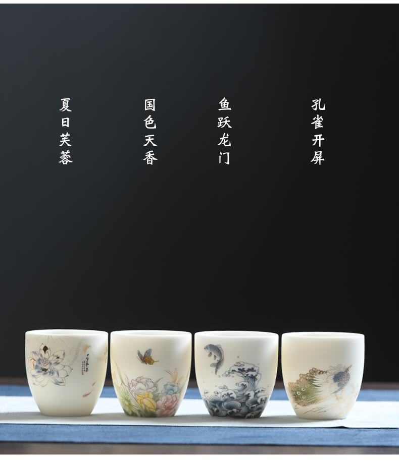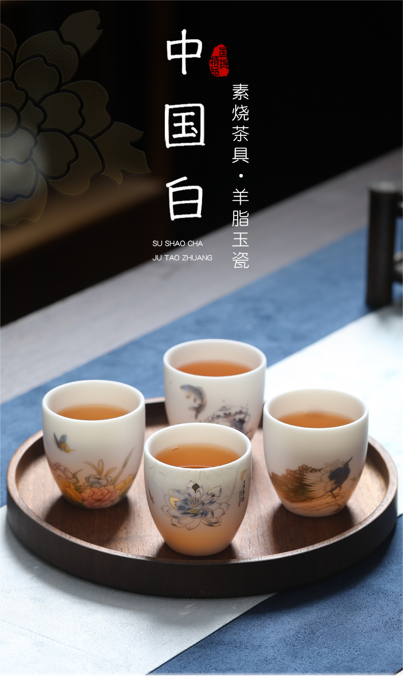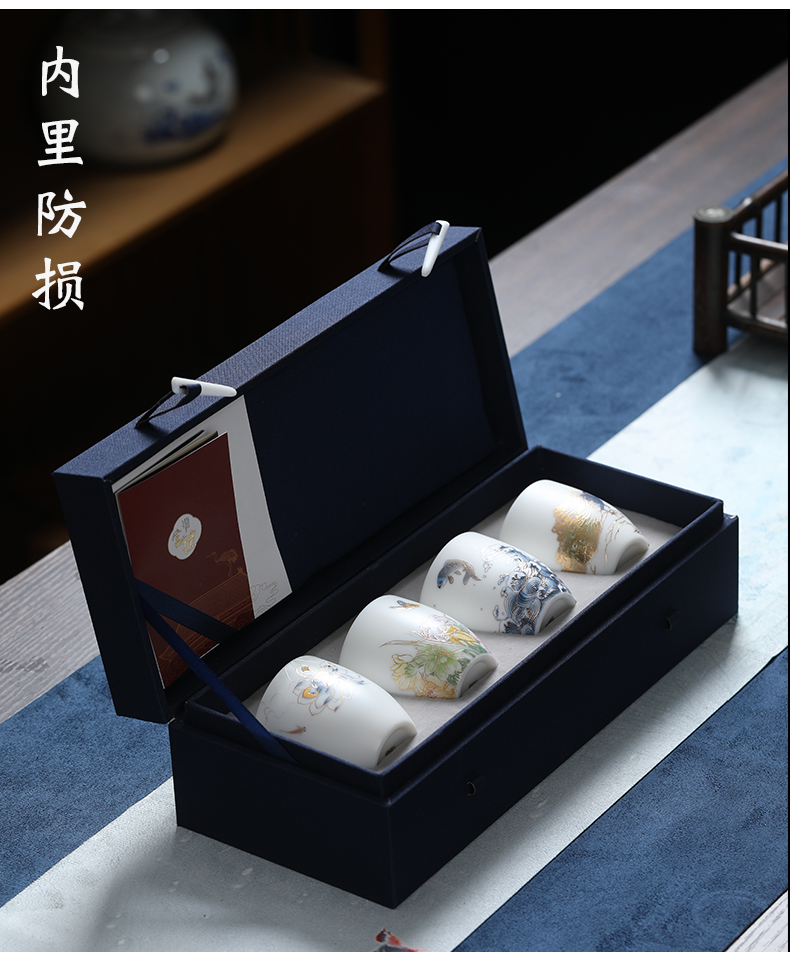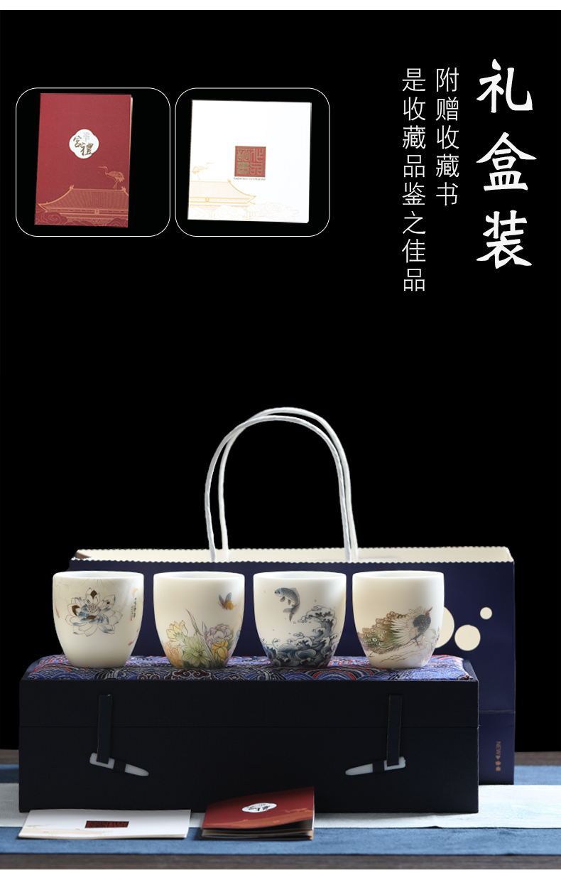 MULTIPOTENT元青YQ-RYTC-CB-202111-14茶杯白瓷纳福(富贵满堂) 4个/套 白色