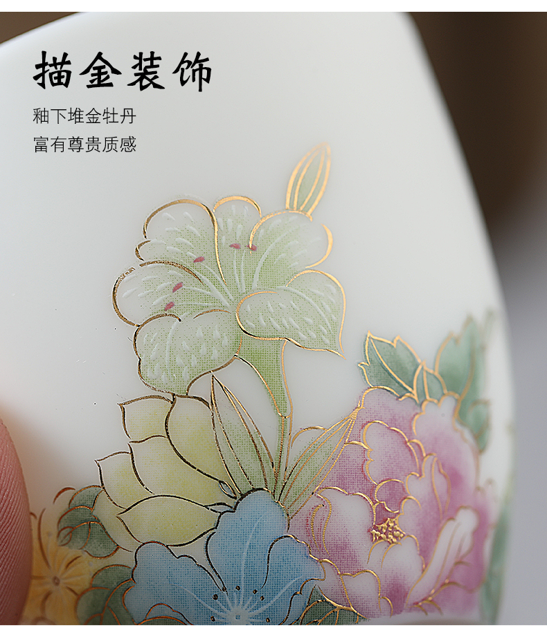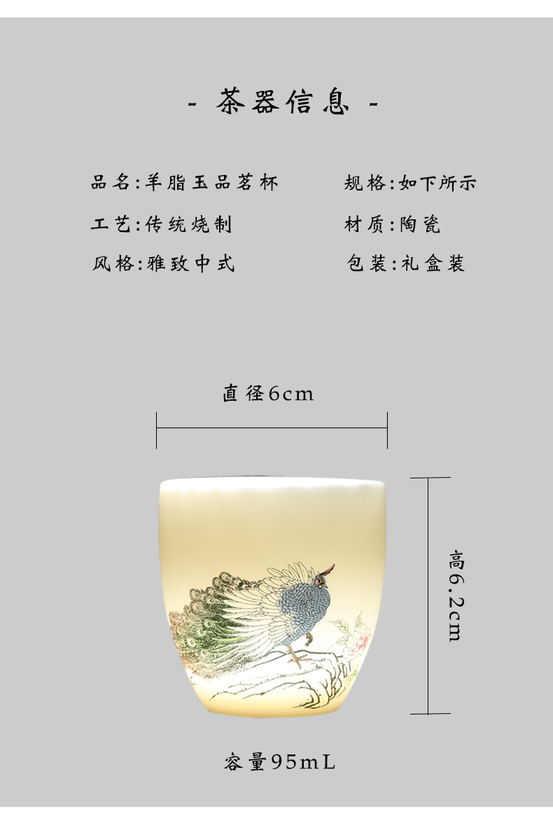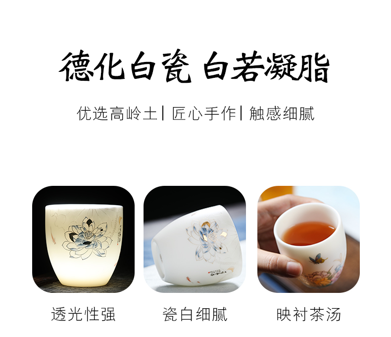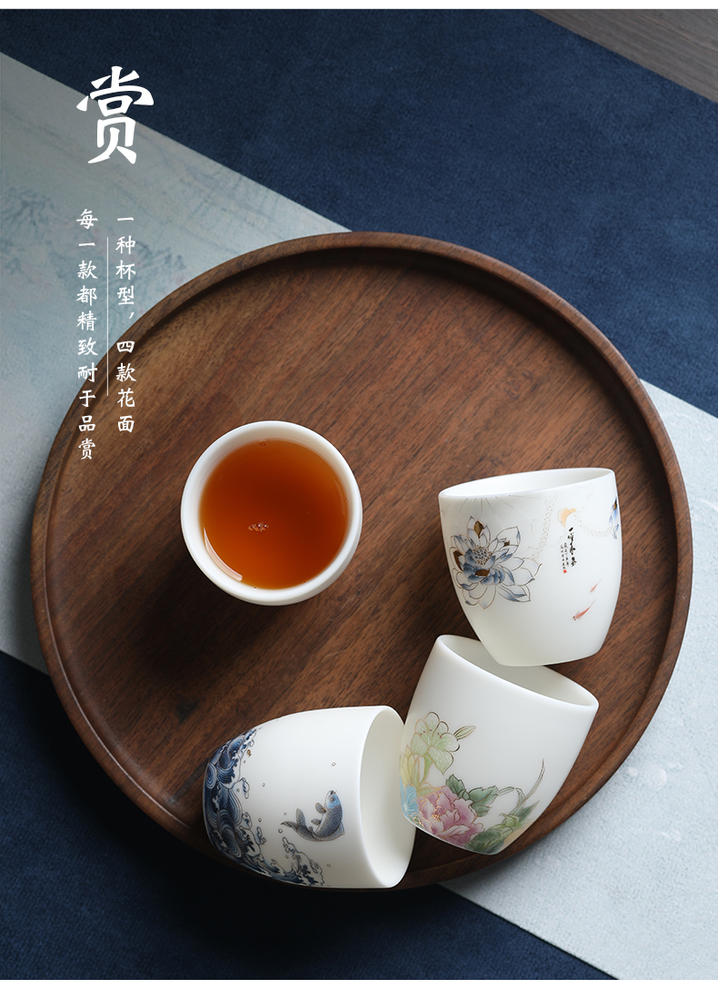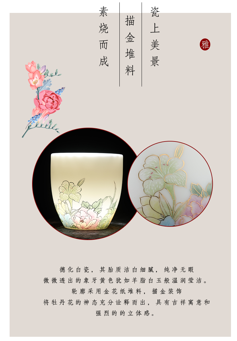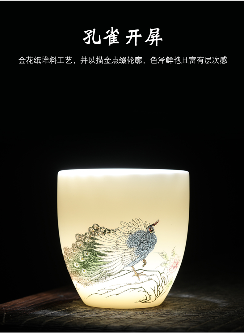MULTIPOTENT元青YQ-RYTC-CB-202111-14茶杯白瓷纳福(富贵满堂) 4个/套 白色