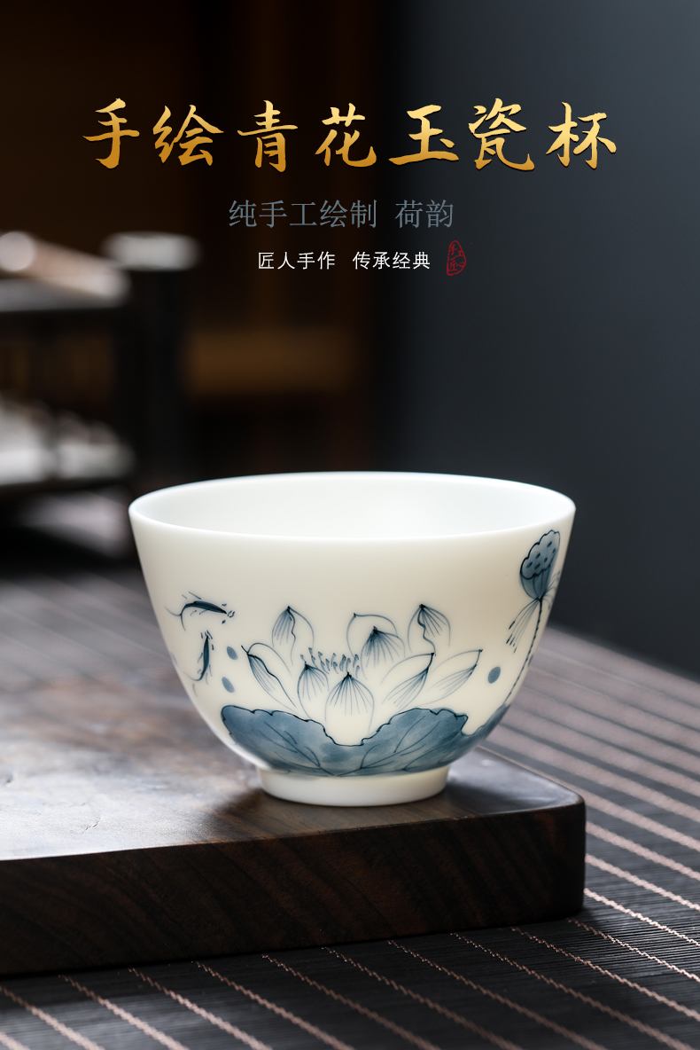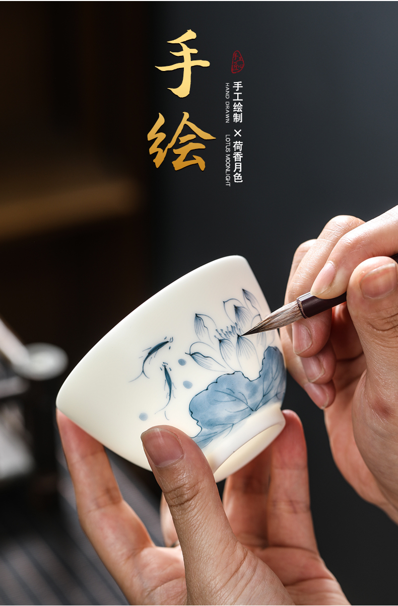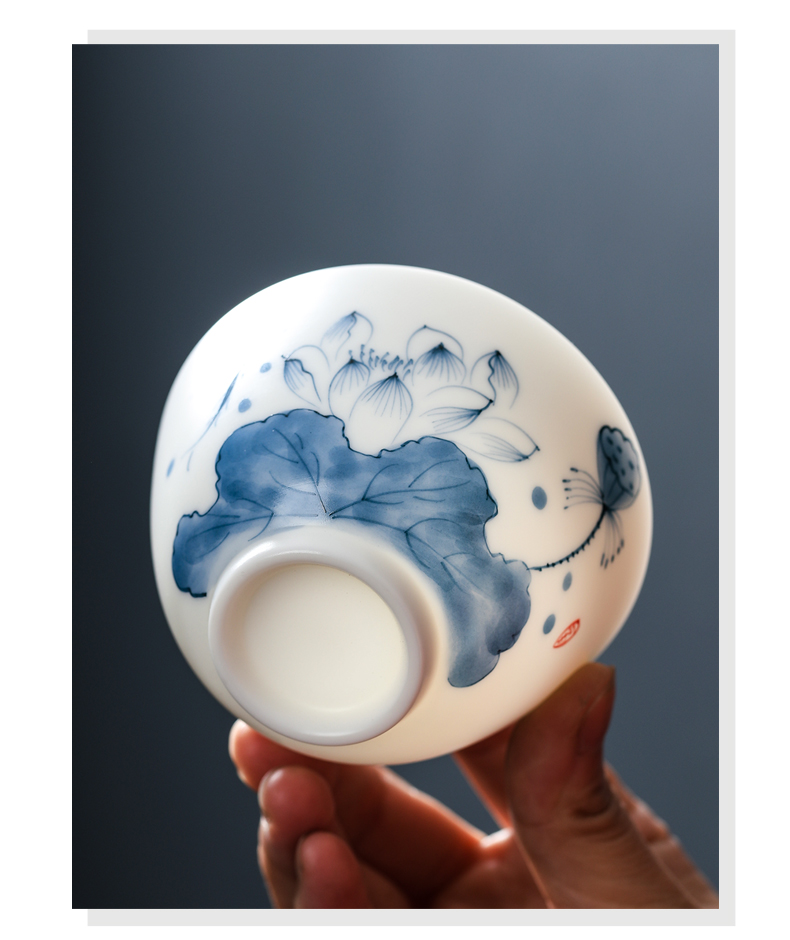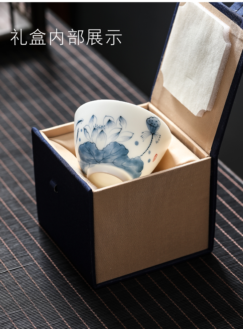 MULTIPOTENT元青 YQ-YQ-CB-202205-18茶杯手绘白瓷品茗杯辰杯-莲蓬礼盒装 白色