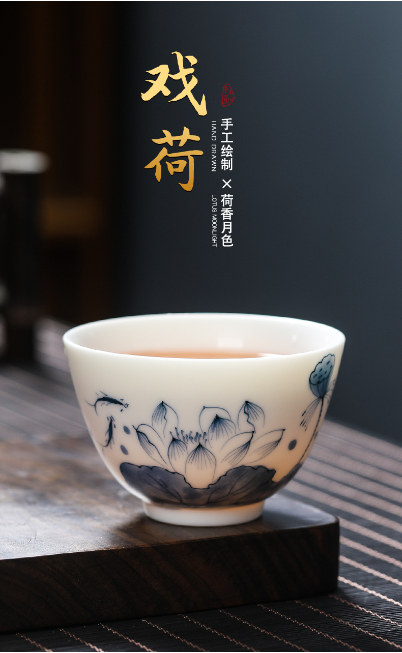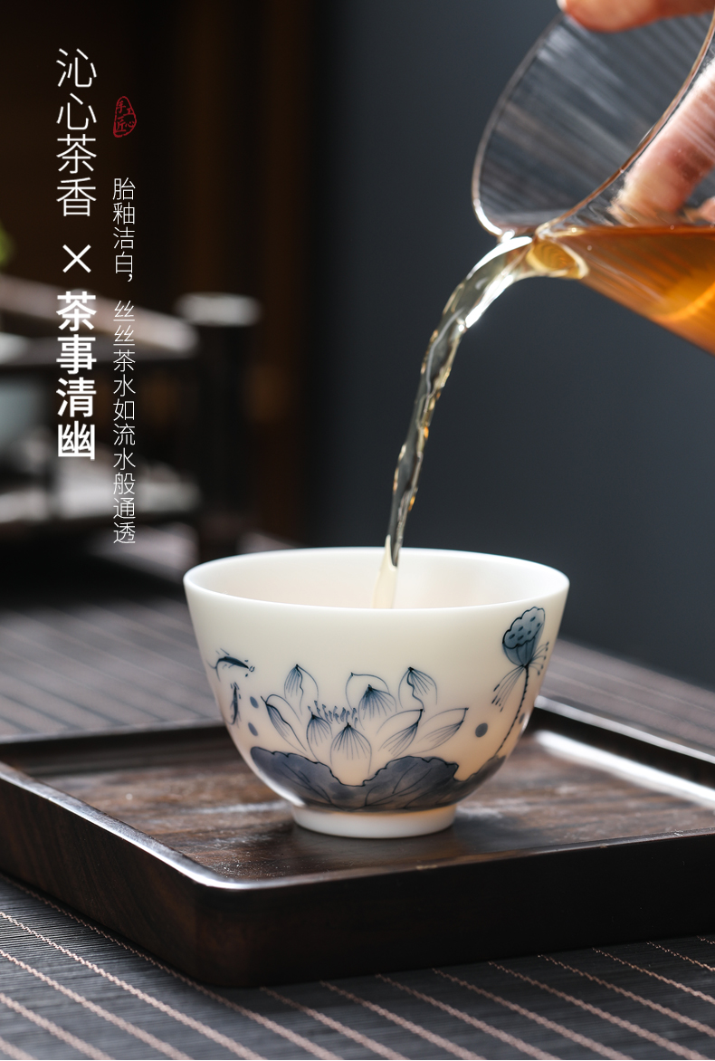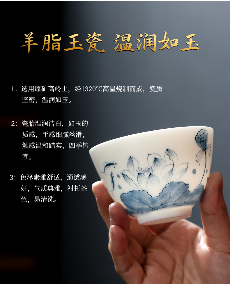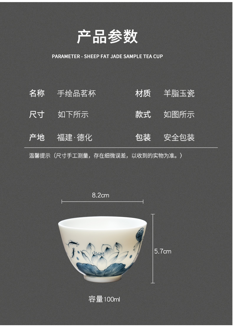 MULTIPOTENT元青 YQ-YQ-CB-202205-18茶杯手绘白瓷品茗杯辰杯-莲蓬礼盒装 白色