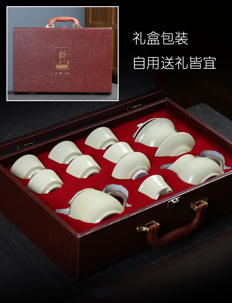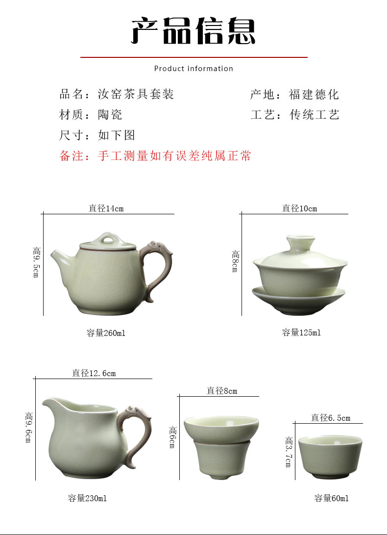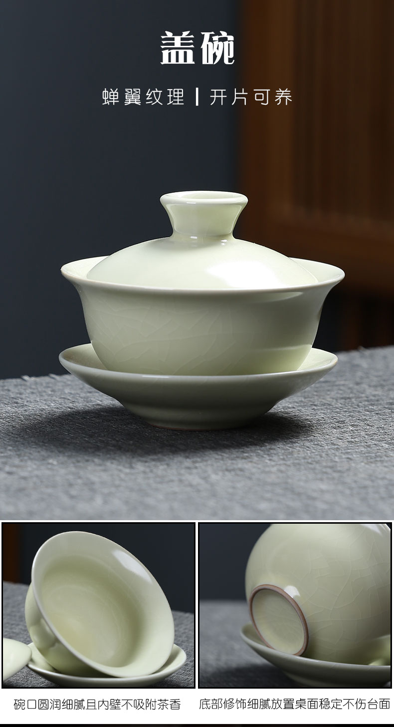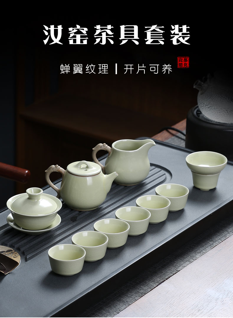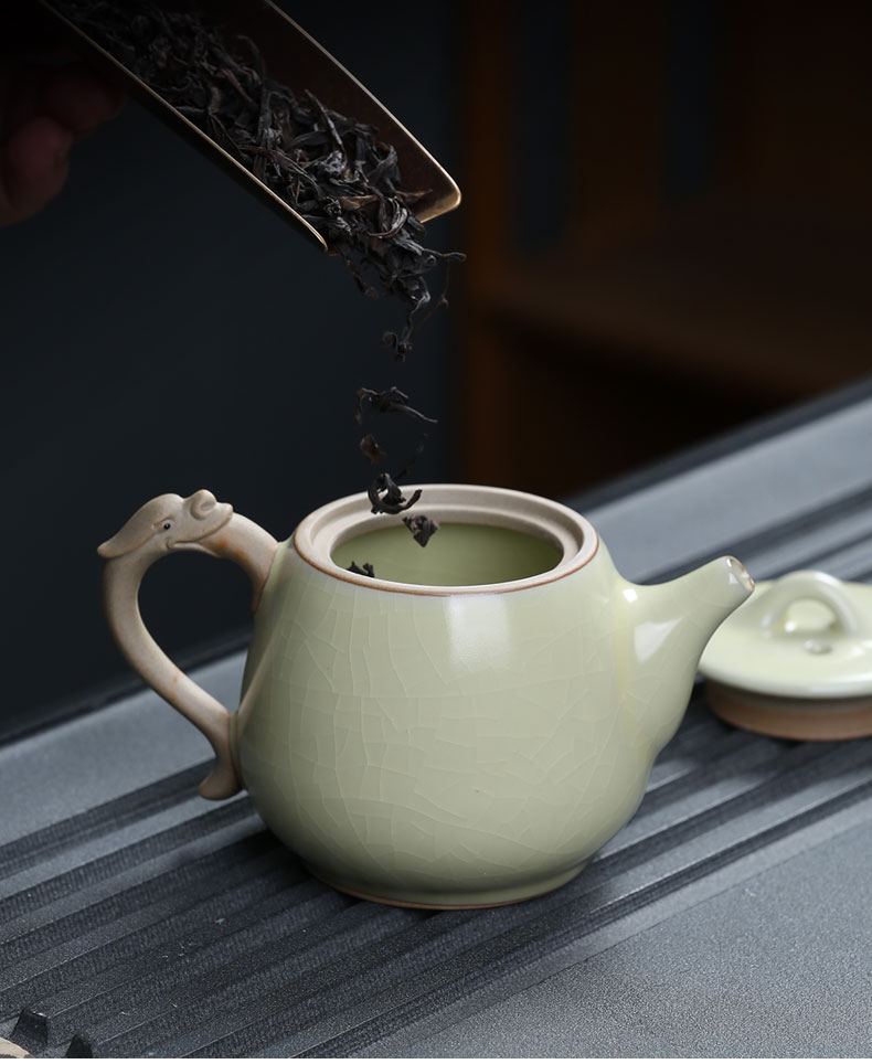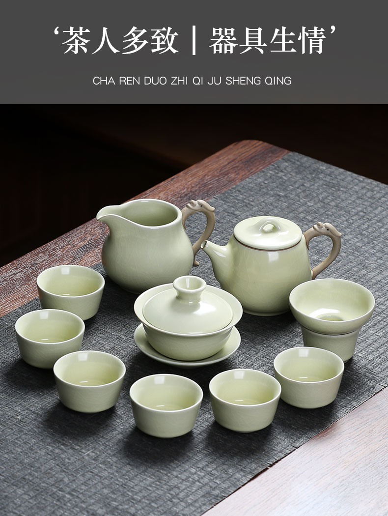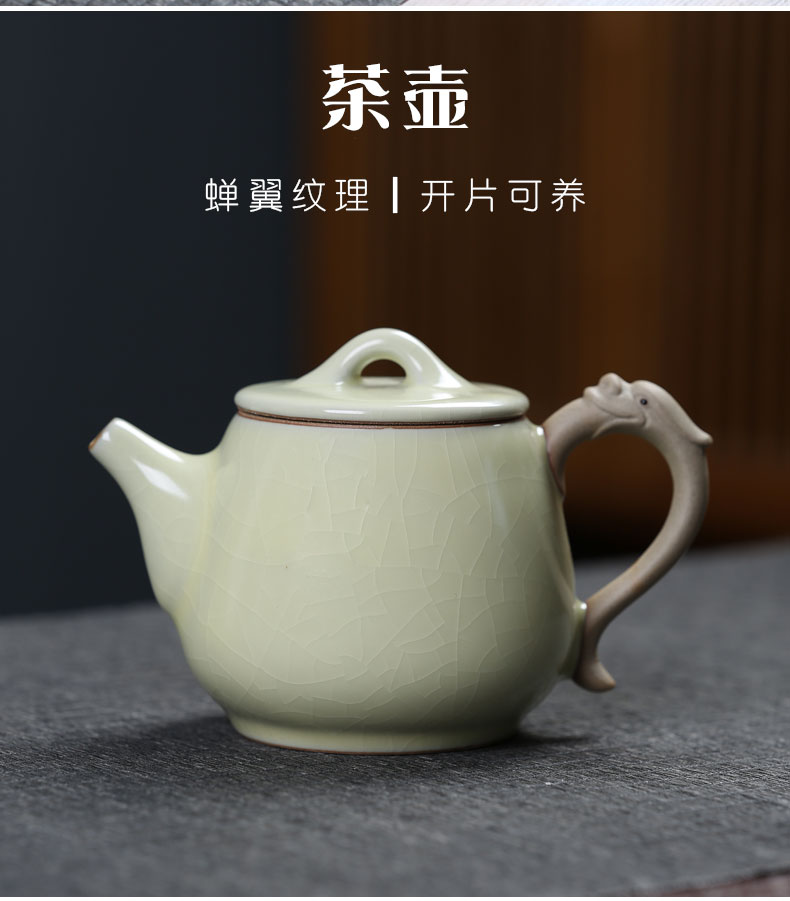 MULTIPOTENT元青 YQ-ZX-ZTCJ-202104-02茶具套装汝窑祥龙石瓢茶壶盖碗茶杯 绿色