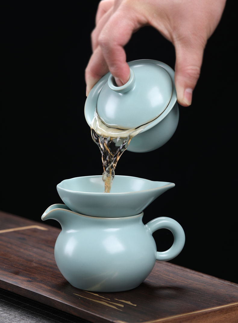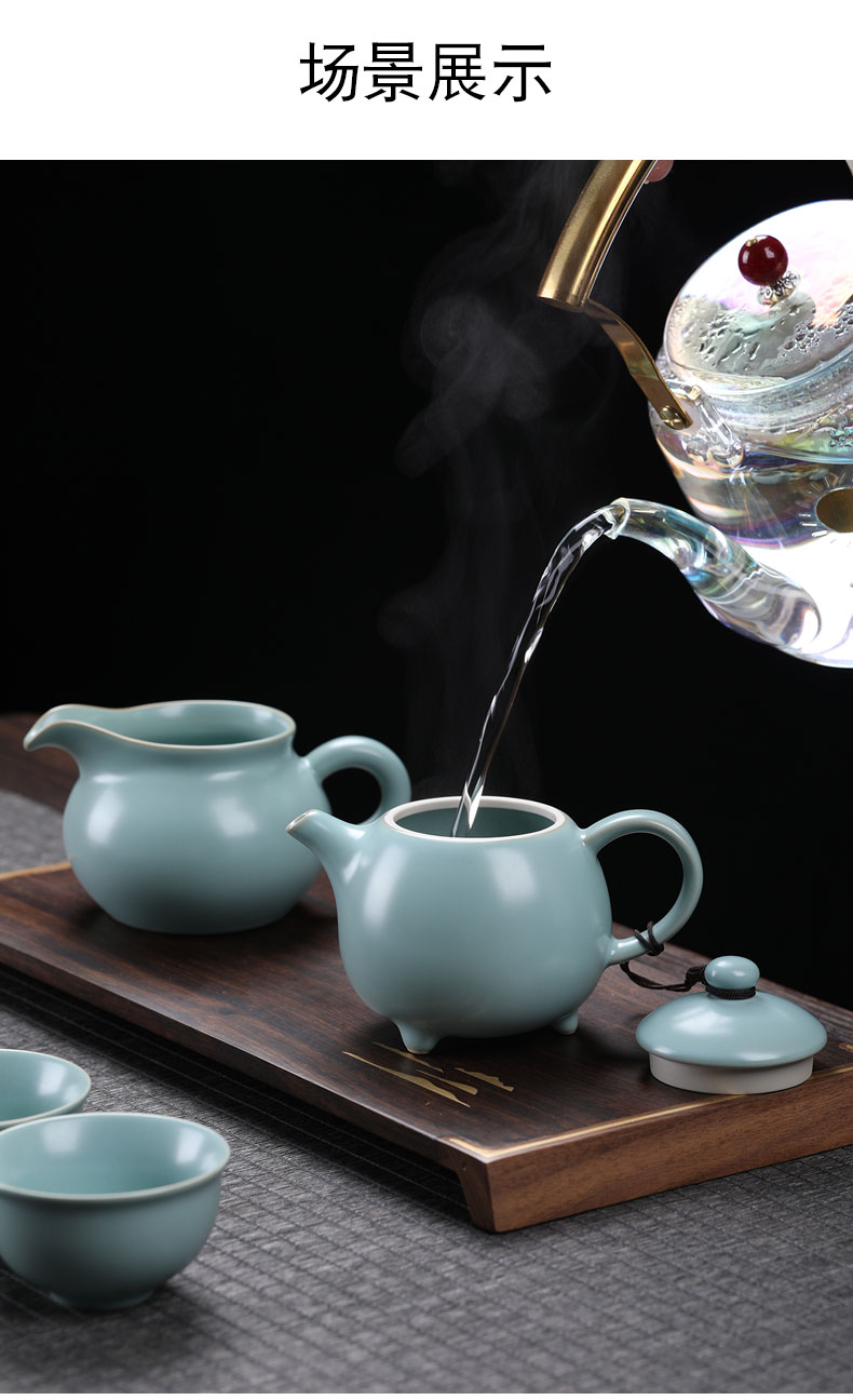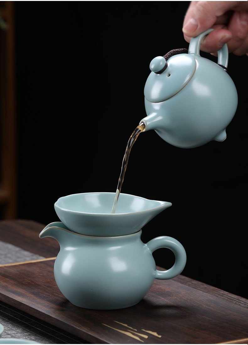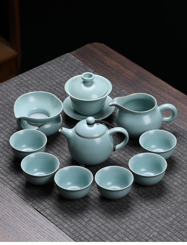 MULTIPOTENT元青 YQ-YXHZ-ZTCJ-202104-04茶具套装汝窑西施壶茶杯11头 水蓝色