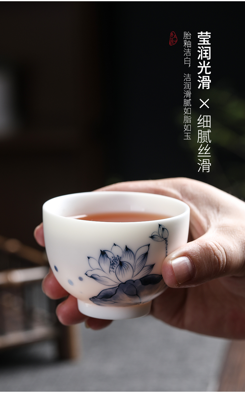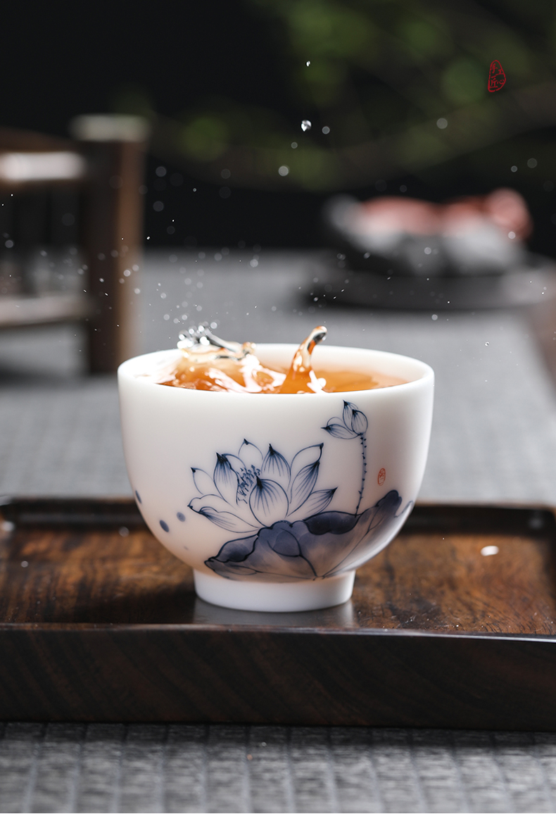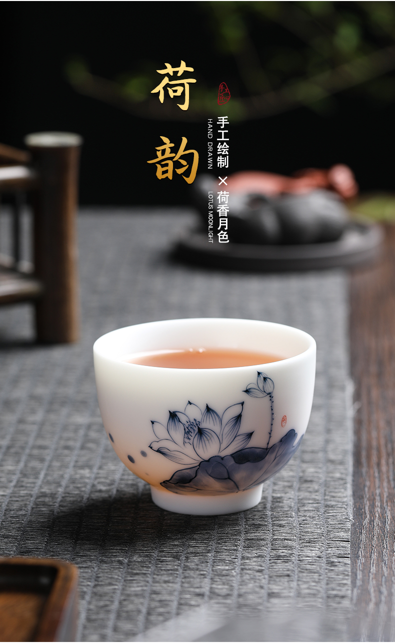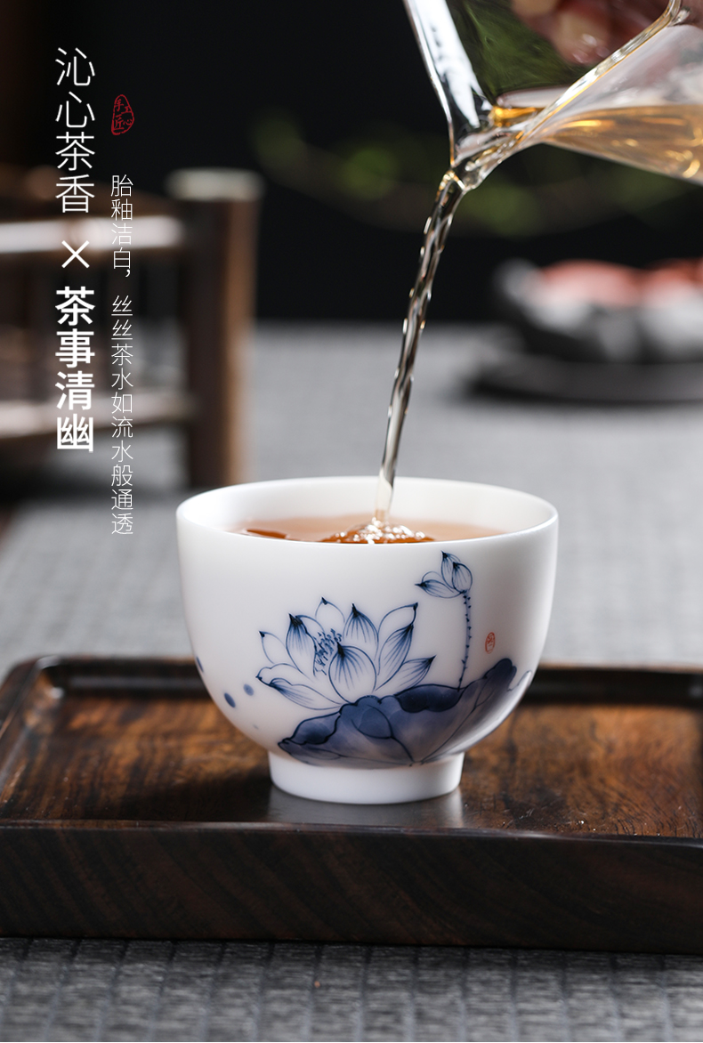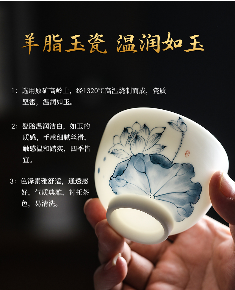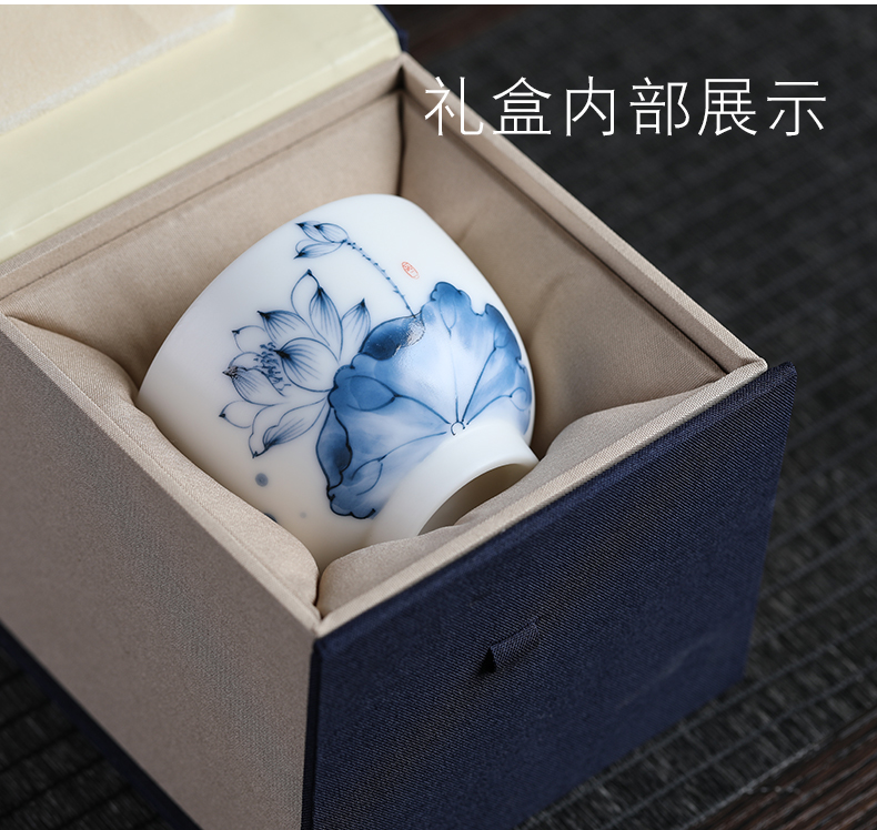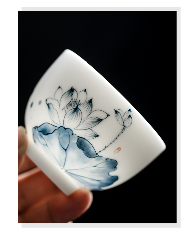 MULTIPOTENT元青 YQ-YQ-CB-202110-08茶杯手绘陶瓷蓝莲花花草钟杯礼盒装/个 白色
