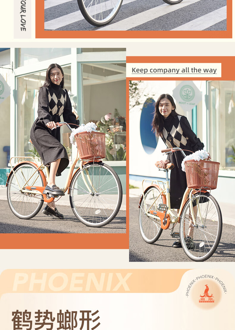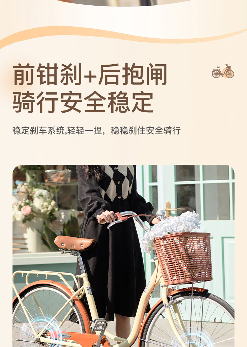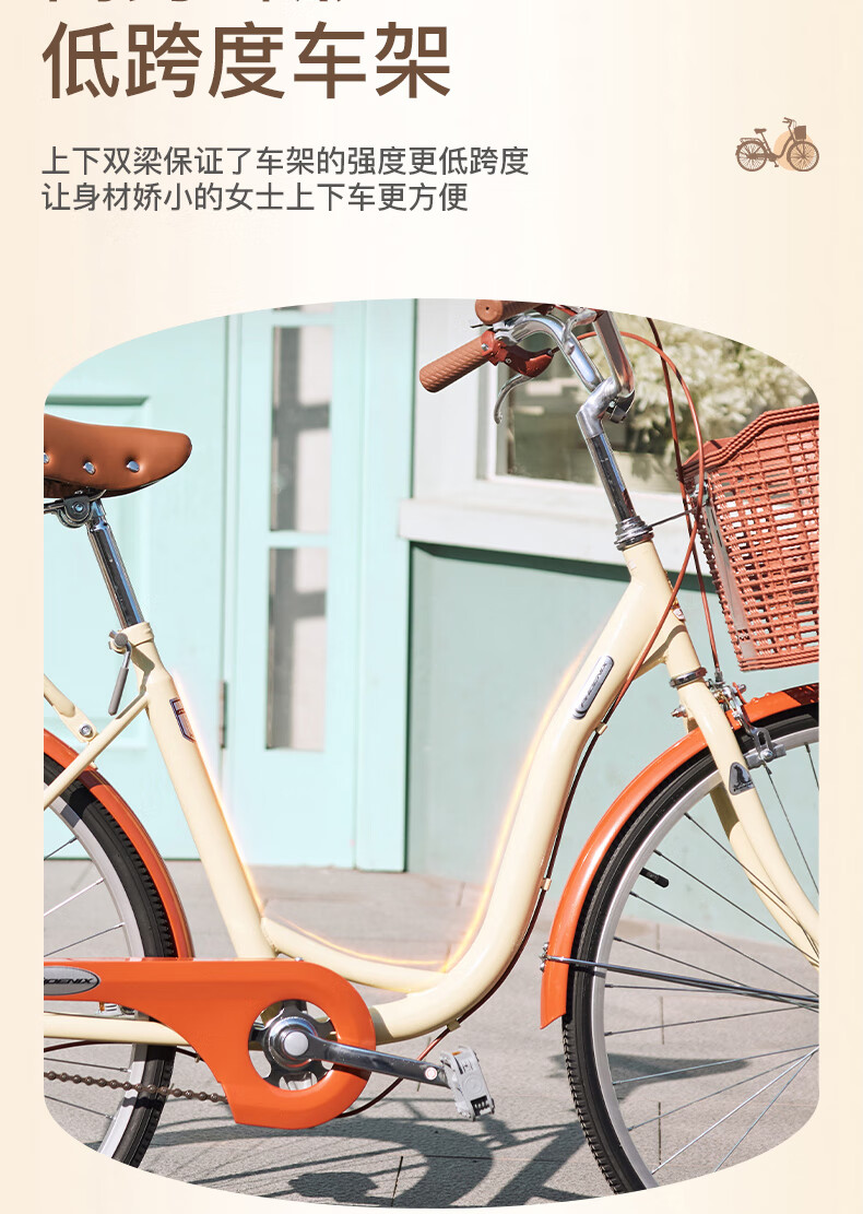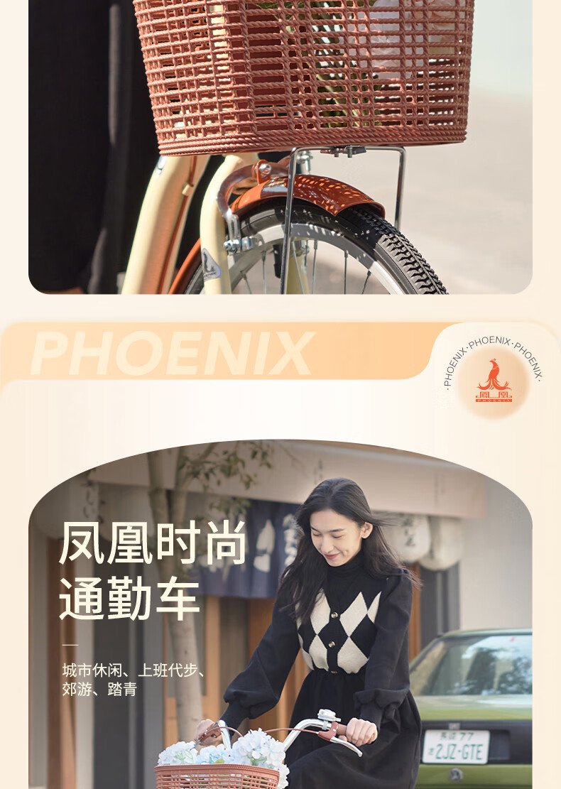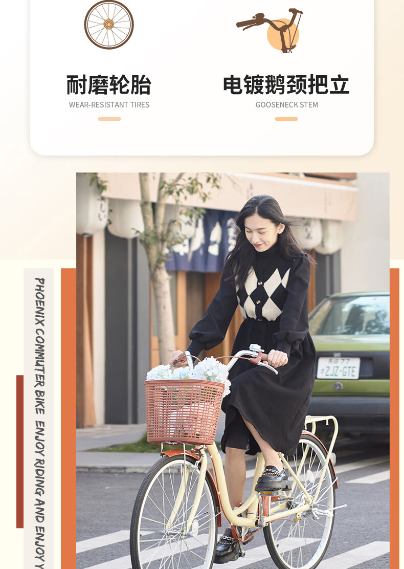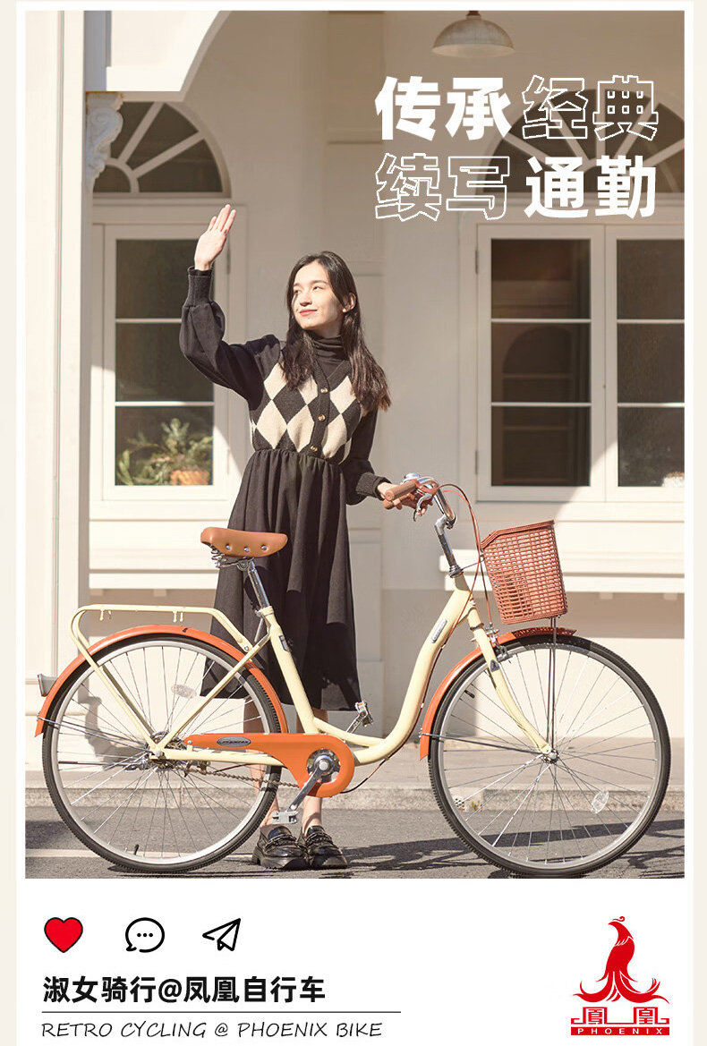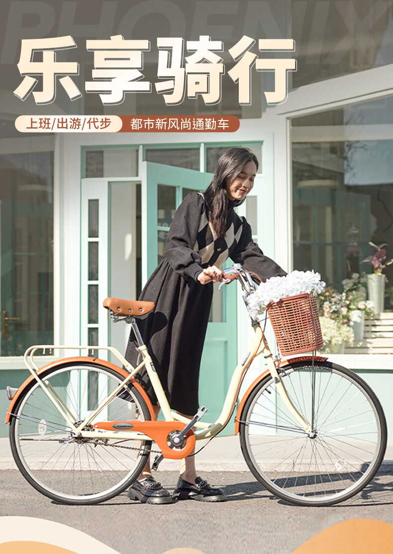 凤凰(Phoenix)26寸女士成人亲子学生复古通勤轻便代步城市单车丹顶鹤(单位:辆) 米白色