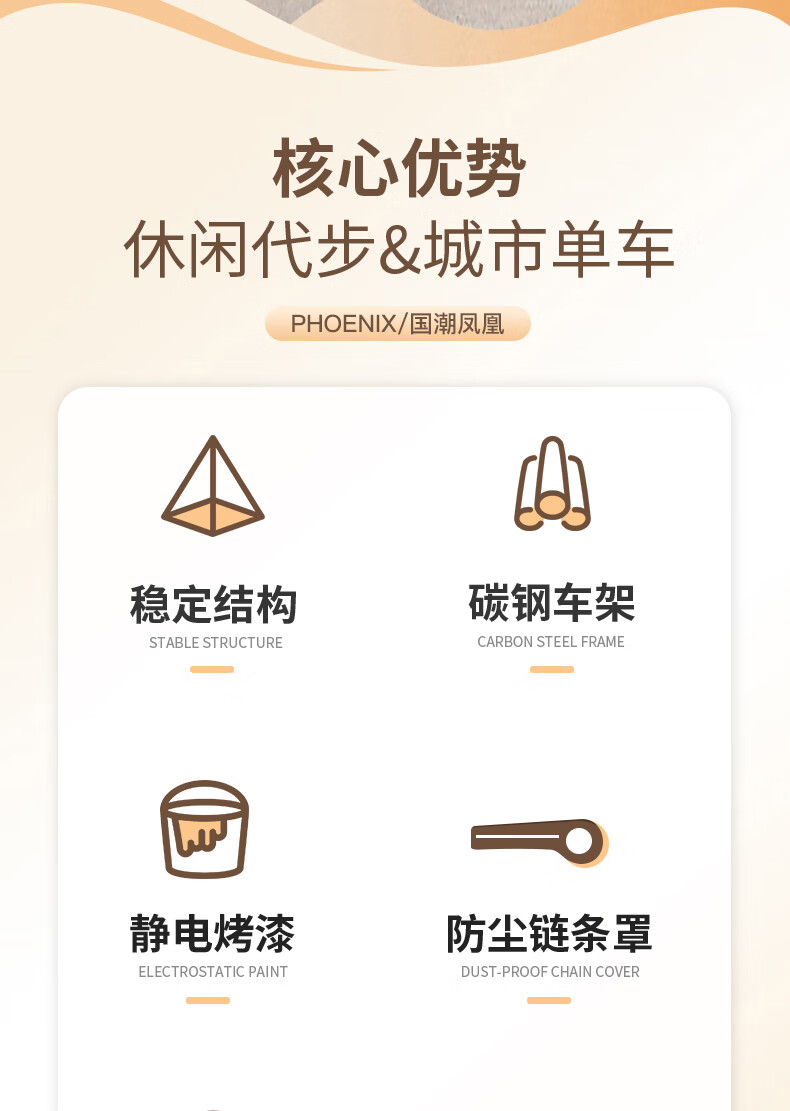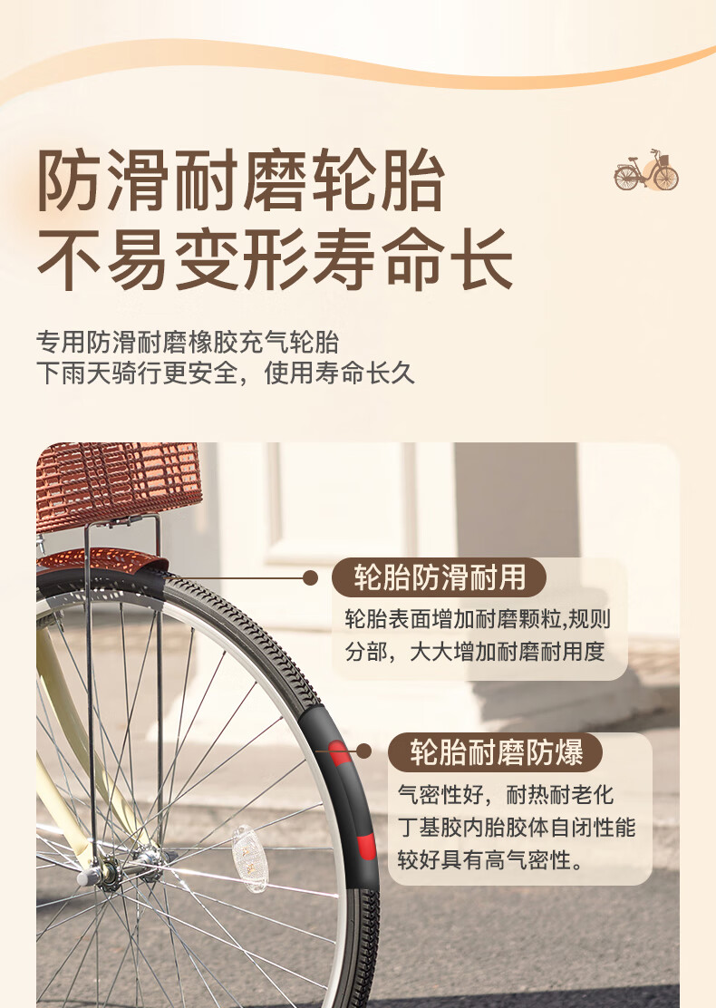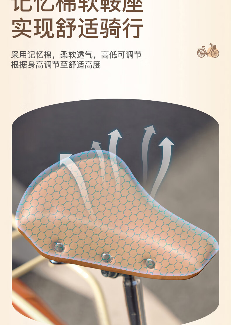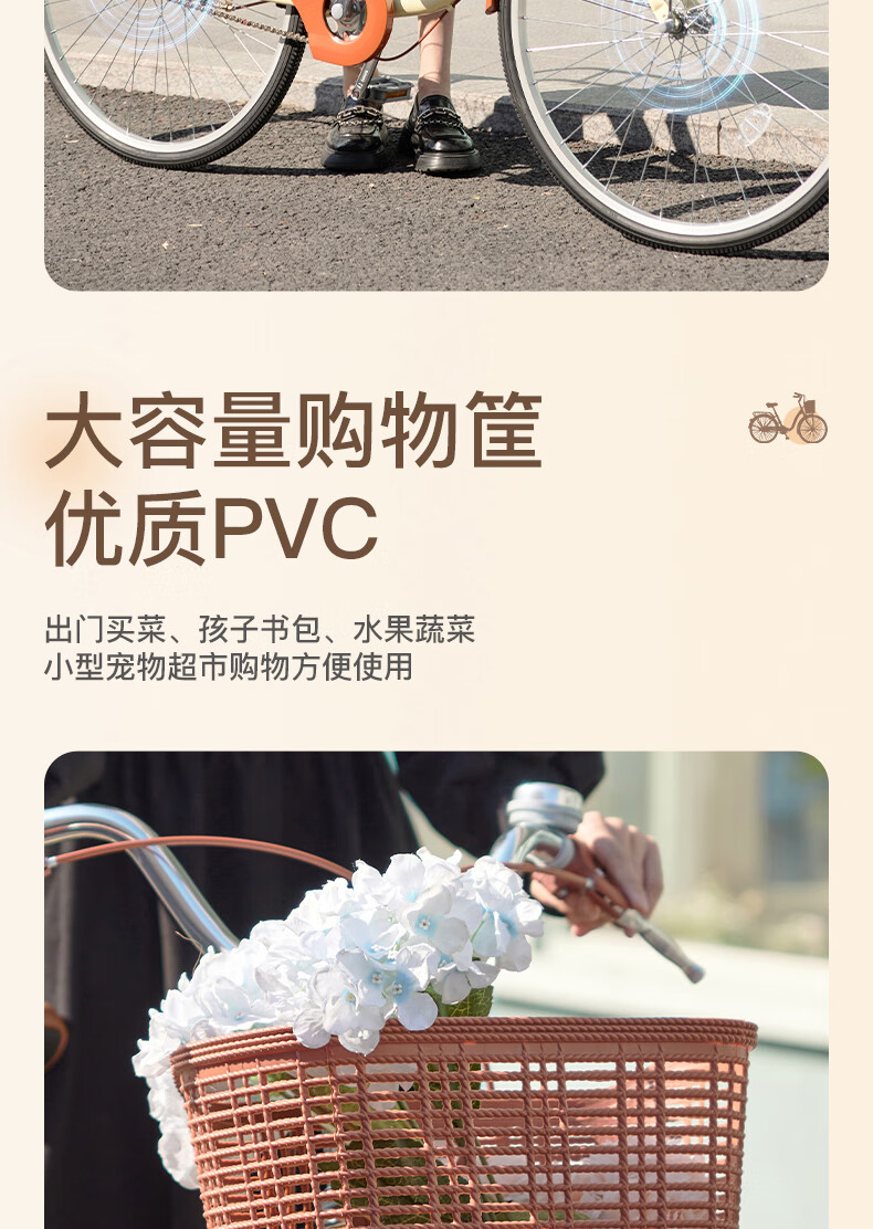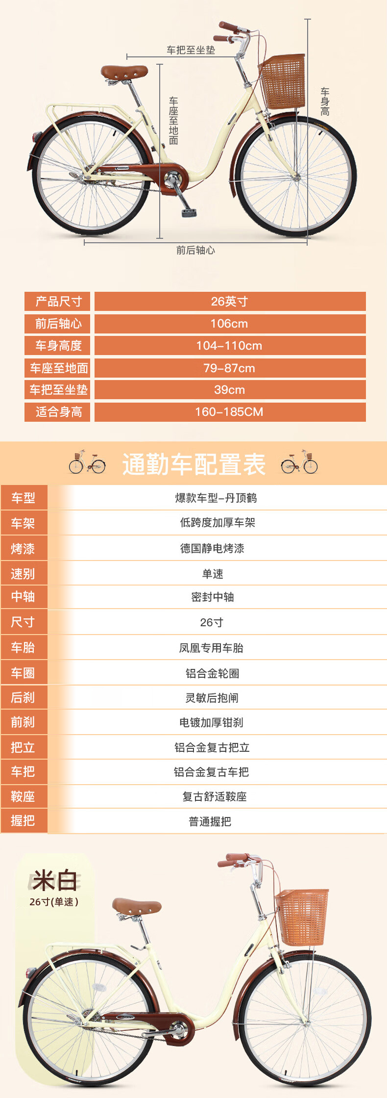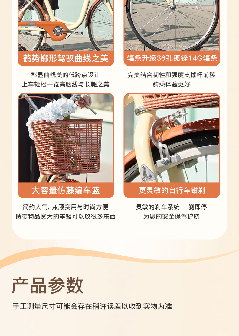 凤凰(Phoenix)26寸女士成人亲子学生复古通勤轻便代步城市单车丹顶鹤(单位:辆) 米白色