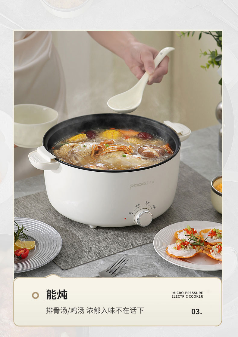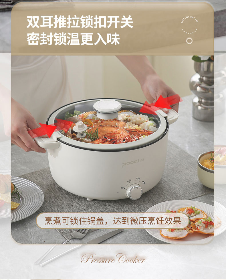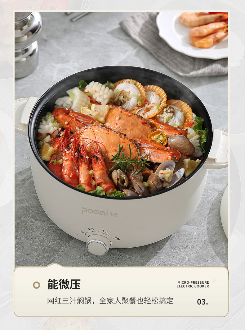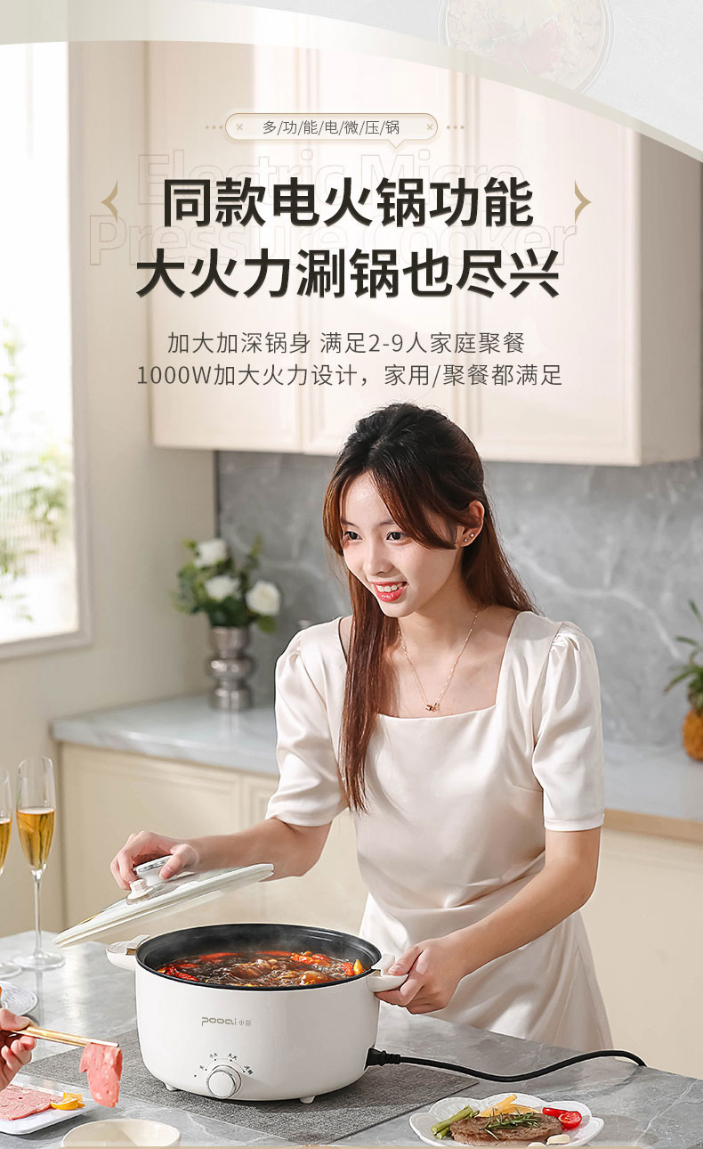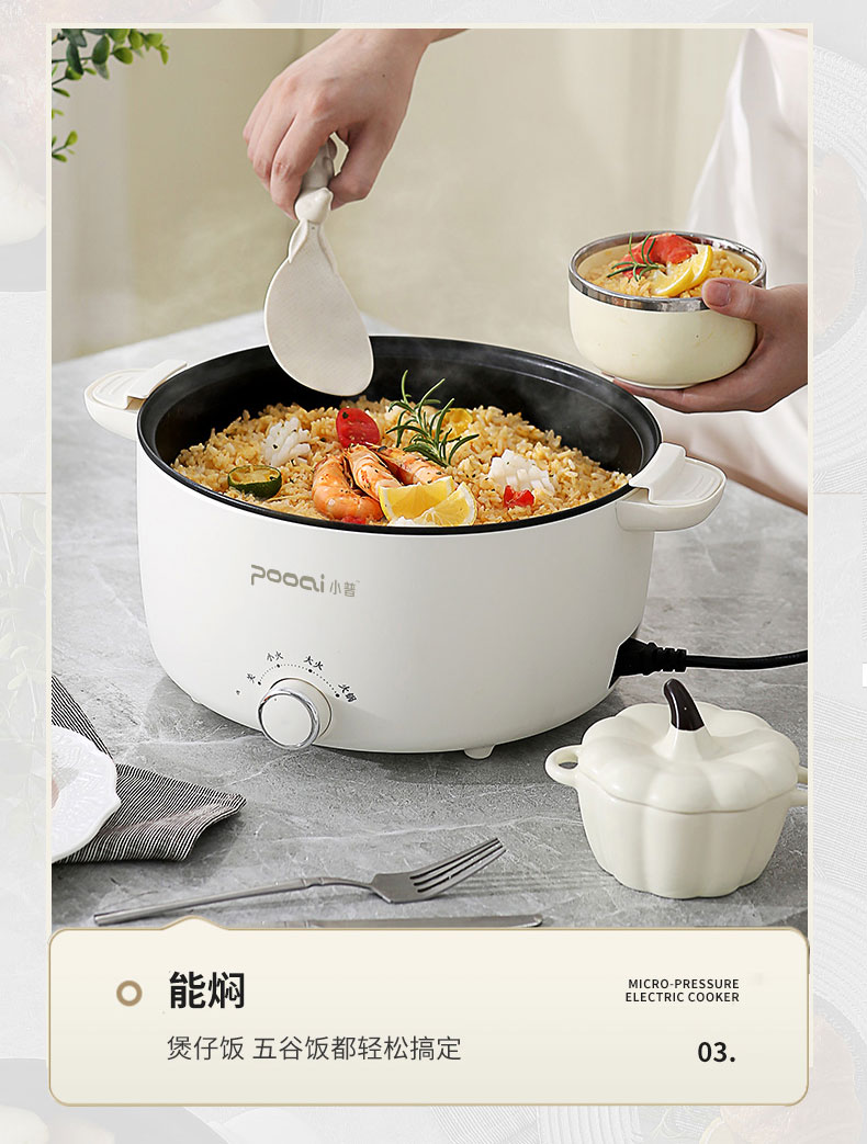 小普(POOAI)多功能电微压锅XY361,3.1L电火锅 带蒸笼*1(单位:台) 白色