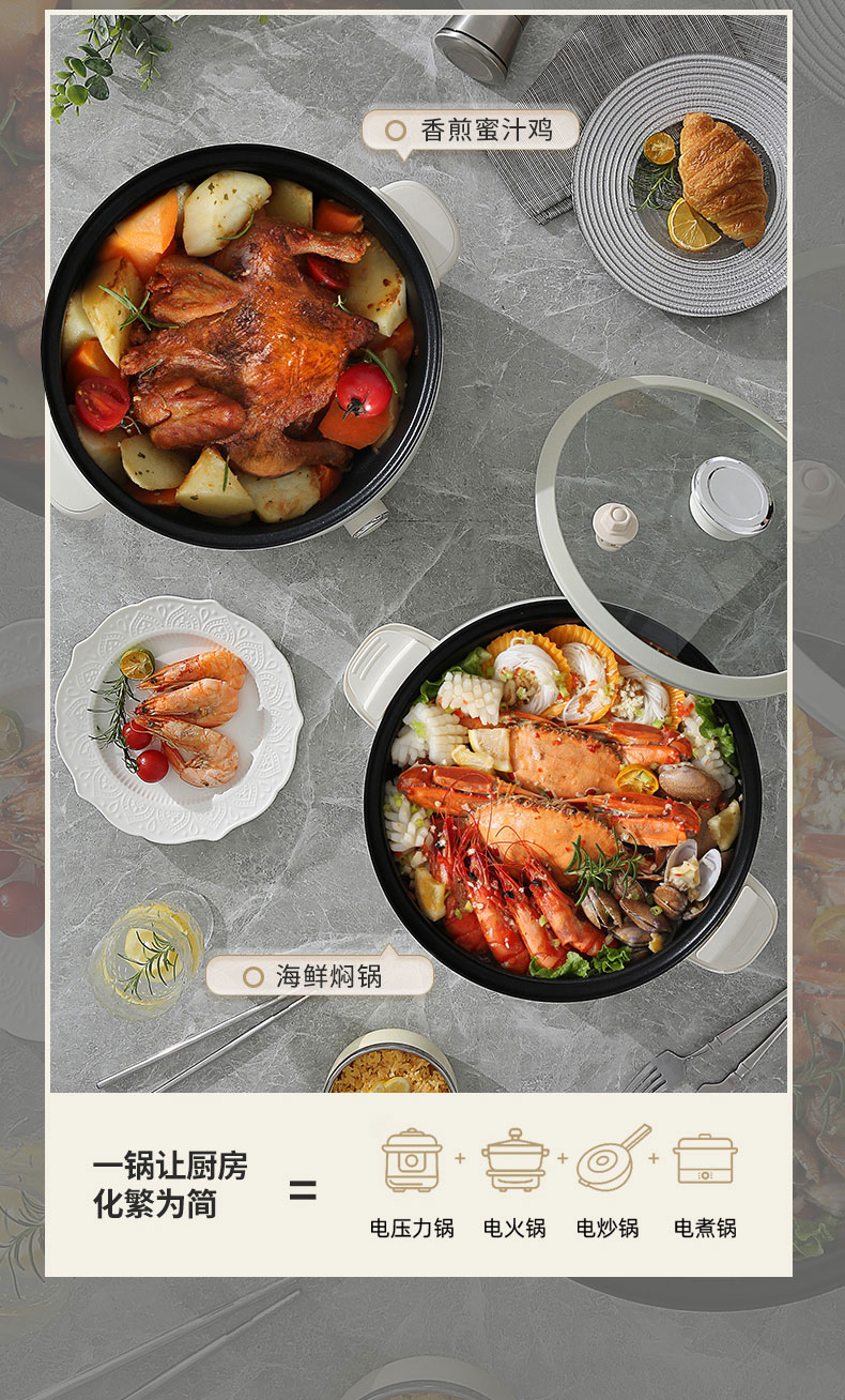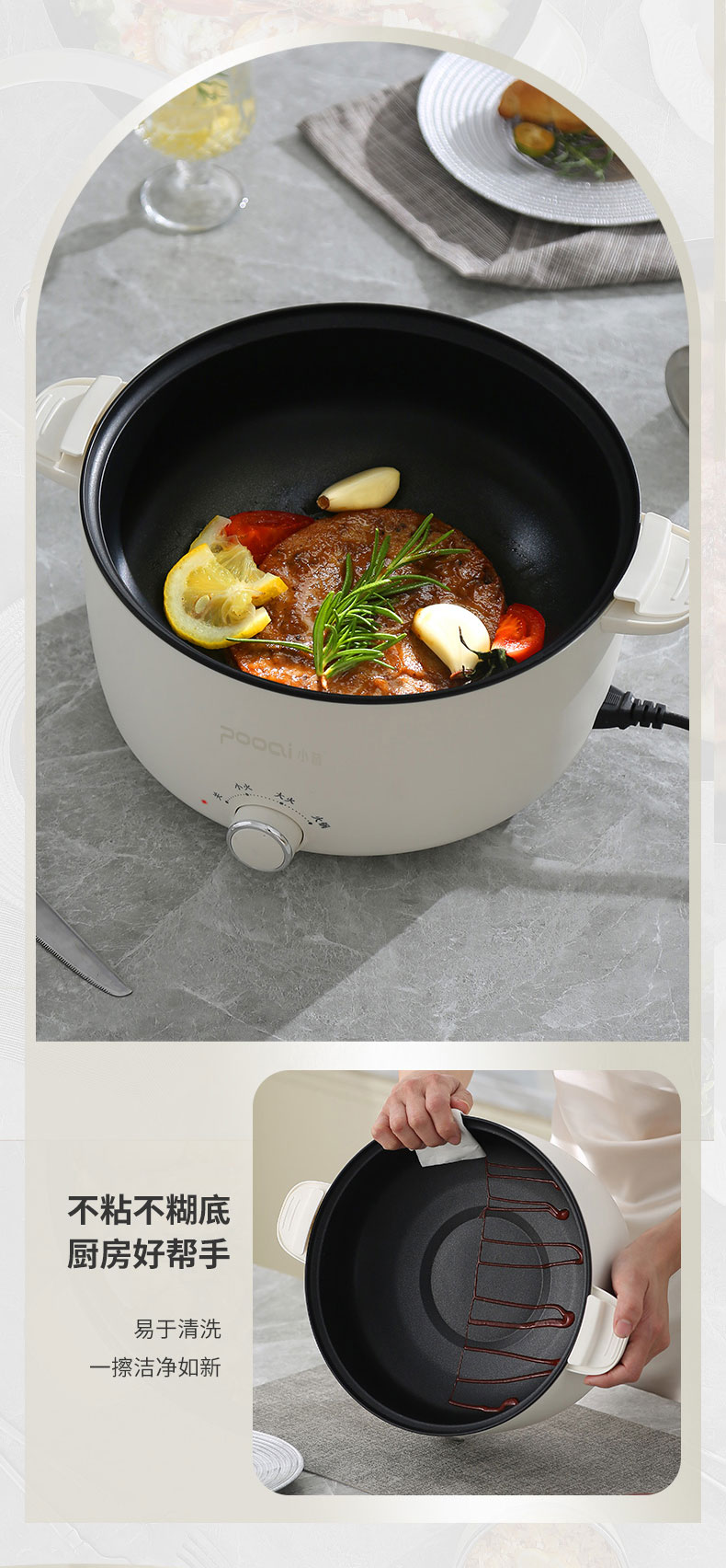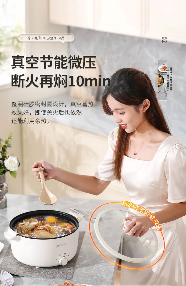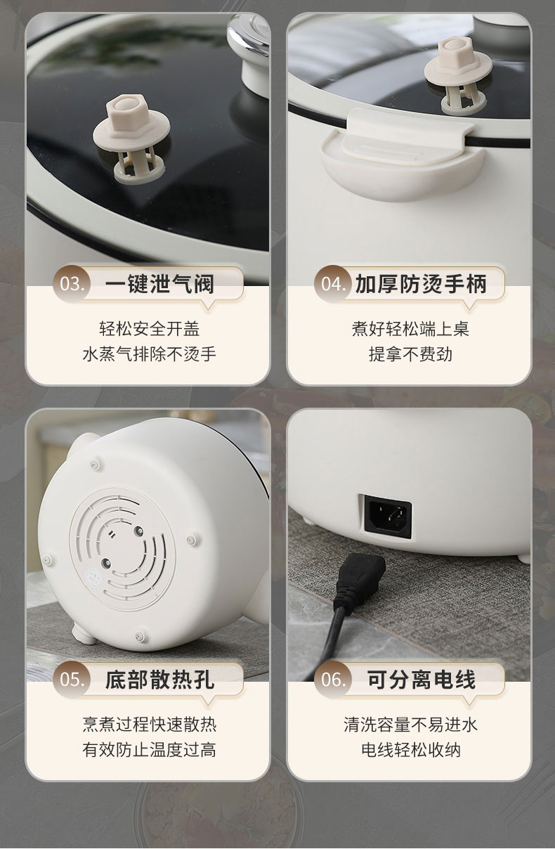 小普(POOAI)多功能电微压锅XY361,3.1L电火锅 带蒸笼*1(单位:台) 白色